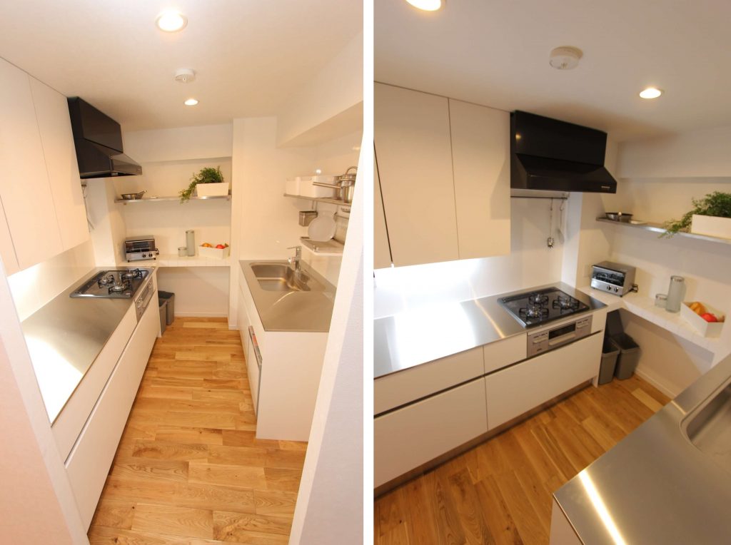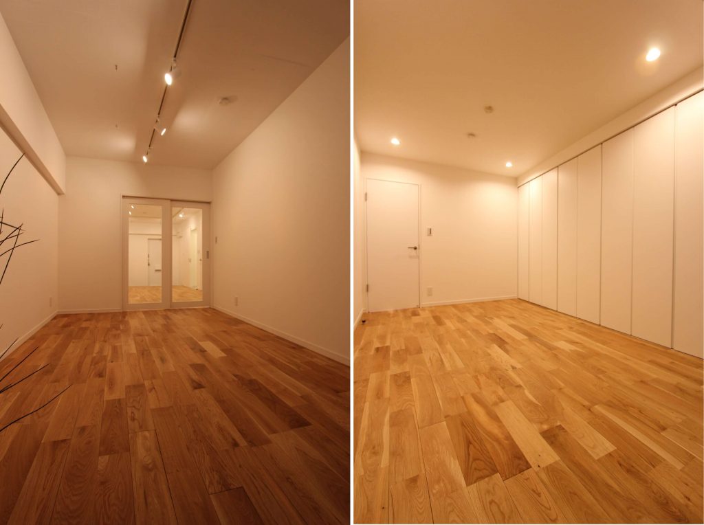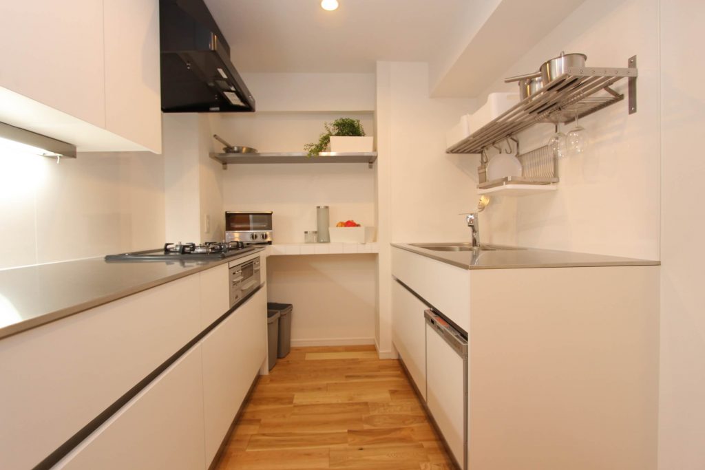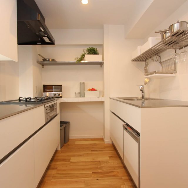 最近は新築・リノベーション物件ともにオープン型キッチンが主流となっていますが、クローズ型を求めている方は多いはず。そんなご要望に応えるべく、今回の物件ではあえてクローズ型を採用しました。また、シューズクロークをあえて設けない、ゆとりあるエントランスの設計にしました。存在感のある家具をシューズボックスにしても良し、靴好きの方であればオープンラックに豪快に並べても良しと、想像力をフル活用できる仕様となっています。