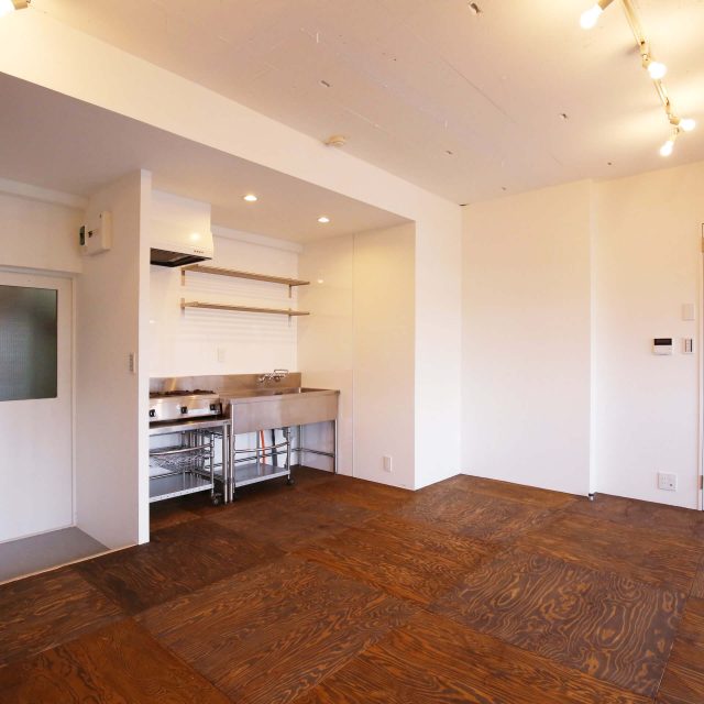 東急池上線「長原」駅からは駅前商店街を抜けて徒歩7分、夫婦坂交差点の1Fにファミリーマートがあるマンションです。この2Fフロアは某音響メーカーが複数室を使用しており、雑居ビルの廊下を抜けて室内へ。SOHO使いに適した物件です。