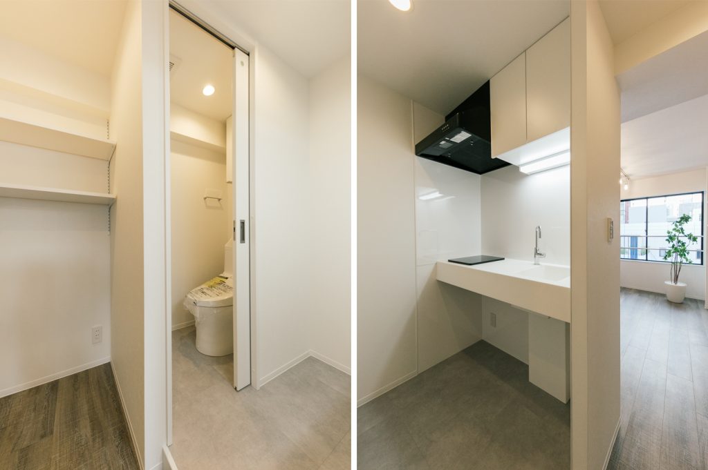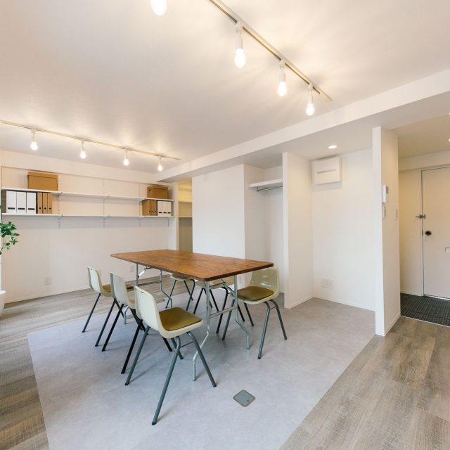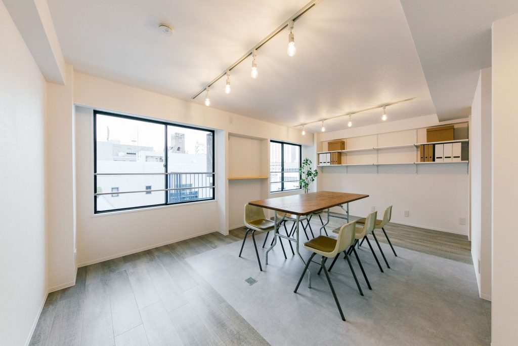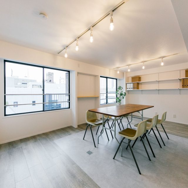 JR御茶ノ水口改札前、スクランブル交差点の角から5軒目の駅前立地です。教育、音楽、出版関連のスモールオフィスなんて、まさにピッタリ。総戸数232戸のビッグコミュニティ、1Fエントランスホールには打ち合わせテーブルが5つ、男女別共用トイレ、フロントの受付は昭和のシェアオフィスのようなレトロな懐かしい雰囲気の建物です。室内は、コピー置き場、天井までの可動棚、クローク等、働く人への配慮がされているリノベーションです。