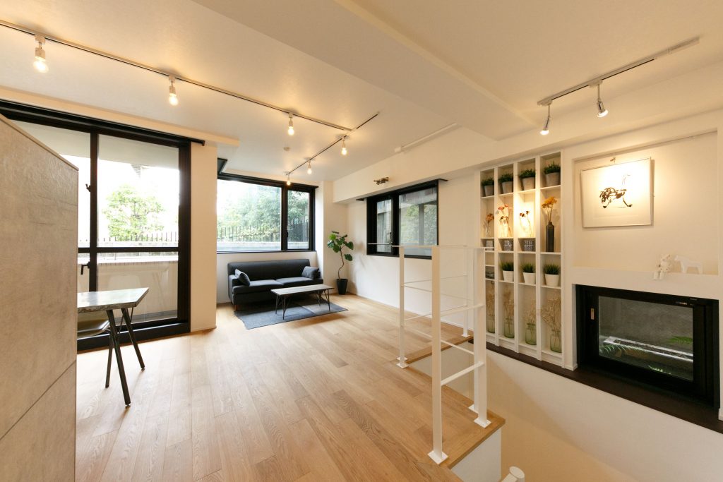 隣接する旧羽澤ガーデン敷地には超高級マンションが分譲されました。その開発時に移植された大正時代からの木々の緑が借景となりなんとも贅沢な立地です。 B1F-1F、開放的な階段が気持ちの良いメゾネットタイプに、地下玄関の真正面に専用駐車場があります。広いウッドデッキ、オールステンレスのシステムキッチン、人の集まるセカンドリビングといった特徴のあるお部屋です。