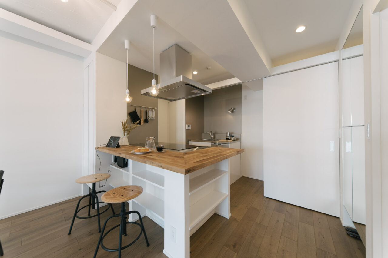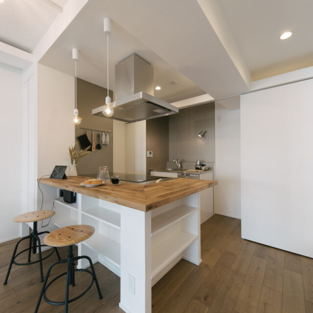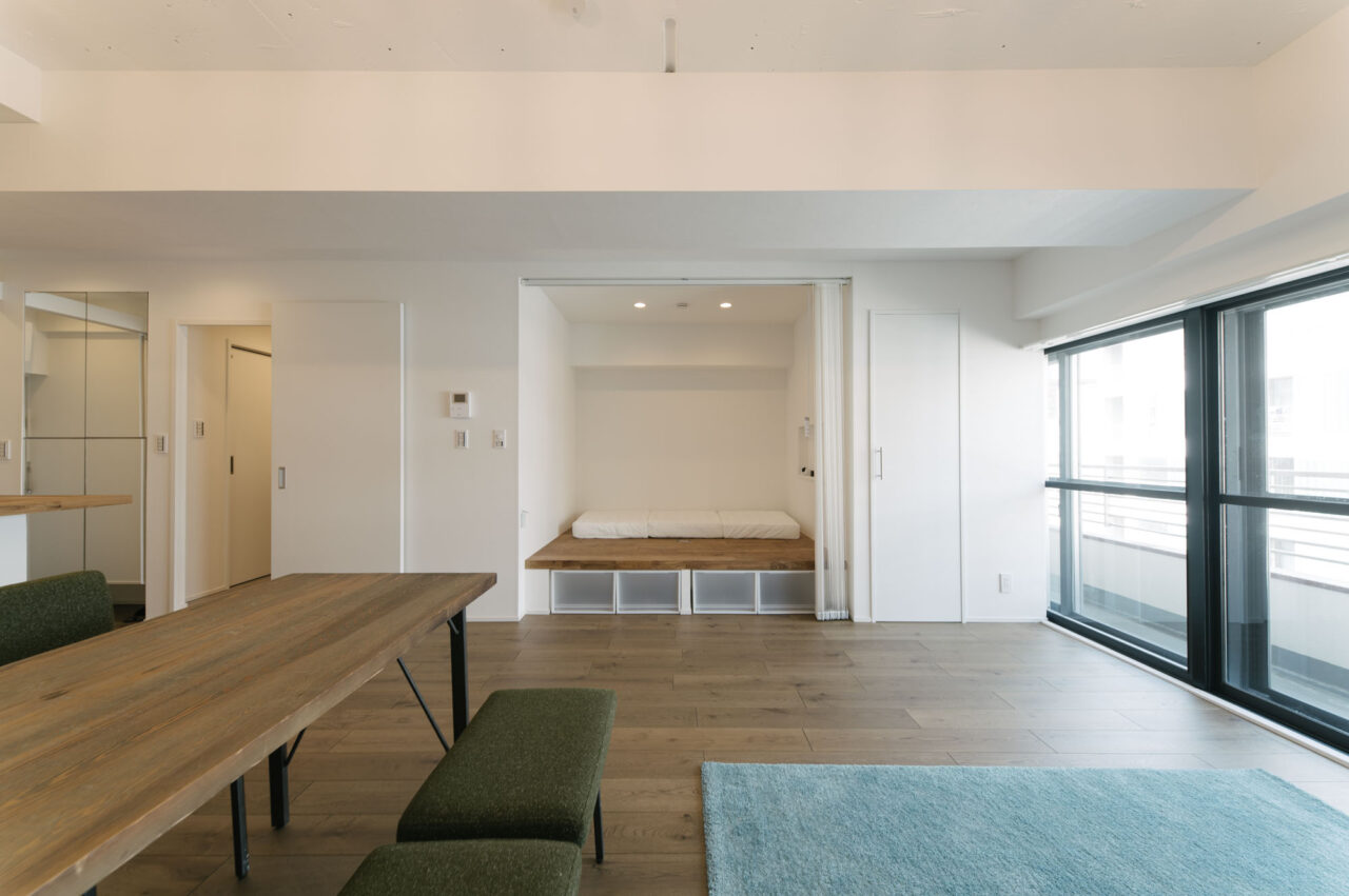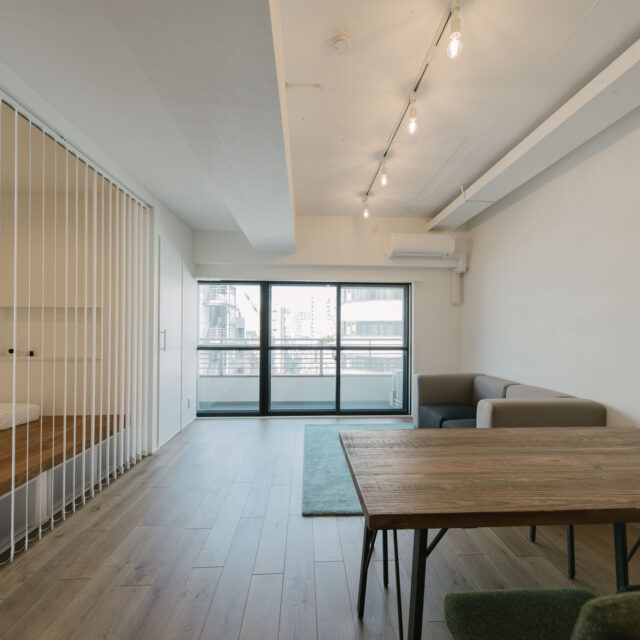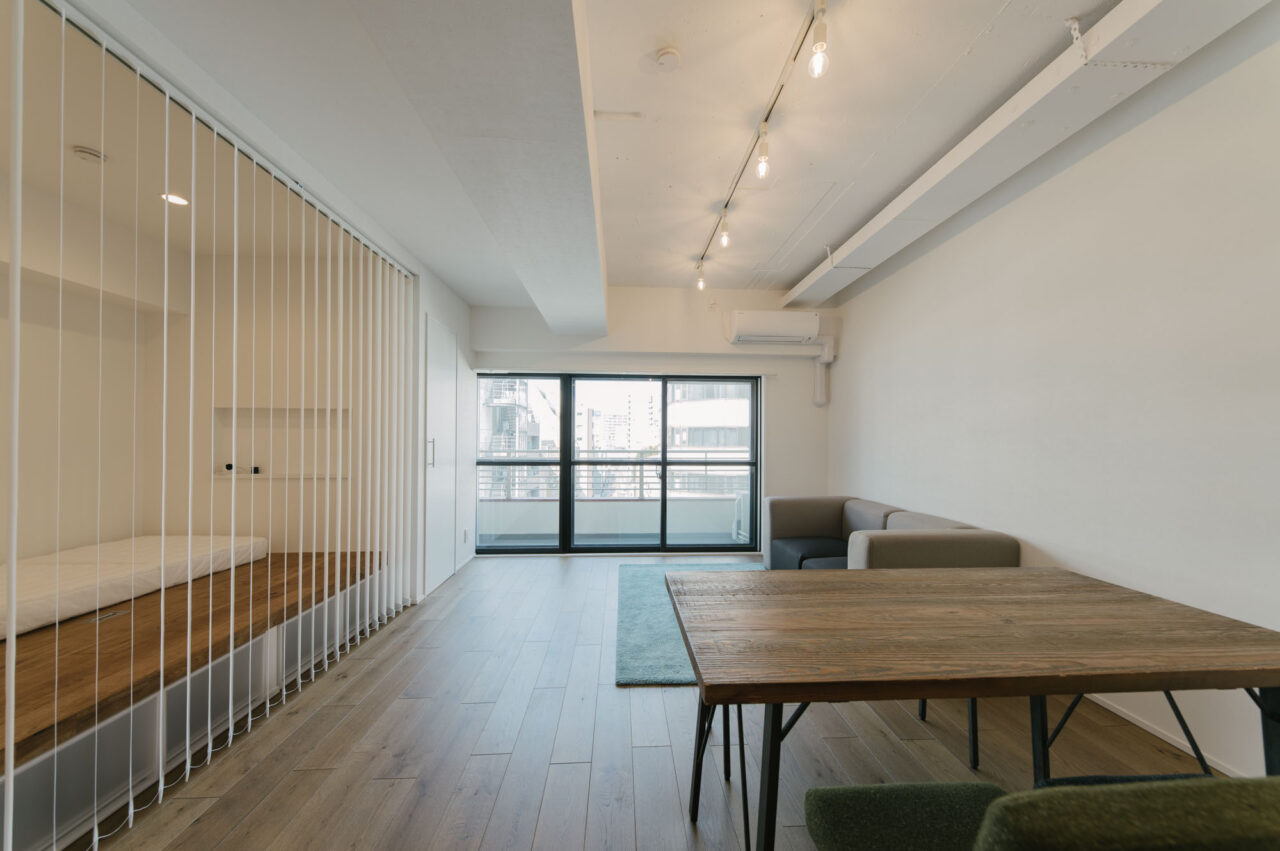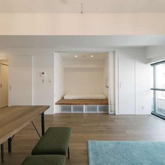 多くのビジネスマンや学生たちが行き交う「三田・田町駅周辺エリア」と、レストランやブティックなどのおしゃれスポットが集まる「麻布十番・白金エリア」、どちらへも徒歩圏というなんとも贅沢な立地です。室内はカウンターダイニングを楽しめる大型オープンキッチンとリビングに部屋の大半の面積を割り当て、寝室は小上がりベッドを造作、その他の水回りもミニマイズ。仕事もプライベートもアクティブに都心を謳歌し、ペットと暮らすカップル、おひとりさまに向けて、ウダツが考えた快適空間ができあがりました。