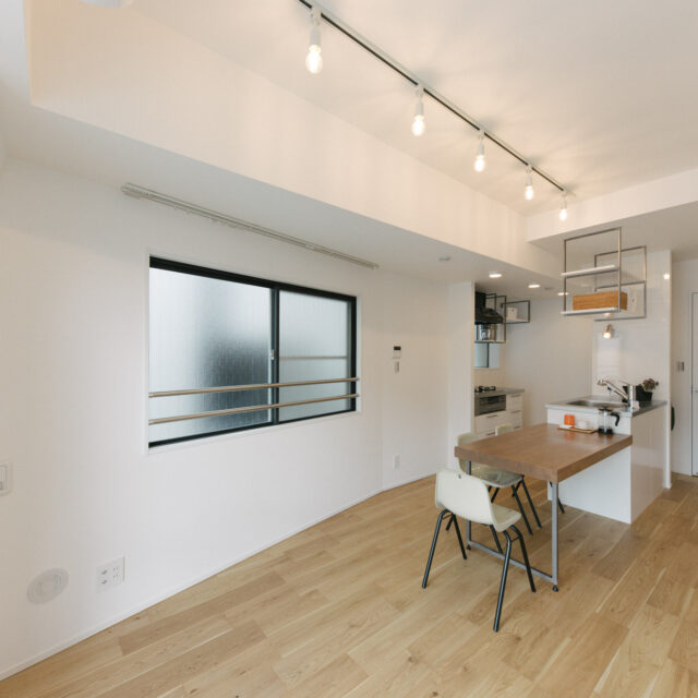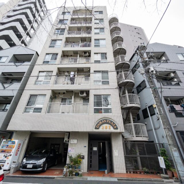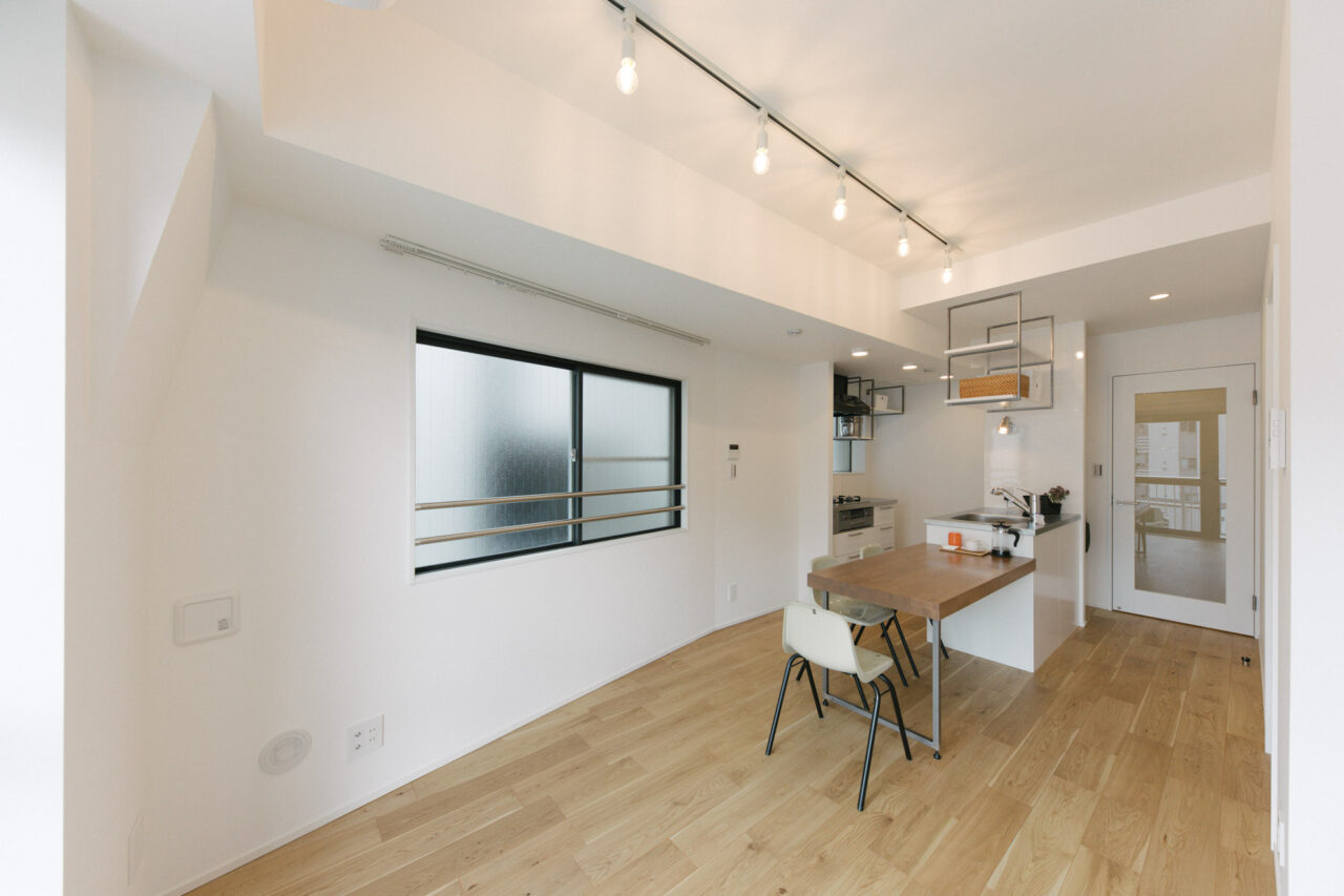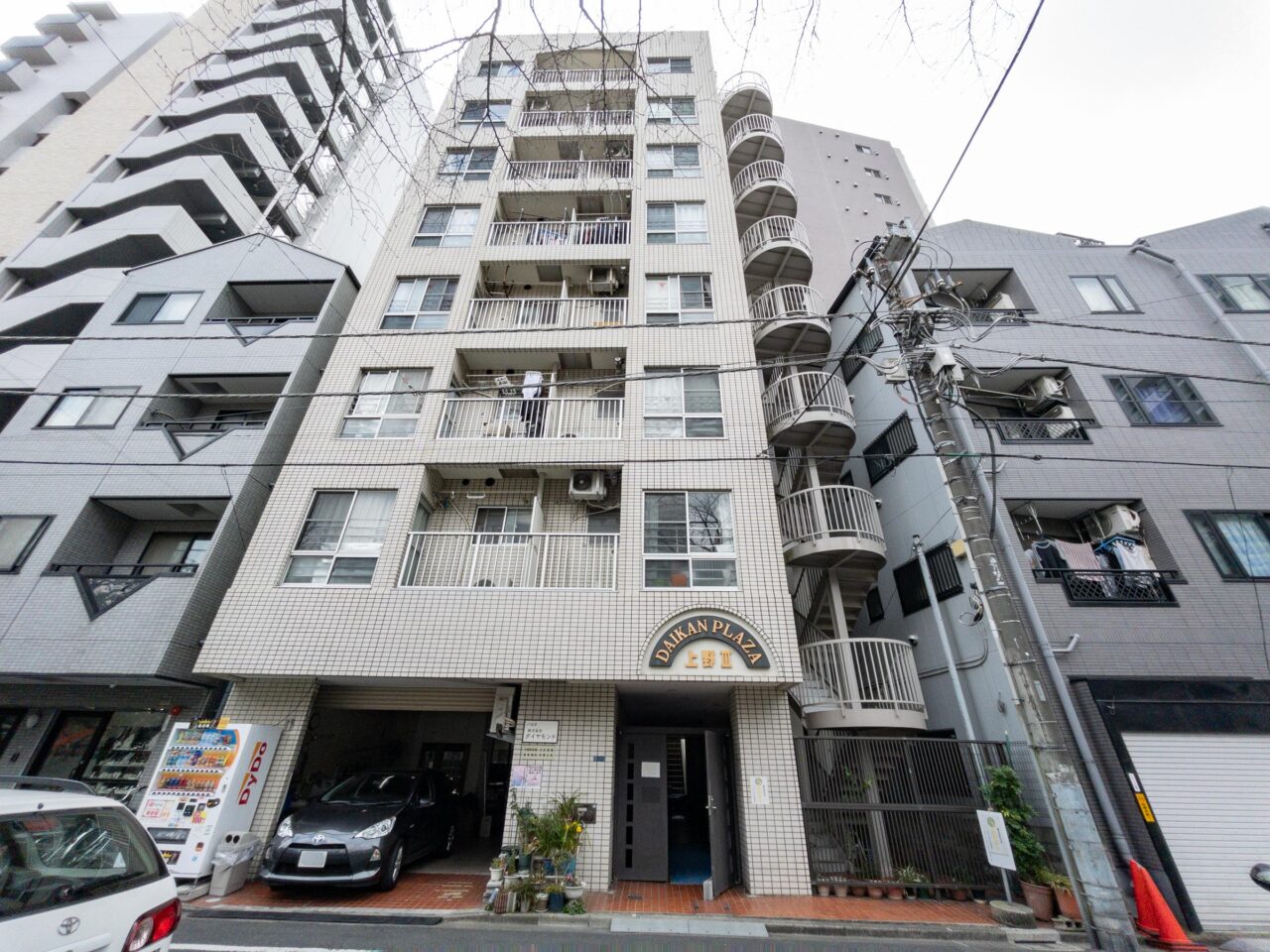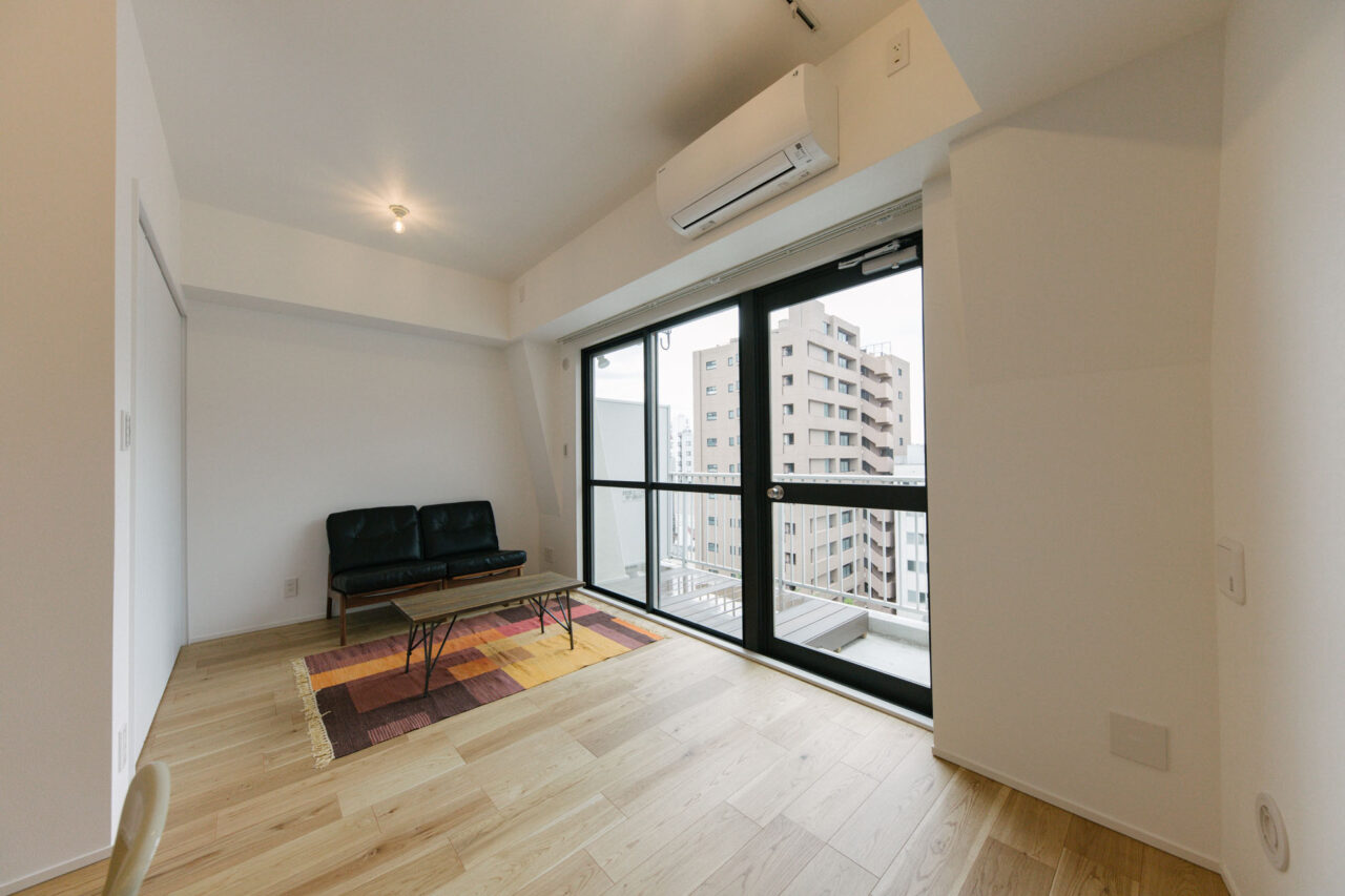 上野と浅草のちょうど中間、台東区松が谷といえば、なんといってもみんな大好きかっぱ橋道具街。プロ向けキッチングッズや調理器具、和食器など連なるお店を見て回るだけで楽しくなります。建物は入谷南公園に隣接する8階建て、新耐震基準適合物件です。7階部分南向きの室内は、39㎡とコンパクトながら天井高は約2.6m、面積以上に広々とした印象の1LDKです。備付ダイニングテーブルがある食洗器付オープンキッチン、奥行のあるバルコニーに設置したウッドデッキが特徴のお部屋です。
