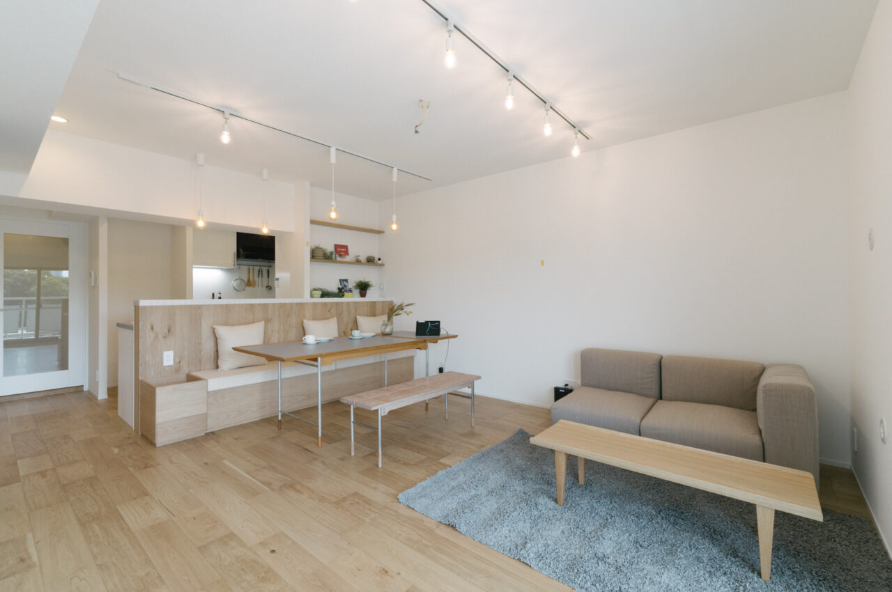 「東横最寄り、家族4人でゆったり、でも価格もデザインも妥協したくない」という贅沢な条件を叶える鍵は、1970年築・旧法賃借権を選択にありました。多摩川駅から徒歩7分の丘の上、南西向きの窓から「スカーン」と抜ける爽快な眺めは日々の忙しさを忘れさせてくれます。