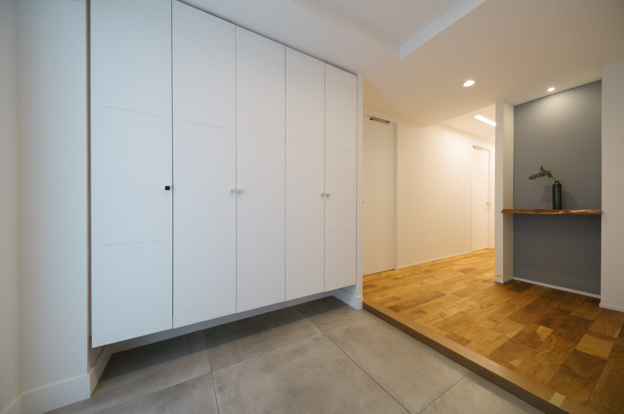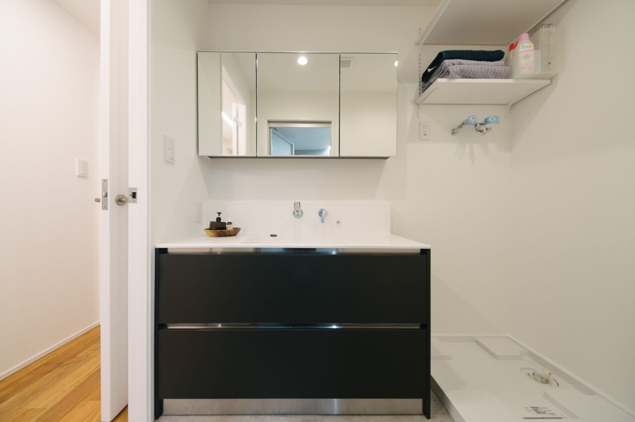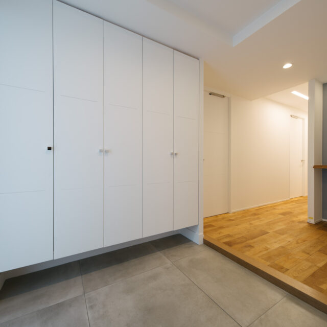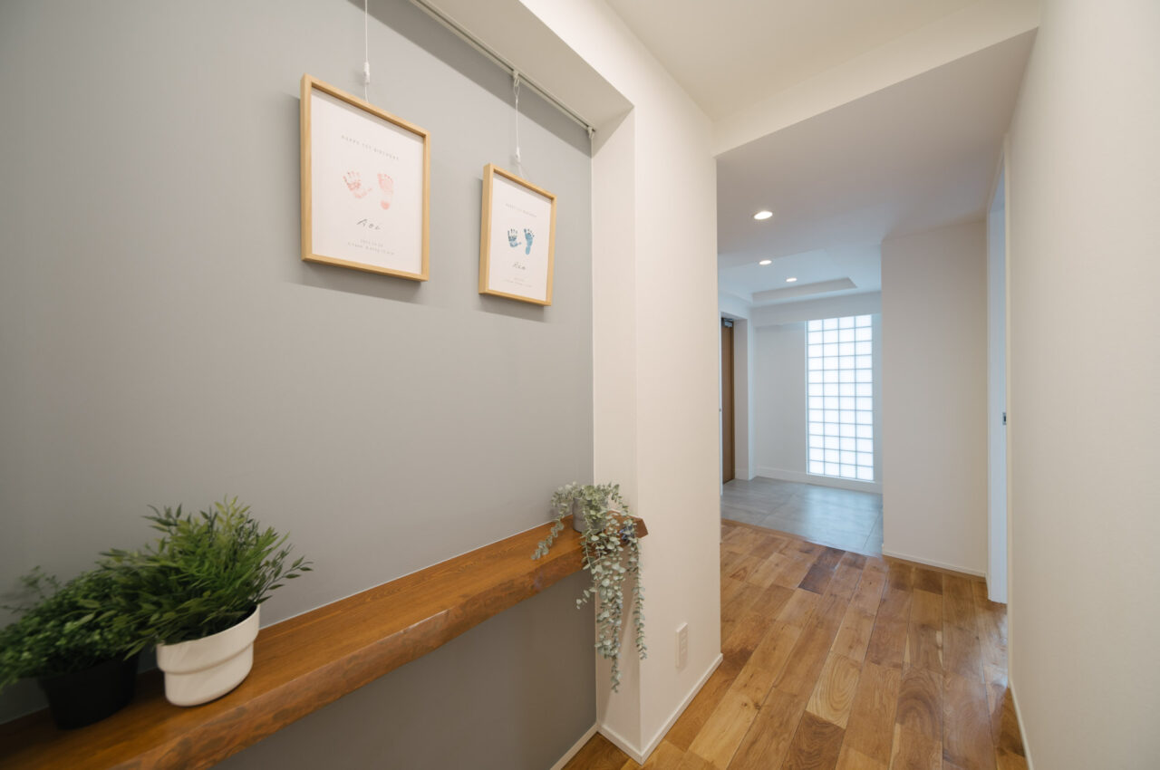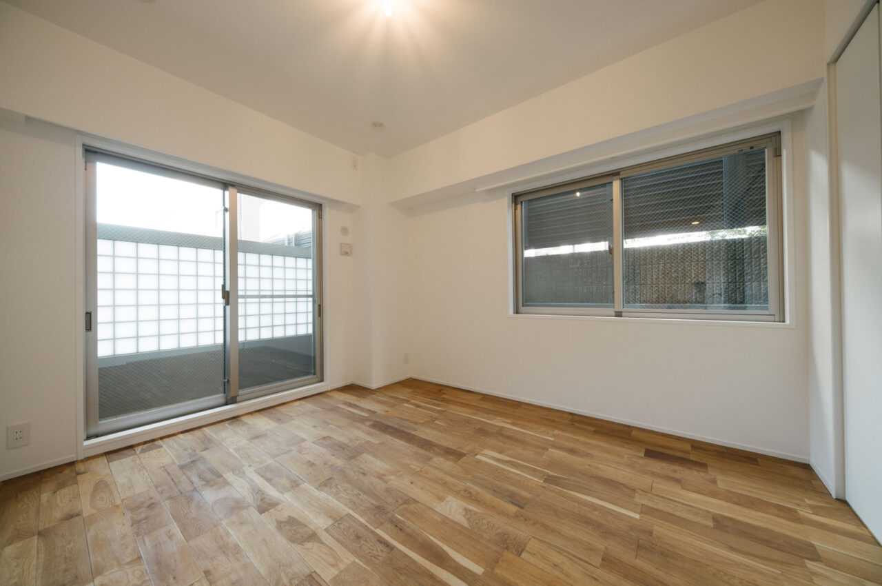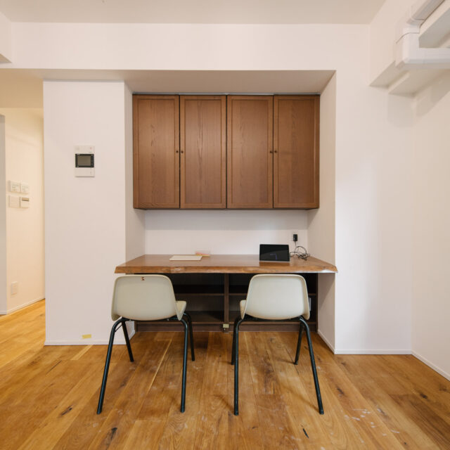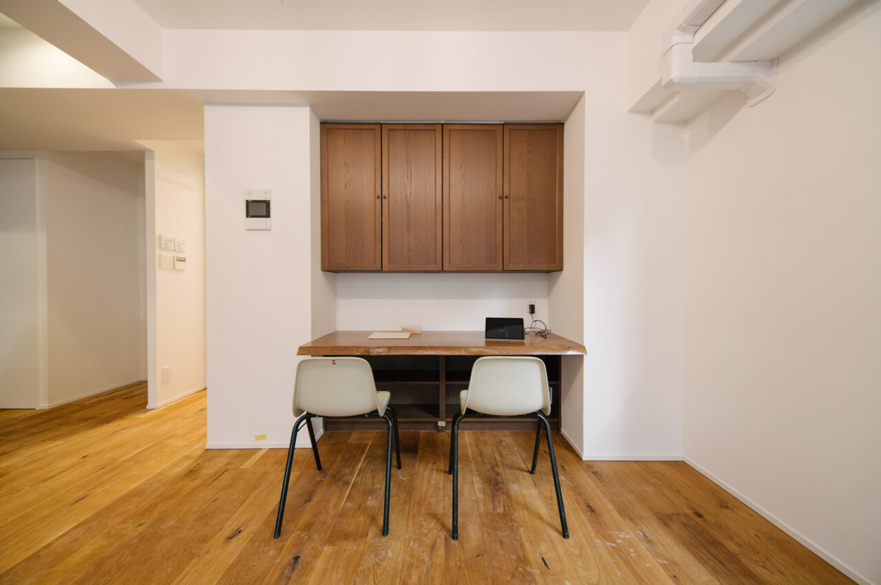 住所は目黒本町でも通りを挟んだ碑文谷~サレジオ教会界隈の緑の多い閑静な住宅地、専用庭付きの1階88㎡、下階を気にせず子供たちも元気に走り回れるお部屋です。タイル敷きのインナーテラスからウッドデッキ付専用庭はペットの居場所や日向ぼっこするのにぴったり。オープンキッチンと壁一面のビルトインのカップボード+サイドボードは「食」にまつわるすべてのモノをすっきり収納できます。