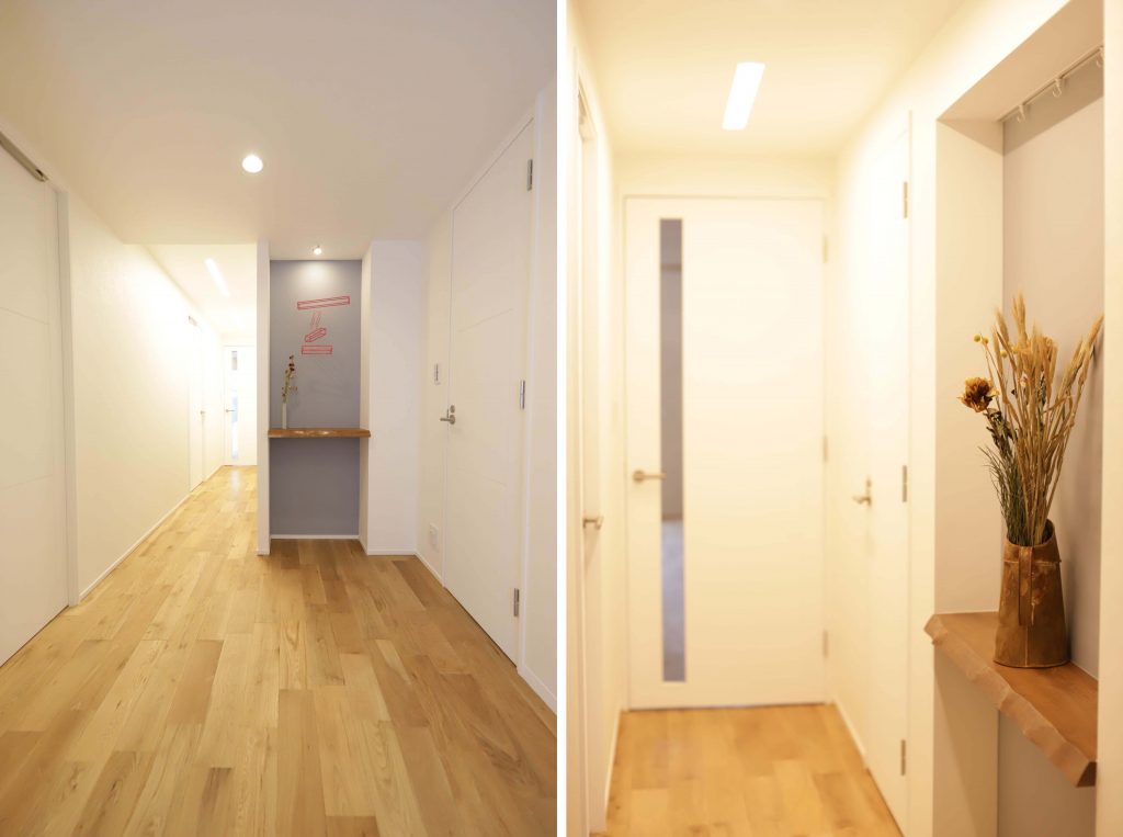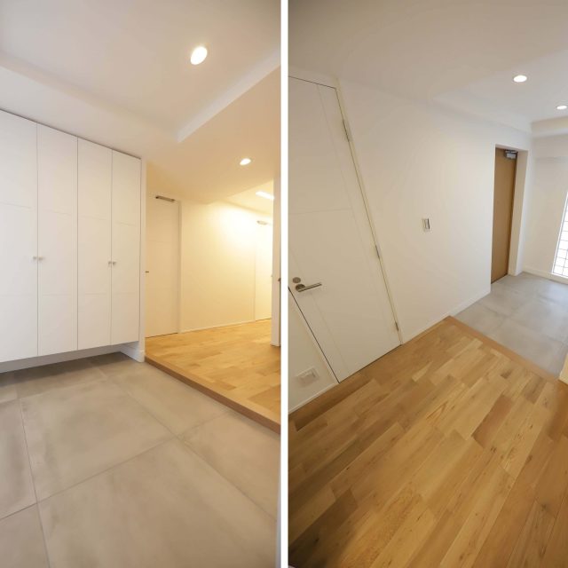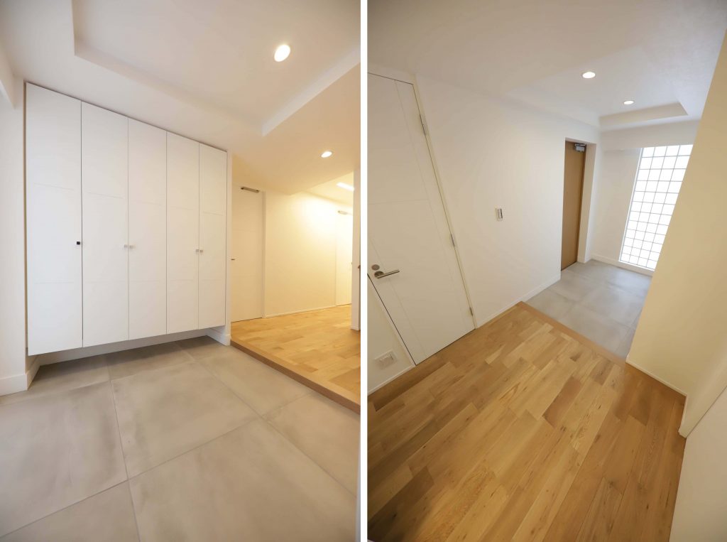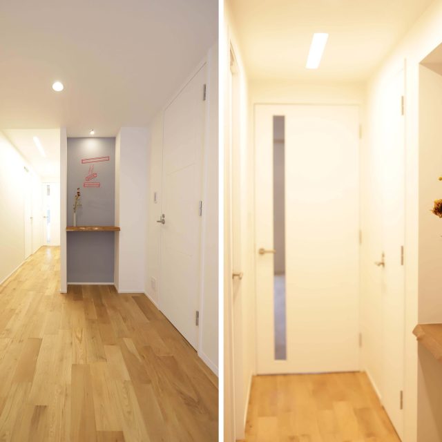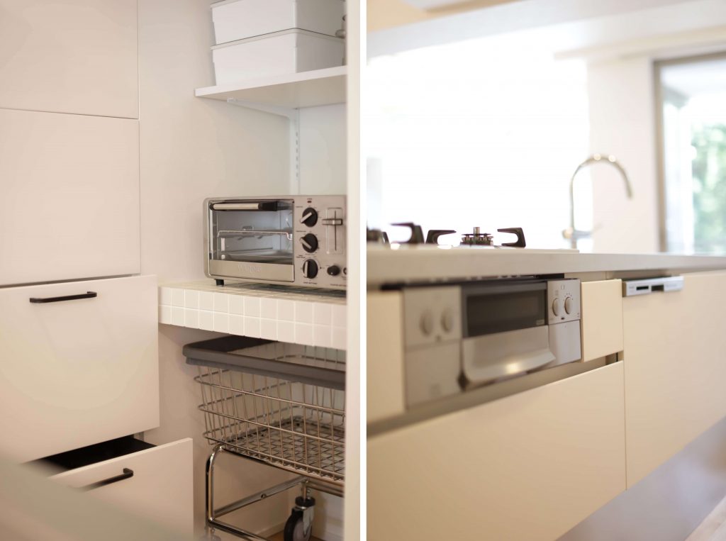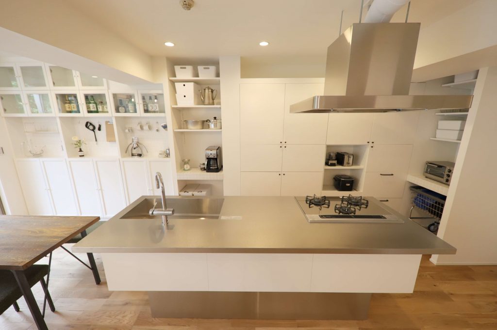 住所は目黒本町でも通りを挟んだ碑文谷~サレジオ教会界隈の緑の多い閑静な住宅地、専用庭付きの1階88㎡、下階を気にせず子供たちも元気に走り回れるお部屋です。タイル敷きのインナーテラスからウッドデッキ付専用庭はペットの居場所や日向ぼっこするのにぴったり。オープンキッチンと壁一面のビルトインのカップボード+サイドボードは「食」にまつわるすべてのモノをすっきり収納できます。