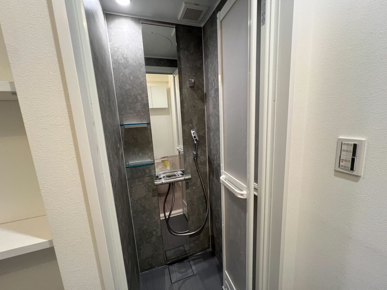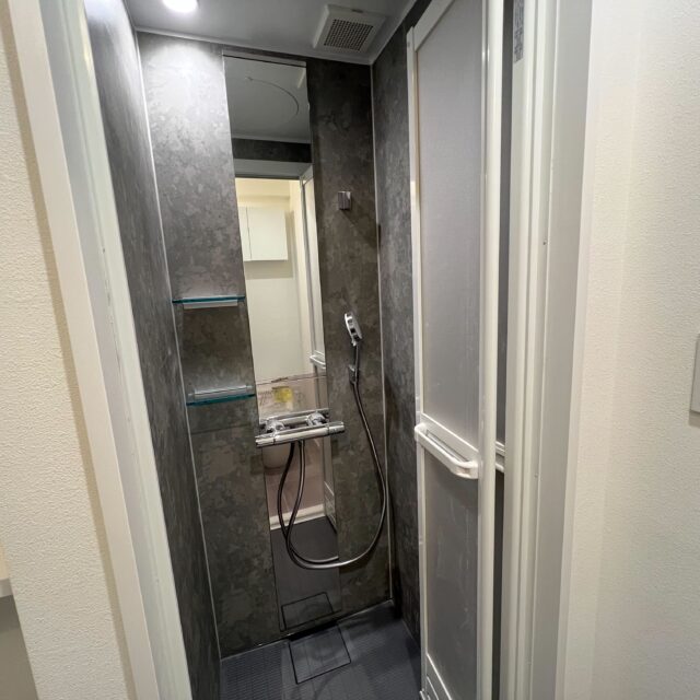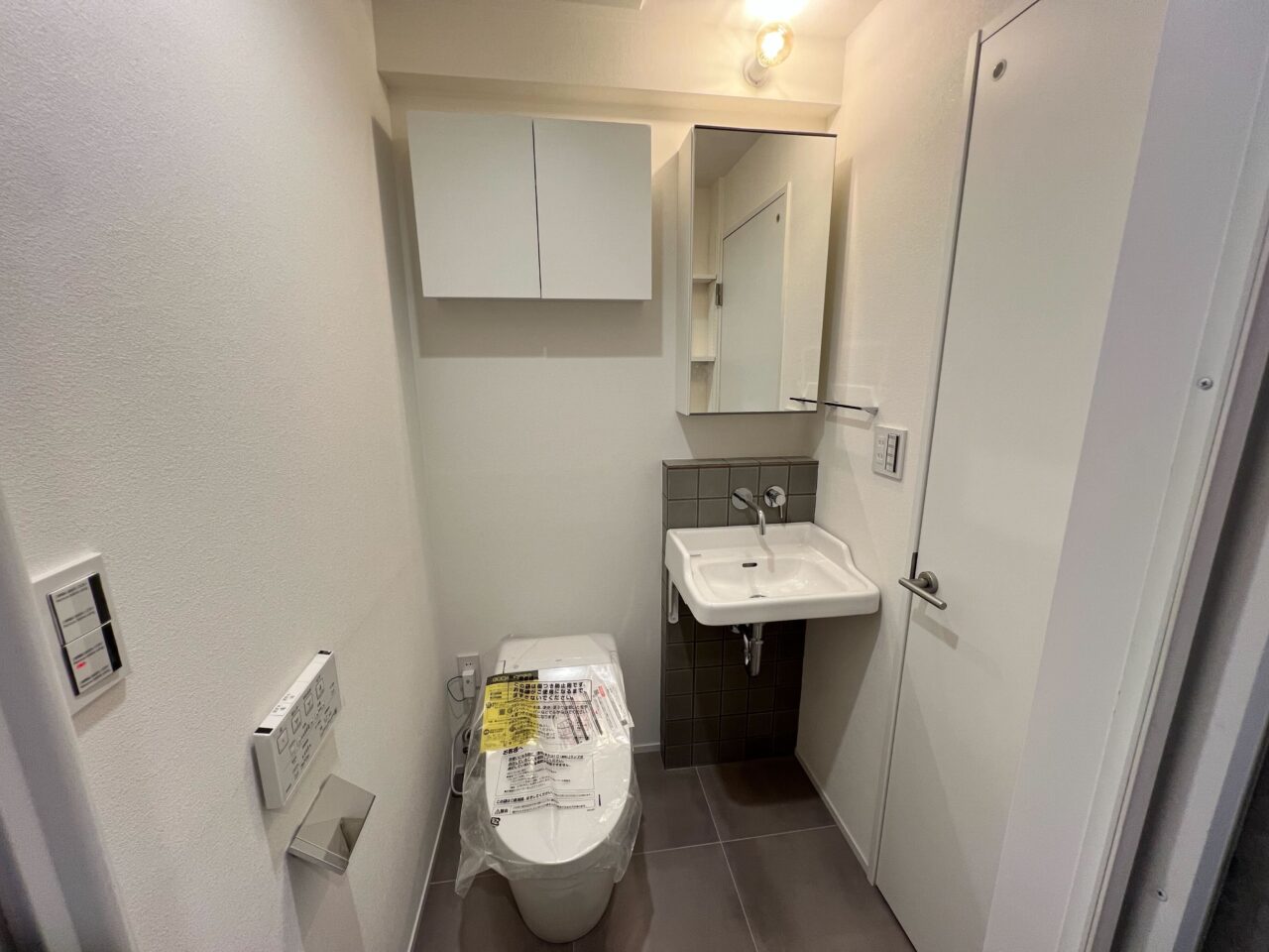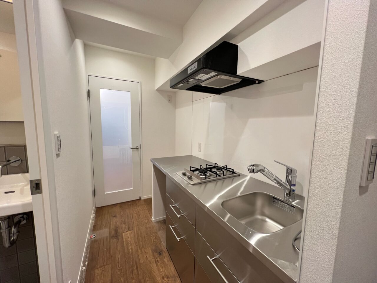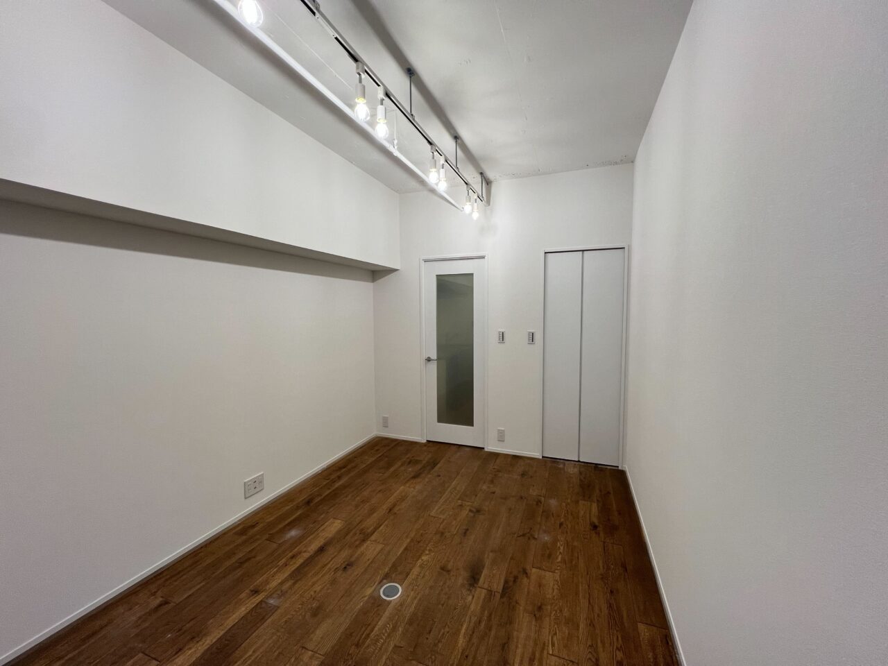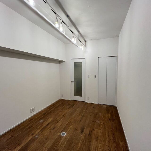 五反田駅から徒歩5分、大人気店のミート矢澤のならび、春には連なる桜が美しい目黒川沿いの立地です。建物は土地権利が地上権、清水建設により施工された赤茶のタイル貼り、過半がスモールオフィスのマンションです。室内は目黒川の桜並木を望む眺望、天井高が2.7mあるから約21㎡とは思えない大空間です。現在内装工事中、1/6完成予定。