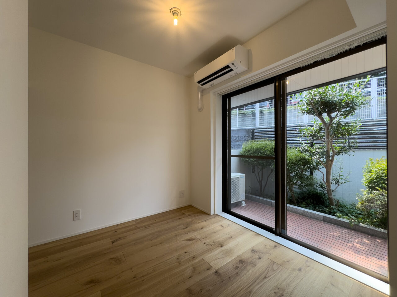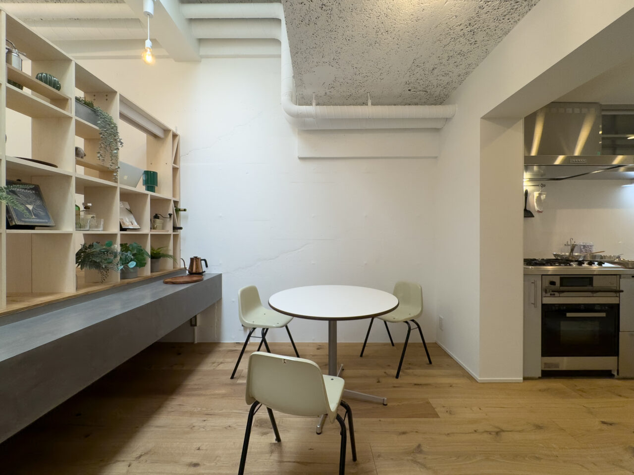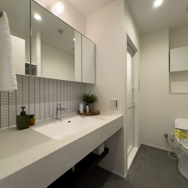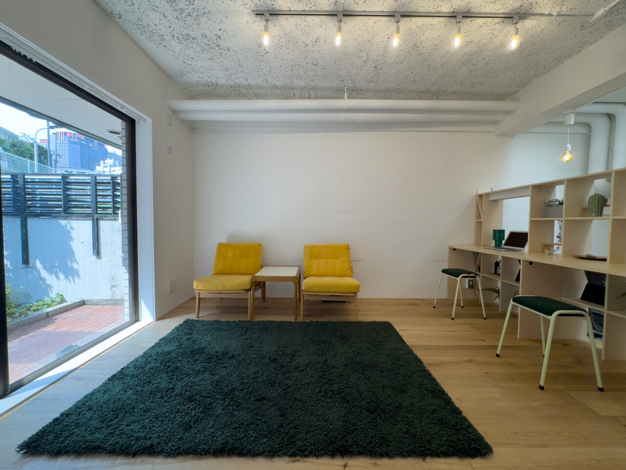 ロシア大使館裏手の狸穴町、鼠坂の途中の閑静な住宅街に建つ白いタイル貼りの2匹のペットと暮らせるマンションです。室内はたっぷり収納を確保した1SLDK、RC躯体や梁、木毛板の天井、オーク材の床など武骨なイメージの空間にテラスと小さな庭が気持ちのいいお部屋です。
