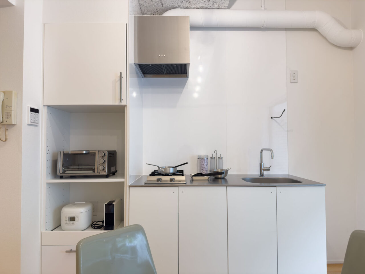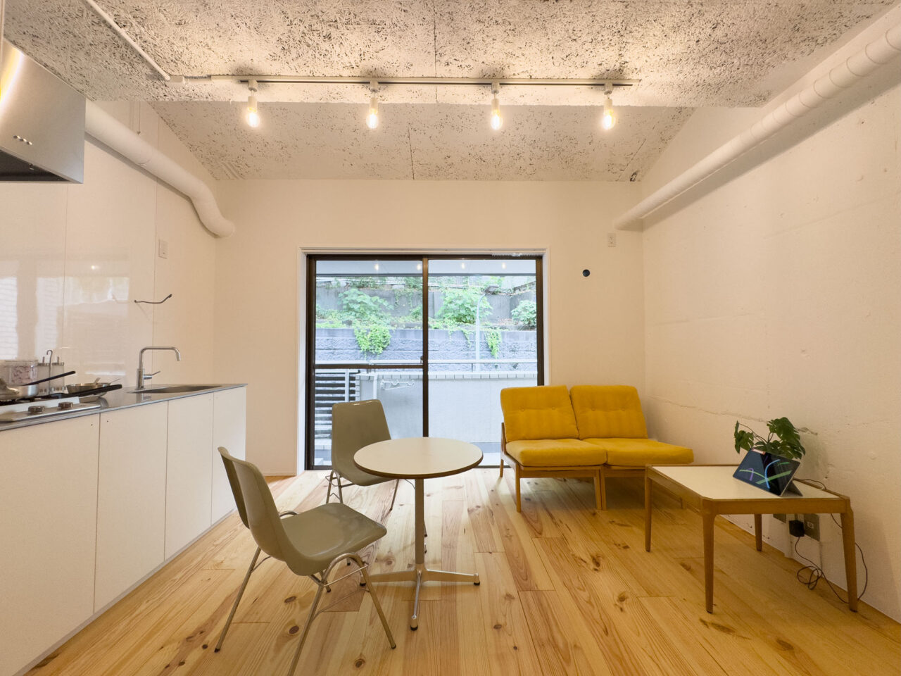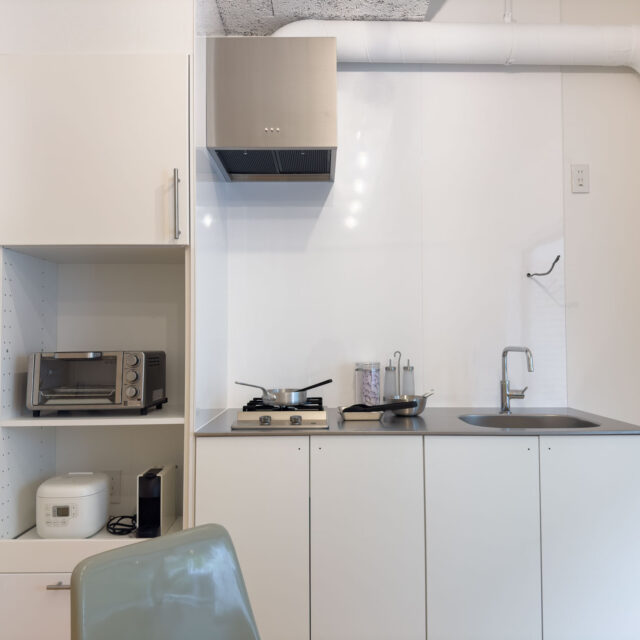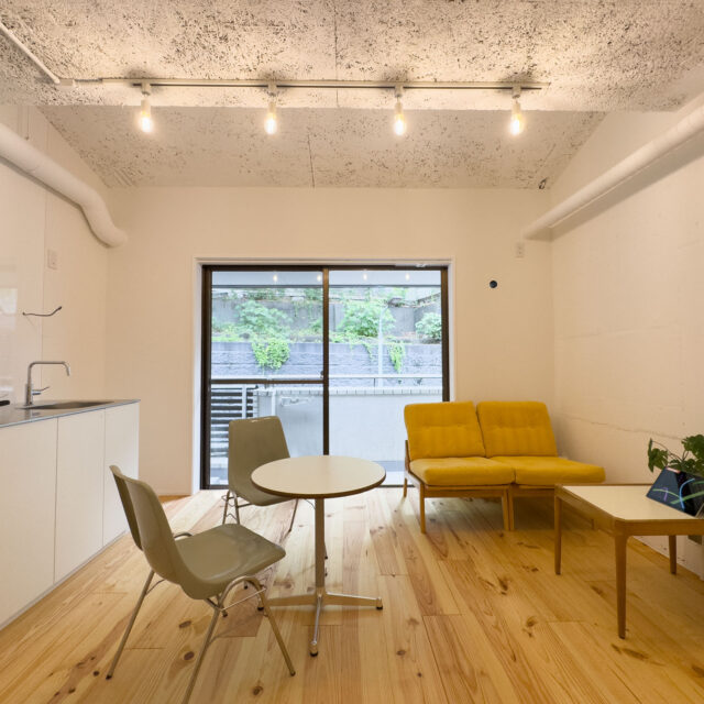 ロシア大使館裏手の狸穴町、鼠坂途中の閑静な住宅街にある白いタイル貼り、2匹のペットと暮らせるマンションです。室内は、都心のSOHOやシングルライフを思い描いた設計、28㎡の限られた空間にミニマル寝室を設け、洗面台兼廊下、トイレ兼脱衣所とデッドスペースがない効率的なお部屋です。