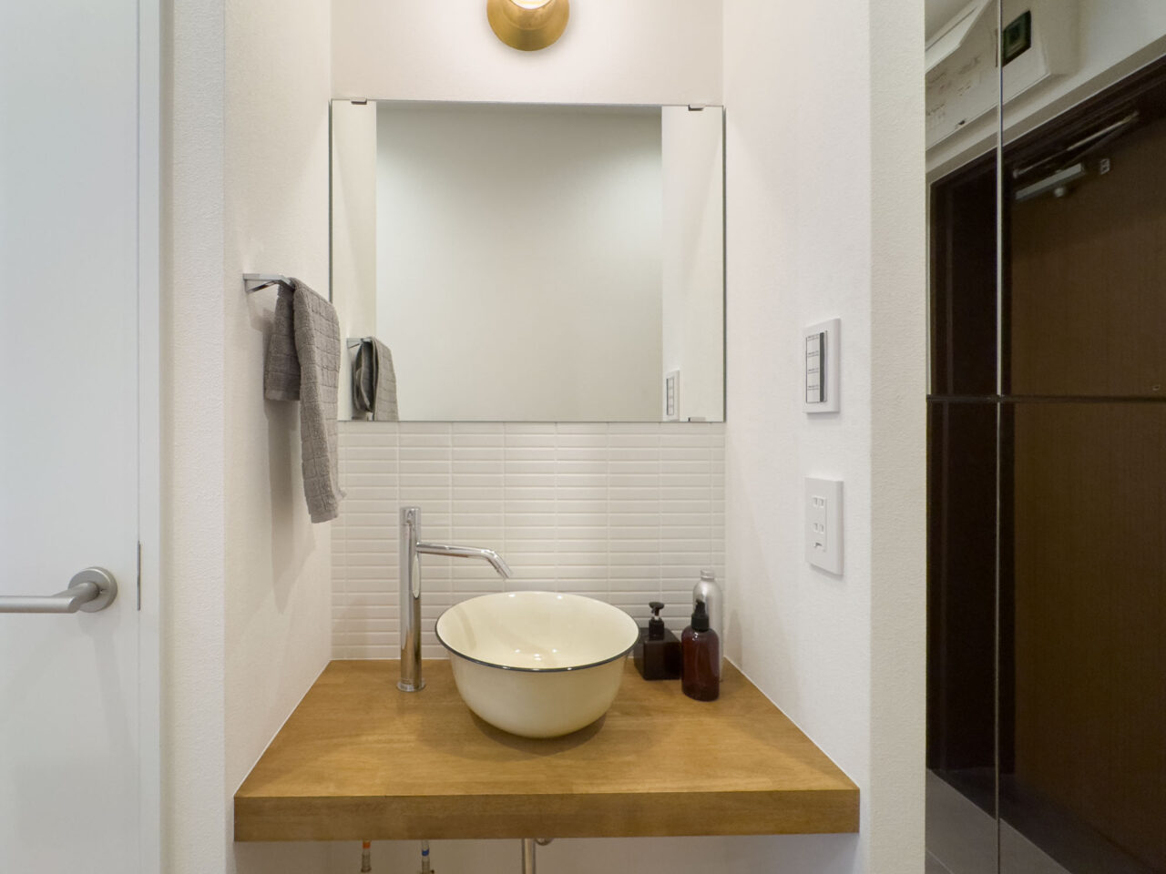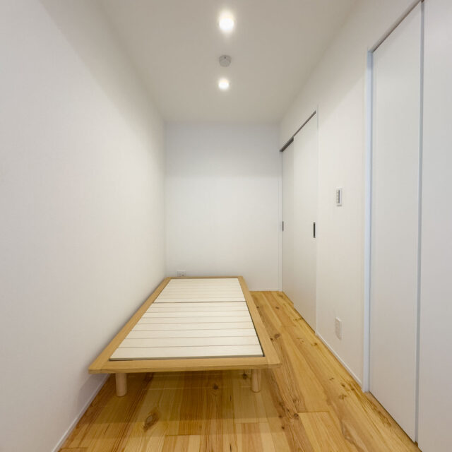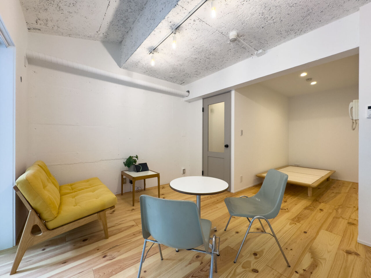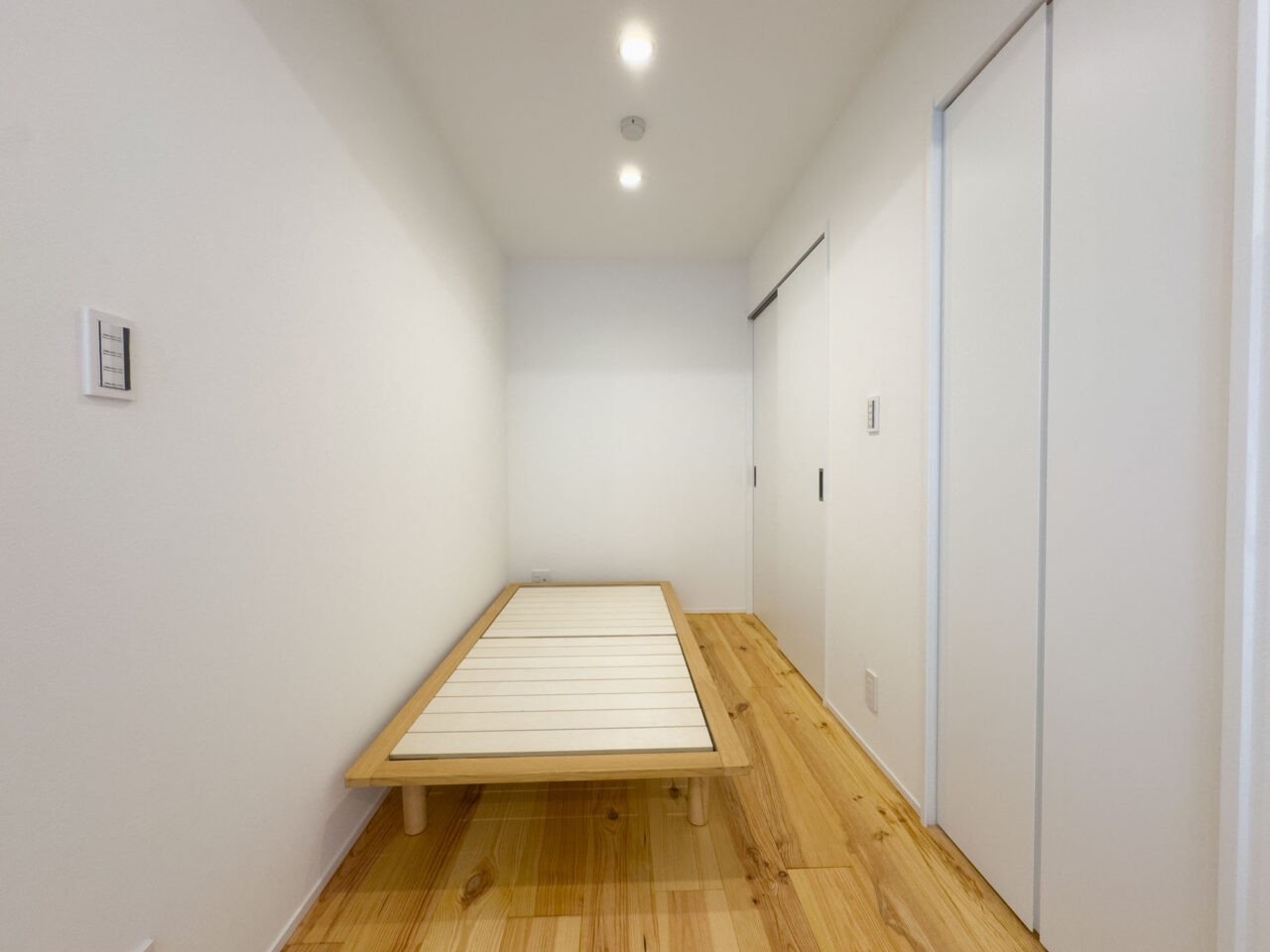 ロシア大使館裏手の狸穴町、鼠坂途中の閑静な住宅街にある白いタイル貼り、2匹のペットと暮らせるマンションです。室内は、都心のSOHOやシングルライフを思い描いた設計、28㎡の限られた空間にミニマル寝室を設け、洗面台兼廊下、トイレ兼脱衣所とデッドスペースがない効率的なお部屋です。