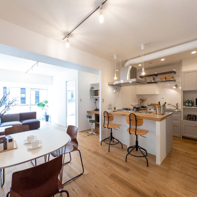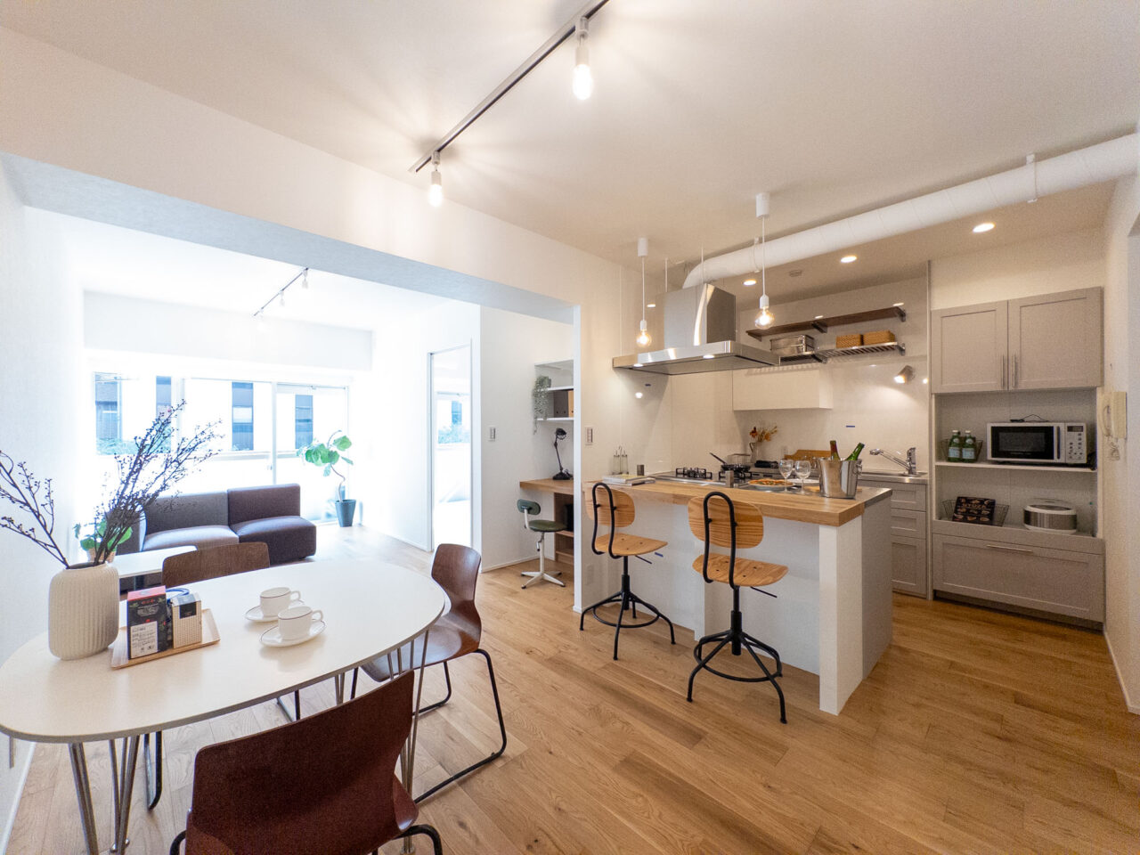 言わずと知れた人気の恵比寿、恵比寿橋交差点あたり、春は明治通りの桜が楽しめる便利な立地です。建物はレンガタイル貼りのペットと暮らせる49世帯、角部屋の401号室(2LDK)とその隣の402号室(1LDK)をリノベして同時販売いたします。