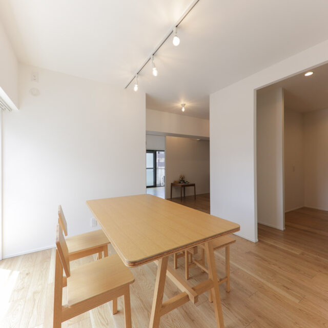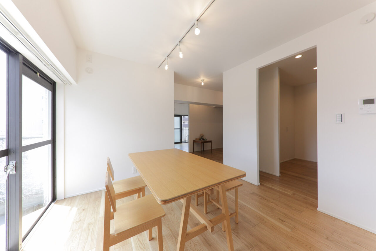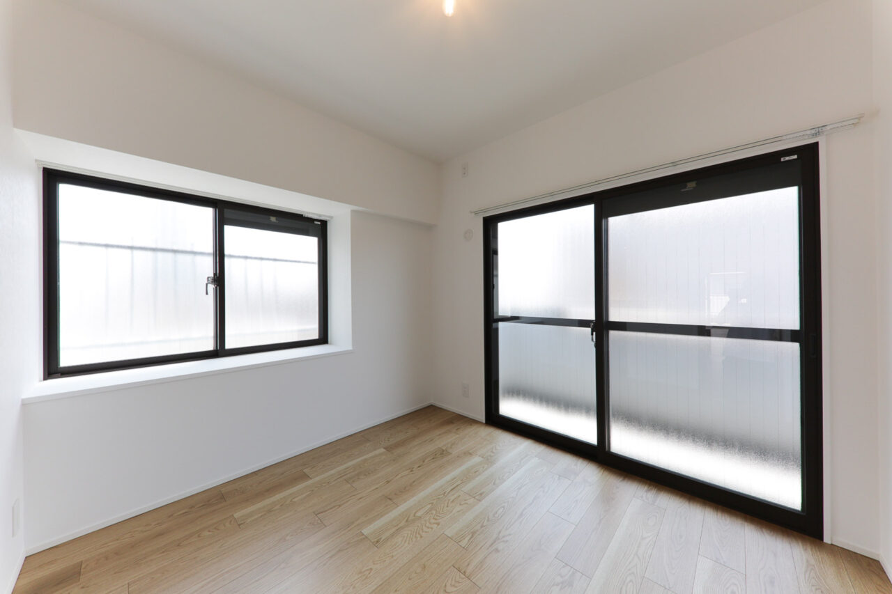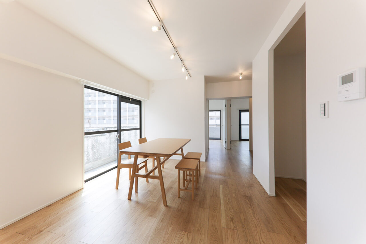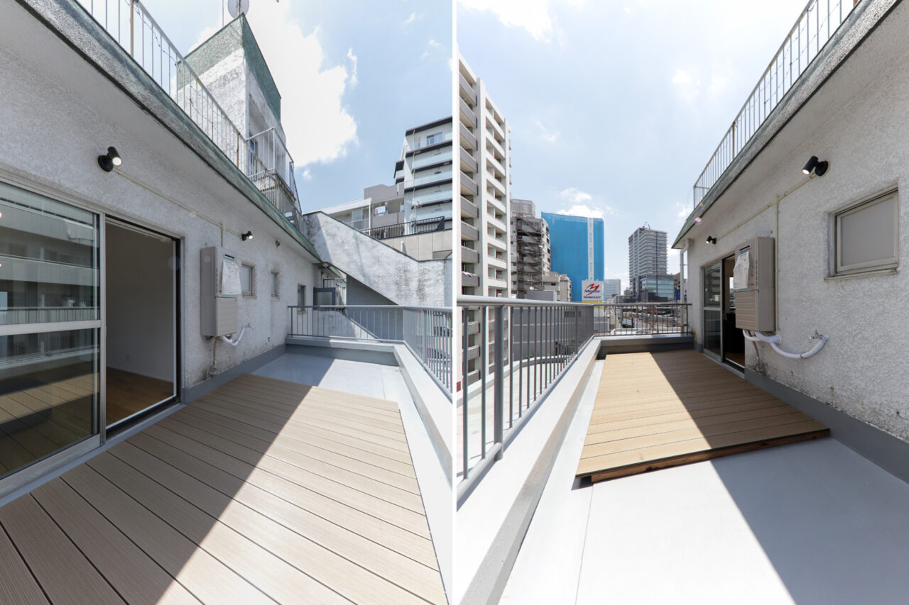 笹塚駅から線路沿いに徒歩3分、室内窓先のすぐそこにプラットフォームが見えるほどの駅前立地です。電車の音はうるさいけど、終電から始発までは静かなはず。広いルーフバルコニーにつながるLDKはくつろぎの空間、天井までの本棚と、2人が使えるデスクのあるセカンドリビングは、子供の勉強、大人の在宅ワークなど学びと仕事の空間です。約76㎡の面積を、寝室へはベッドが置けるスペースにミニマイズし、家族が過ごす共用空間に思い切ってスペースを割り振った2LDKのお部屋です。