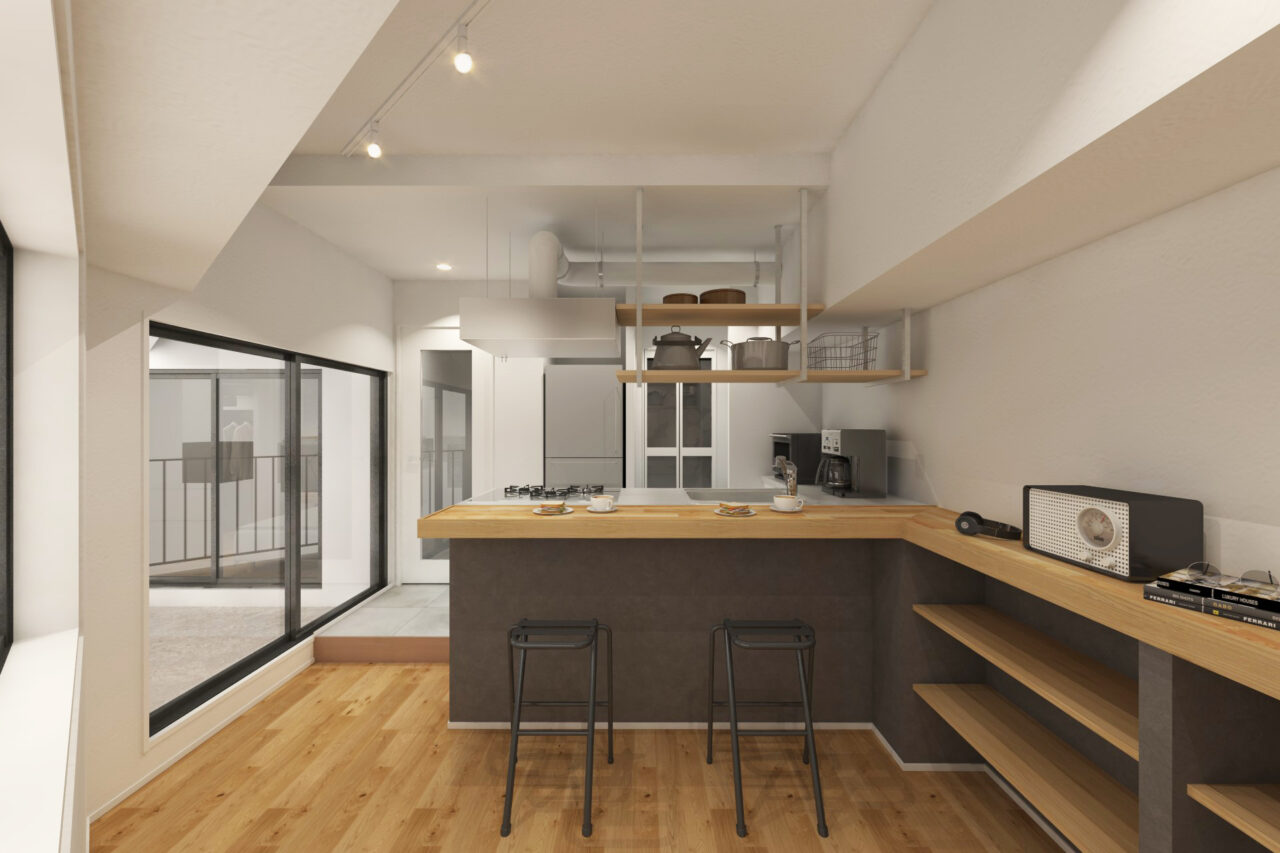 ビックターミナル新宿駅が徒歩圏の代々木、千駄ヶ谷エリアで緑豊かな新宿御苑がすぐそこ、抜群のロケーションです。建物は一階に飲食店等のテナントが入居し、上層階は過半が事務所が入居するマンションです。室内は三角形の変形間取りをリズミカルに設計されたおひとりさま向けのリノベーションです。現在内装工事中、1/14完成予定。