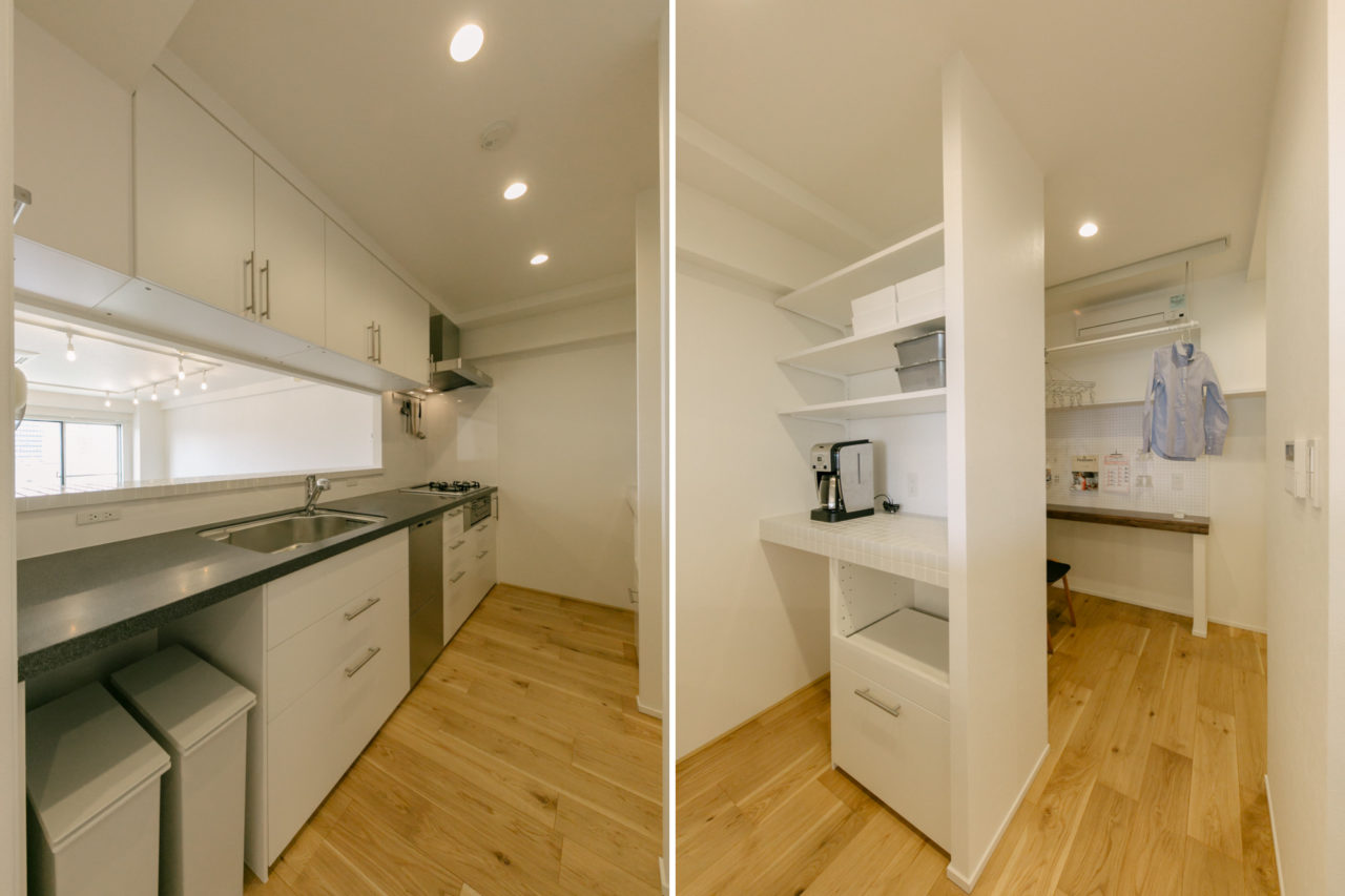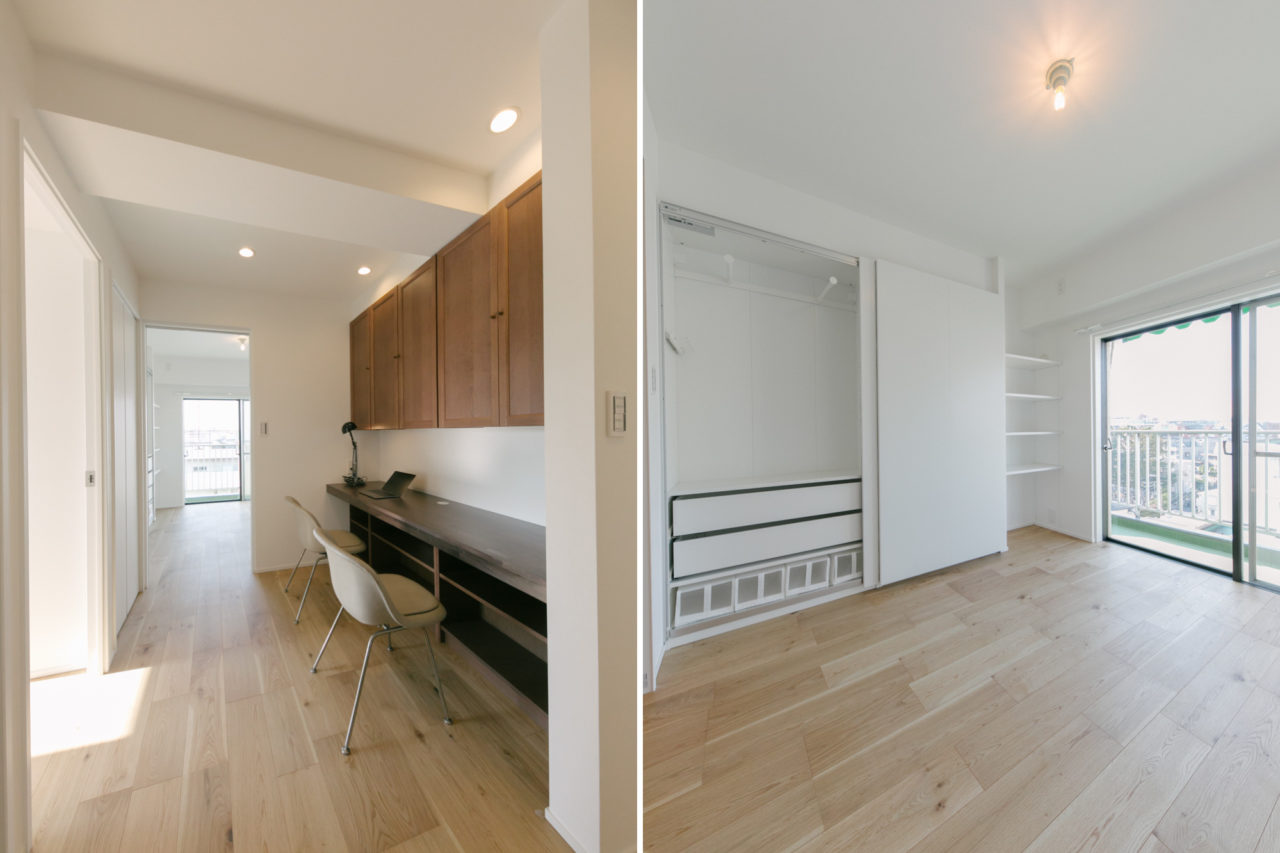 五反田、目黒エリアが生活圏、首都高環状線五反田入口もすぐそこで、どこに出るにも便利な立地です。建物の2階には上場企業の元地権者が事務所をかまえ、今も管理組合の運営に関わってくれています。お部屋は最上階の約102㎡をゆとりの2LDKにリノベーション。豊富な収納、家事室、書斎スペースなどがあり、25Jの広々LDKと生活動線に配慮した暮らしやすいお部屋です。