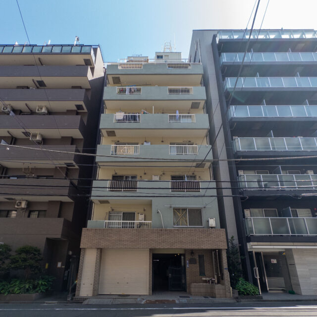 錦糸町駅南口から約徒歩9分、猿江恩賜公園、都営新宿線の住吉駅も徒歩圏の立地です。建物は10階建てのひょろっとした雑居ビル風、建築後約45年経過する中で、EVリニューアル、給水設備更新等、必要な修繕を施してきました。