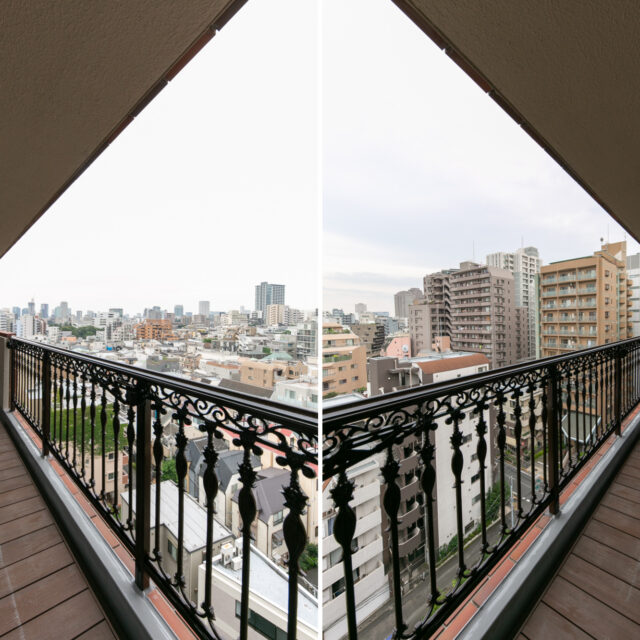 恵比寿、広尾のどちらにも出やすい天現寺エリアに立地する重厚感あるレンガタイル張りのマンションです。夫婦住込の管理員、清潔な共用スペースの雰囲気からも住人たちの建物への愛着が感じられます。室内はアンティーク調オーク材の床、躯体現しの天井、塗装仕上げの壁など使い込むほど味わいがでる素材に、浴室はメーカー最上級品、ステンレスと無垢材のプロっぽいキッチンが採用されています。10Fの南向き、明るく開けた眺望と静けさも魅力の希少物件です。