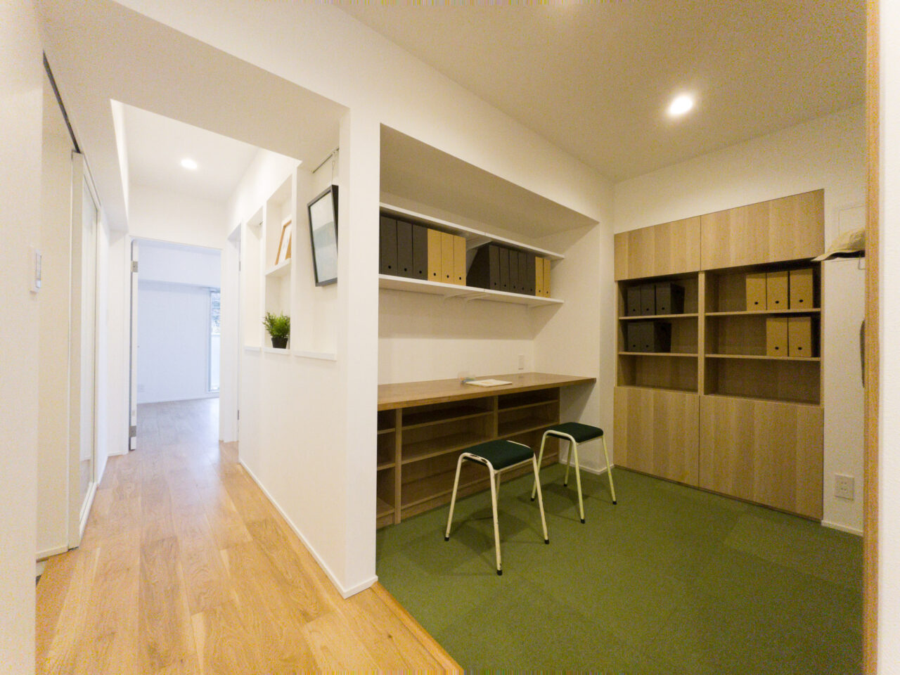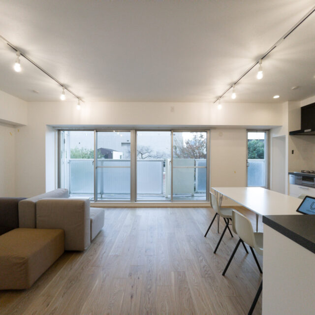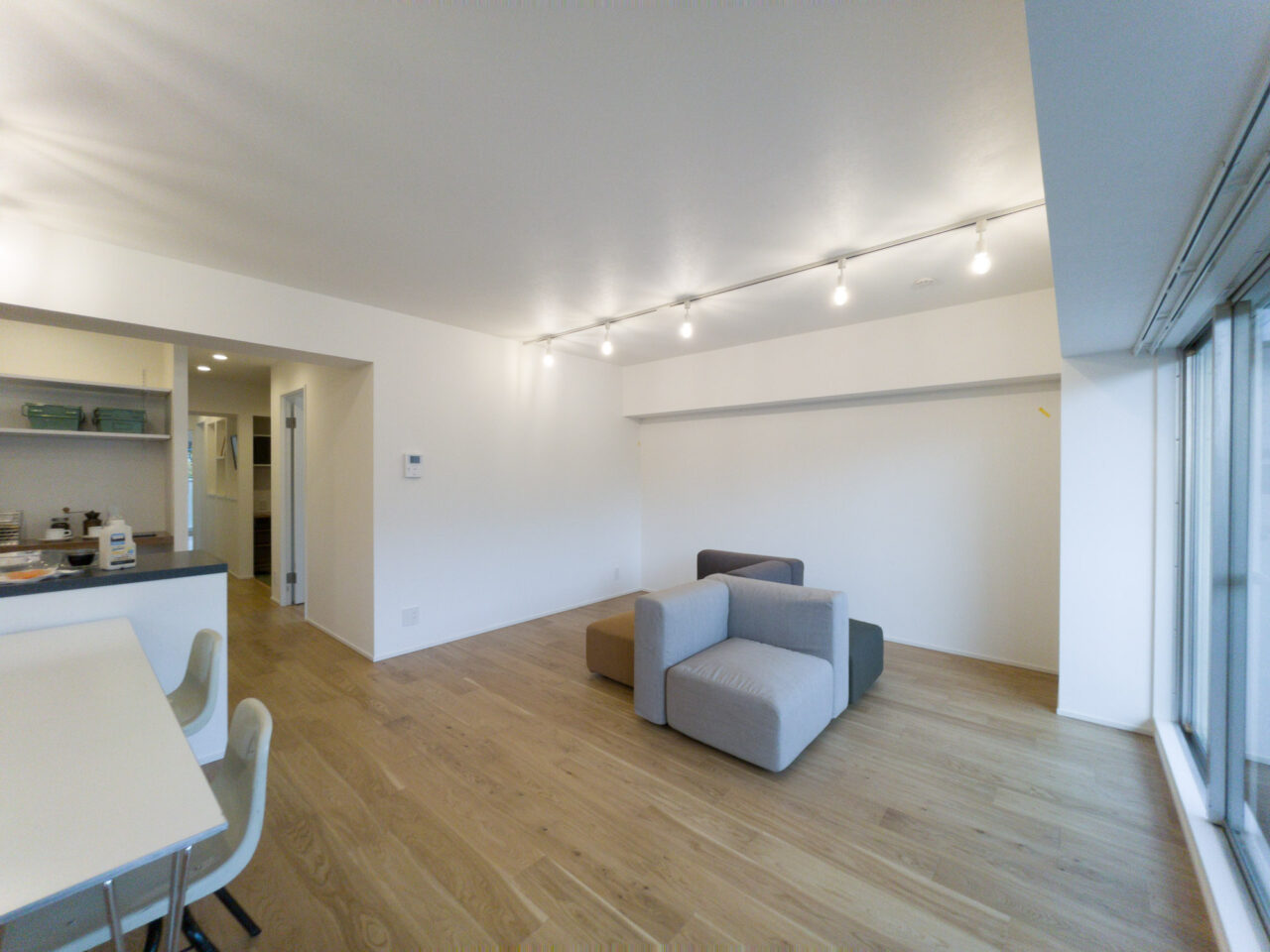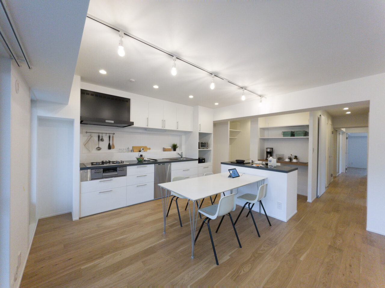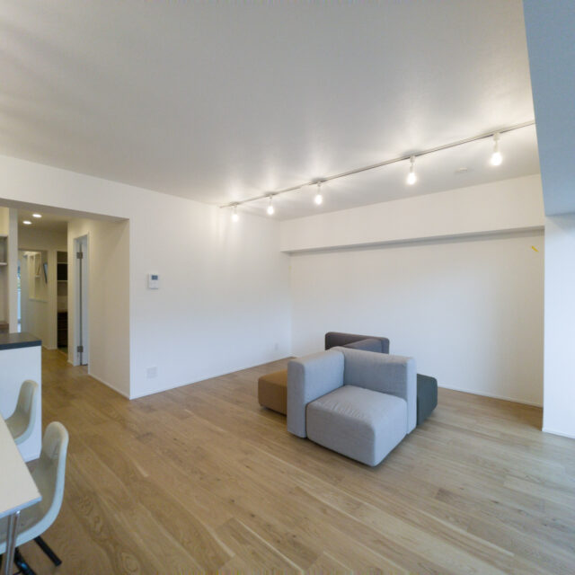 建物は42年経過していますが、適宜修繕がなされ清潔感が保たれています。室内は81㎡の3方角部屋、約19Jの広いLDK、加えて子供のためのリビング(約2.7J)は学びと遊びの専用スペースです。キッチンはL字型でアイランドカウンターもあり、夫婦ふたり一緒に作業できる料理好きにはうれしい設計。EVがないのは欠点ですが、階段の上り下りなんてへっちゃら、どうしても2匹のペットと暮らしたい!というファミリーにぴったりのお部屋に仕上がりました。