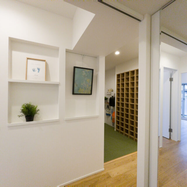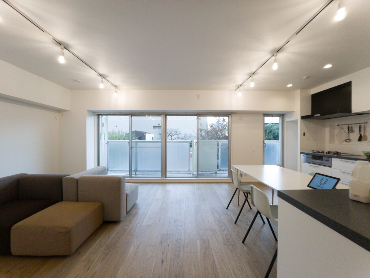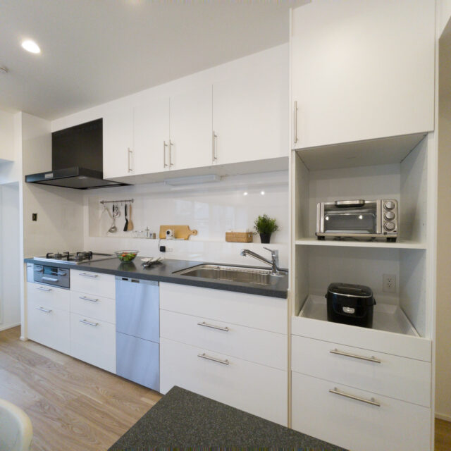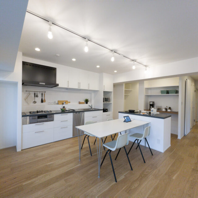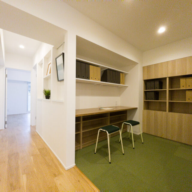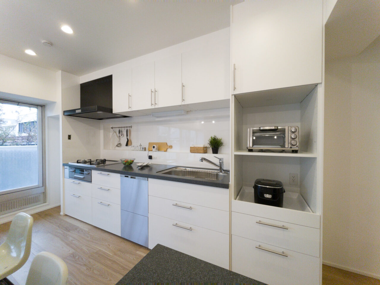 建物は42年経過していますが、適宜修繕がなされ清潔感が保たれています。室内は81㎡の3方角部屋、約19Jの広いLDK、加えて子供のためのリビング(約2.7J)は学びと遊びの専用スペースです。キッチンはL字型でアイランドカウンターもあり、夫婦ふたり一緒に作業できる料理好きにはうれしい設計。EVがないのは欠点ですが、階段の上り下りなんてへっちゃら、どうしても2匹のペットと暮らしたい!というファミリーにぴったりのお部屋に仕上がりました。