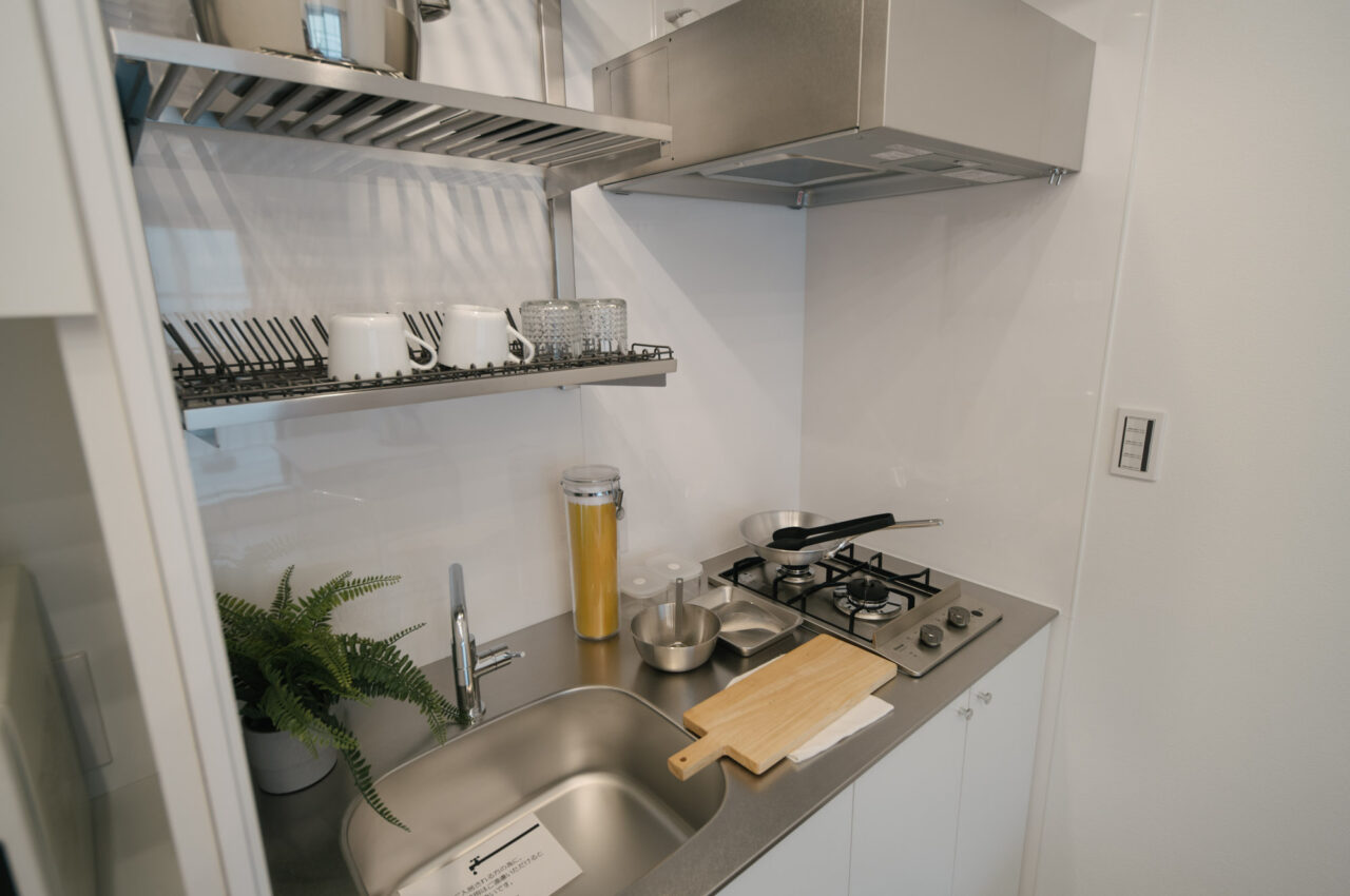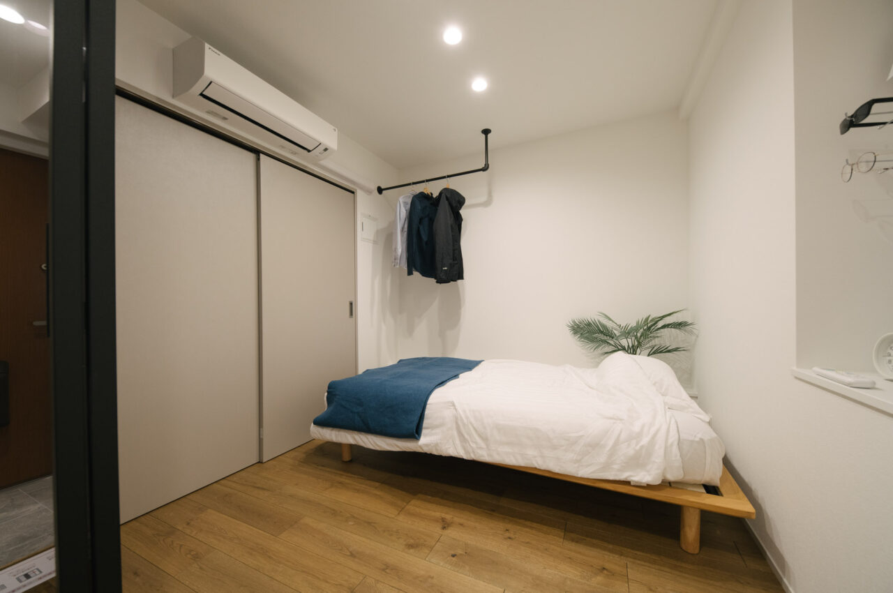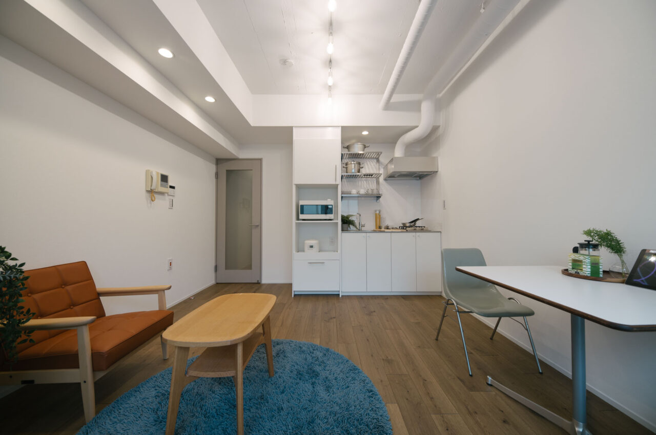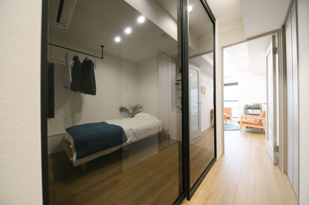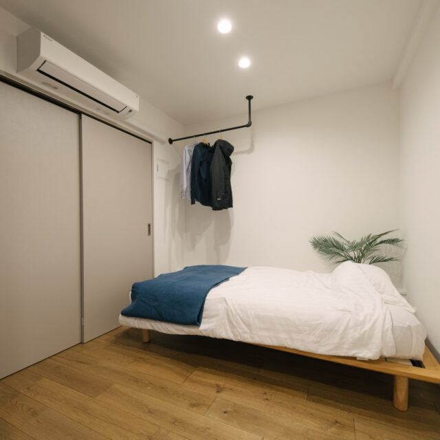 室内はミニマムだけど息苦しさのまったくない寝室、十分な水回り設備、コンパクトなダイニングキッチンと過不足のないおひとり様へ向けたリノベーションです。