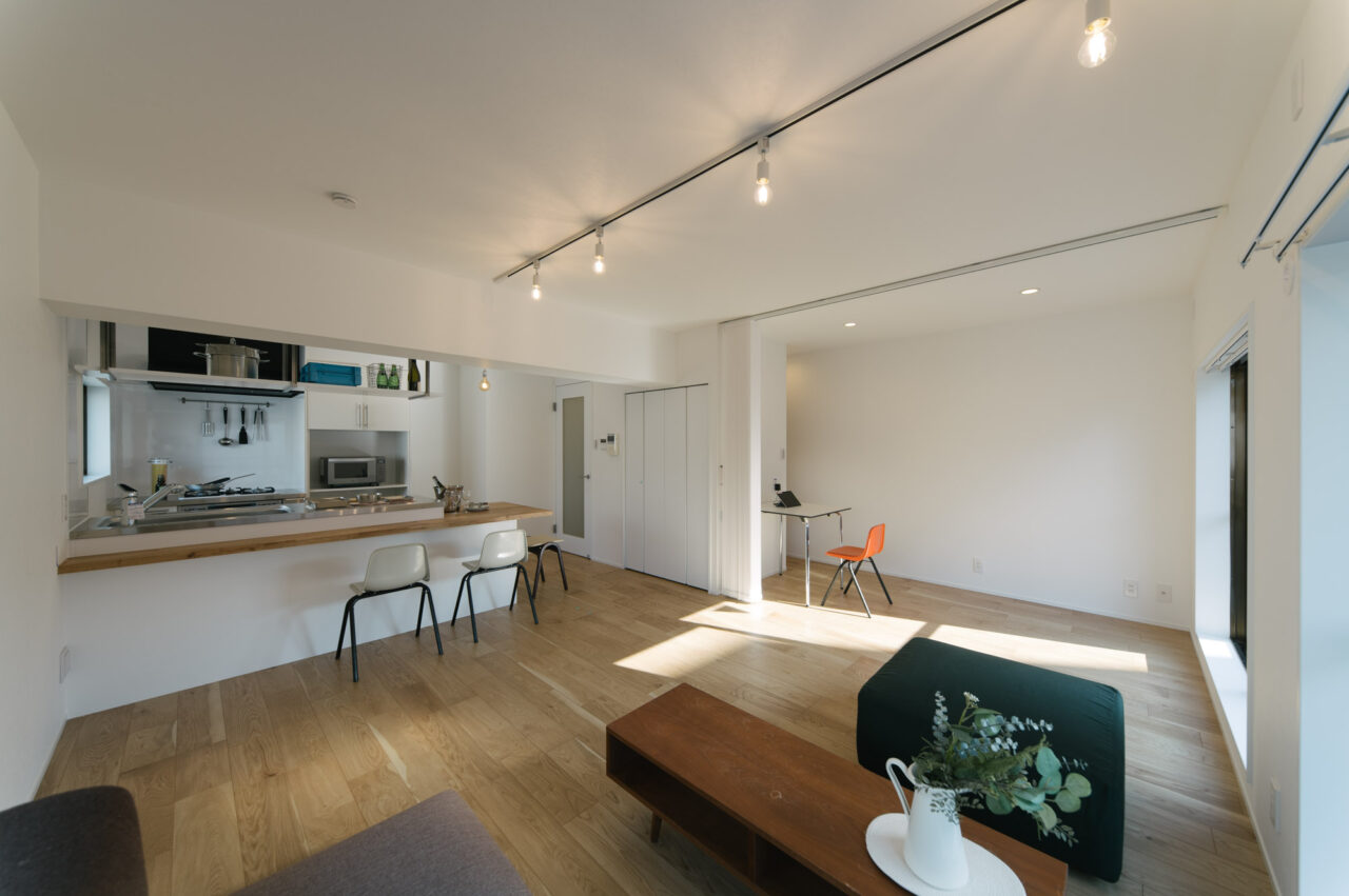 「学芸大学」駅まで徒歩14分、「目黒」駅までは徒歩2分の「清水」バス停より数分おきに目黒行きのバスがあるからとても便利です。敷地は旧法賃借権なので更新可能で半永久的に利用できる権利です。室内は1LDK+書斎、ダイニングテーブルを併設したⅡ型アイランドキッチンや豊富な収納、その広さと品質はお値段以上のバリューです。