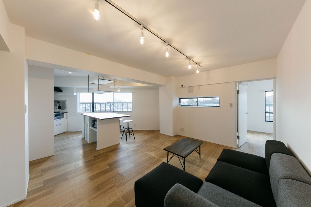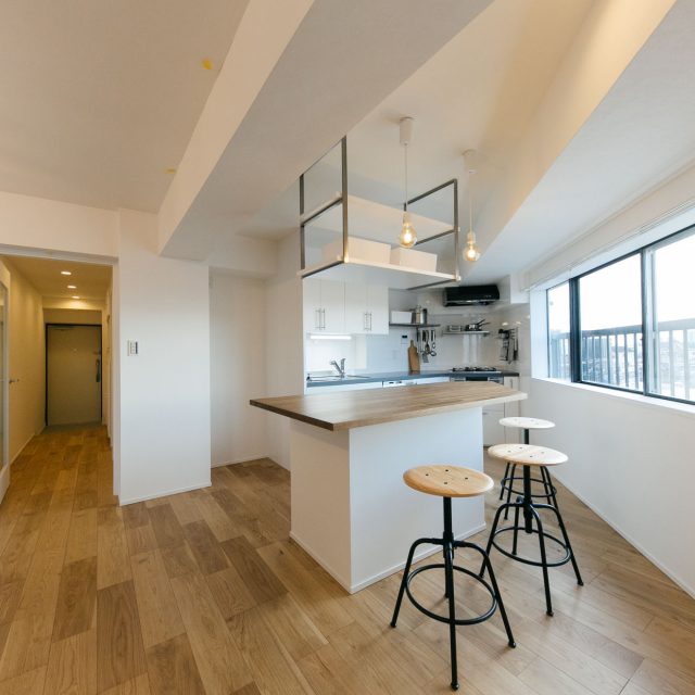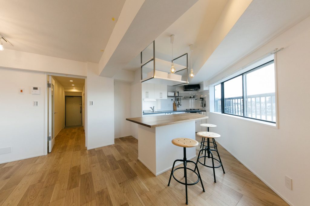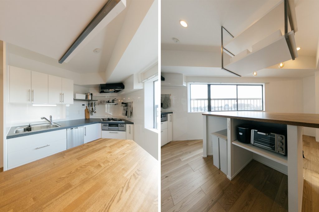 駒沢オリンピック公園へ徒歩1分のパークサイドマンションです。毎日の散歩、ワークアウト系の公園フリークにはうれしい好立地。もつ煮込定食の名店で私語厳禁!の「カッパ」、センスと活気あふれるカフェ「バワリーキッチン」などイケてるお店たちも、日々の暮らしの楽しみです。変形オーダーキッチンと、斜めの壁に合わせて造作したダイニングテーブルは作業台も兼用、みんなで料理をしたくなるはず。明るい角部屋からの眺望は超良好、空気の澄んだ冬の朝には富士山や東京タワーも望めます。