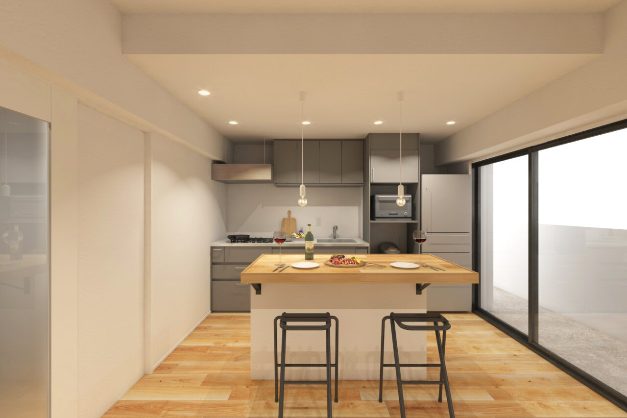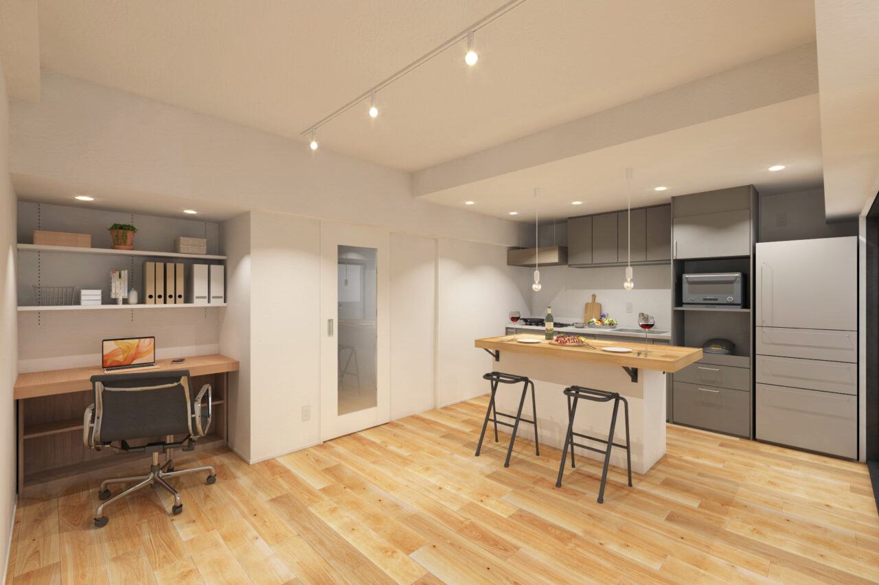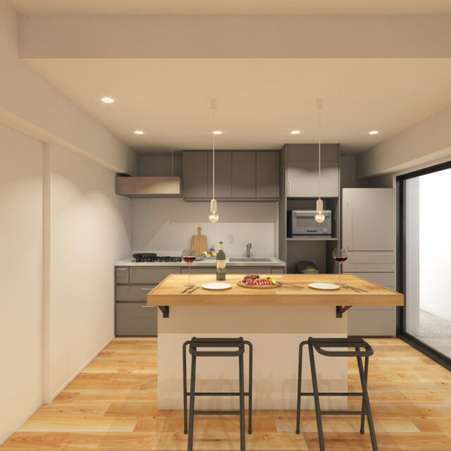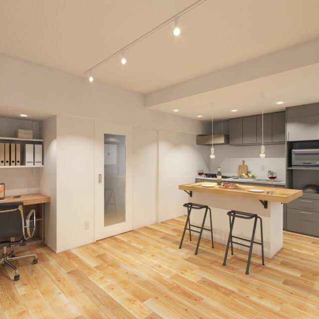 東横線多摩川駅から徒歩10分、自由が丘もお散歩圏、利便性と多摩川の水や緑の自然の豊かさを兼ね備えた立地です。1階にスーパーが入居するレンガタイル貼りの建物です。室内はEV無しの2階部分、極小寝室と広めの約38㎡、コンパクトだけど広々したアイランドカウンター付キッチン、ワークデスクもあり、バリバリ働くおひとりさまへ向けたリノベーションです。現在内装工事中、11月中旬完成予定。