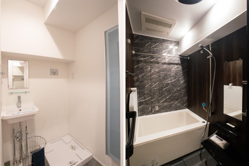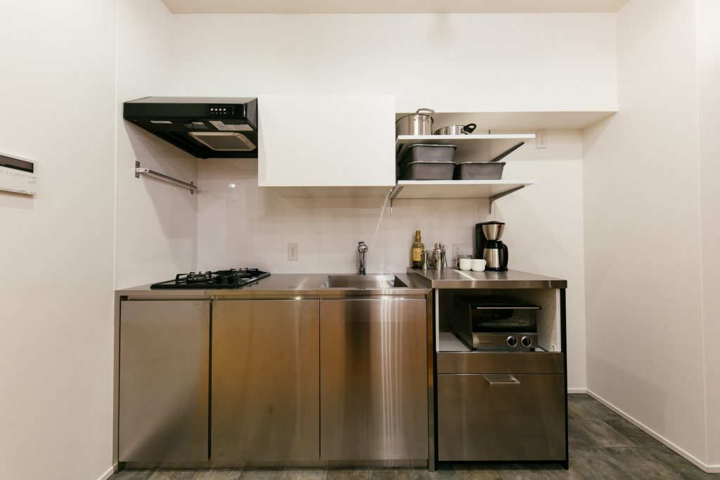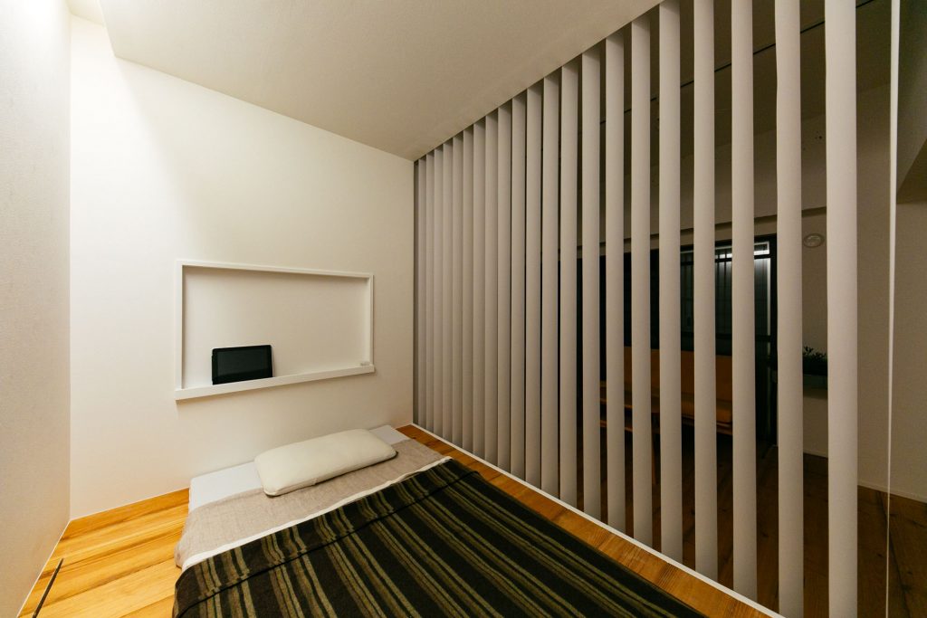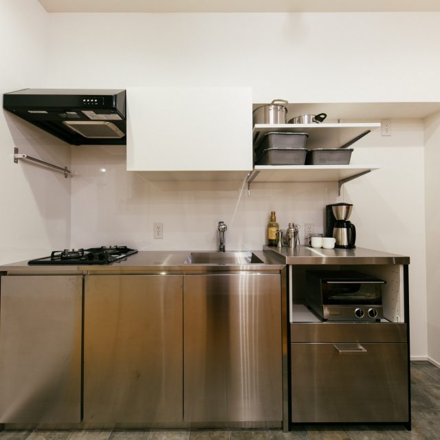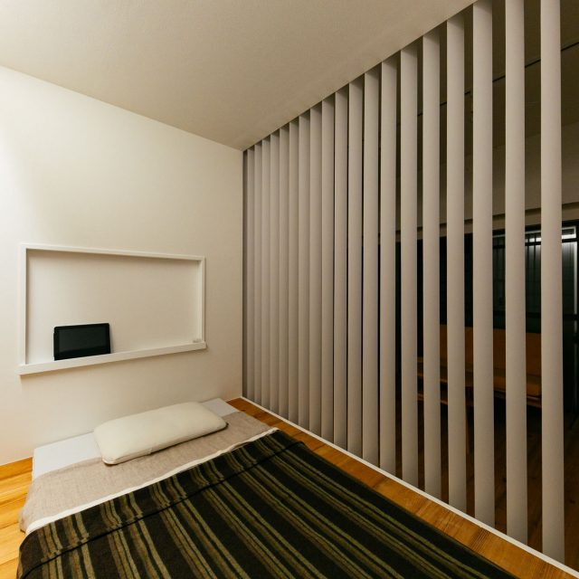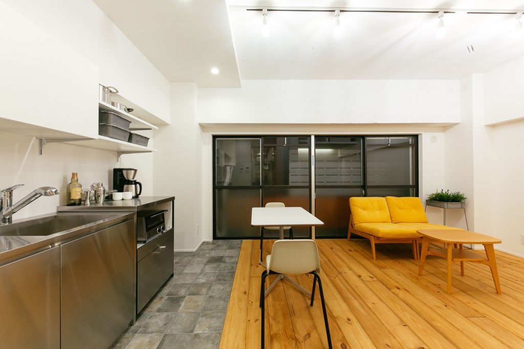 目黒五反田が生活圏で、かむろ坂の桜並木や林試の森公園が徒歩圏にある豊富な緑とフットワークが魅力の立地です。室内は武骨でシャープな男前風の仕上がりが共用部分とは異次元の雰囲気です。寝る場所はミニマムサイズの空間をつくってブラインドで仕切りました。1階のセキュリティなどさほど気にならない!といったインドア派の方にぴったりのお部屋に仕上がりました。
