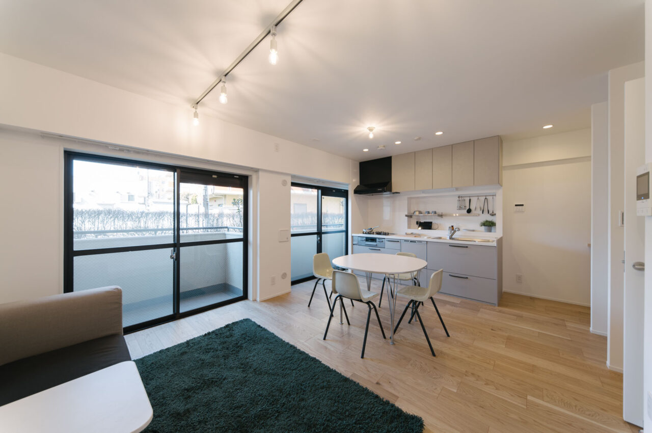 急行で新宿まで30分、副都心線も乗り入れる西武新宿線花小金井駅から徒歩16分の住宅地です。建物は新耐震基準で住宅ローン控除利用可、室内は充分な大きさの水回り設備や収納が設けられた2LDK+Sの間取りプラン、1階住戸のセキュリティが気にならない人なら、フルリノベ済みでお求めやすい価格です。