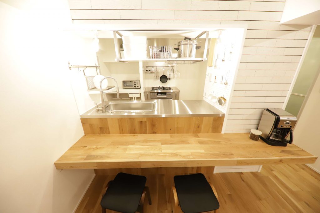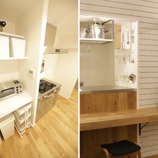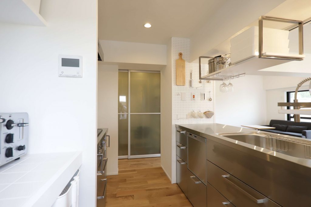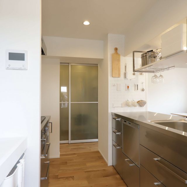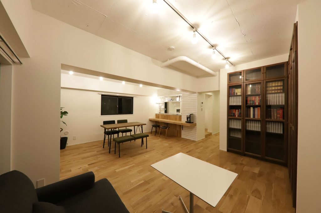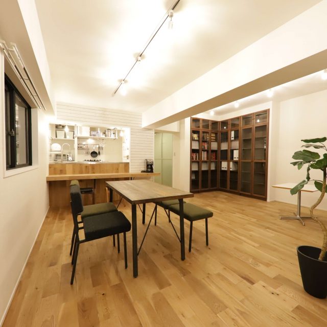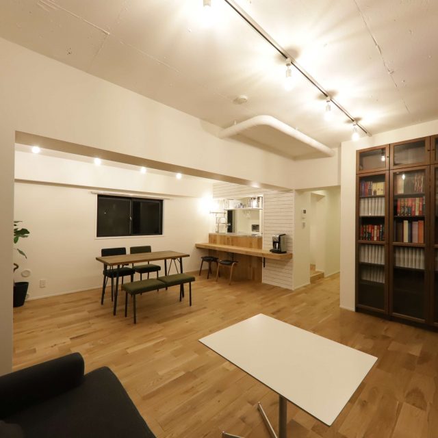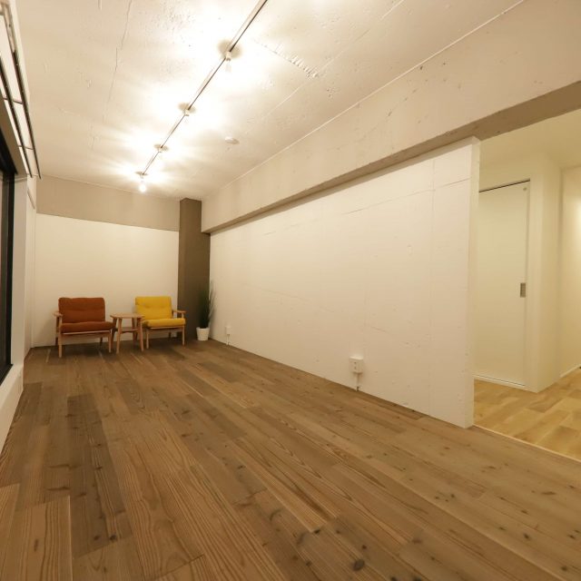 前のオーナーさんが新築時に2部屋購入して1部屋に設計変更、5LDKにお住まいの大家族でした。時が経ち、こどもたちは家を出てゆき、ご夫婦だけでは広すぎる部屋になってしまい、当社にお譲りいただきました。今回は、塞がれていた元玄関を42年ぶりに復旧させ、2SLDK(78㎡)1LDK(39㎡)の2部屋に分割できるプランにしました。2LDKで暮らし、1LDKはスモールオフィス、隣り合う親子の2世帯使用などがピッタリの使い方。また、1部屋を賃貸することで、その収入を返済に回せば差額のみでお住まいいただくことも可能です。