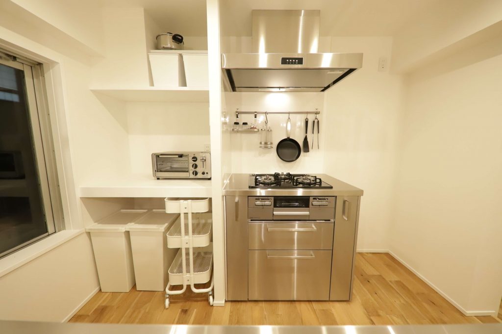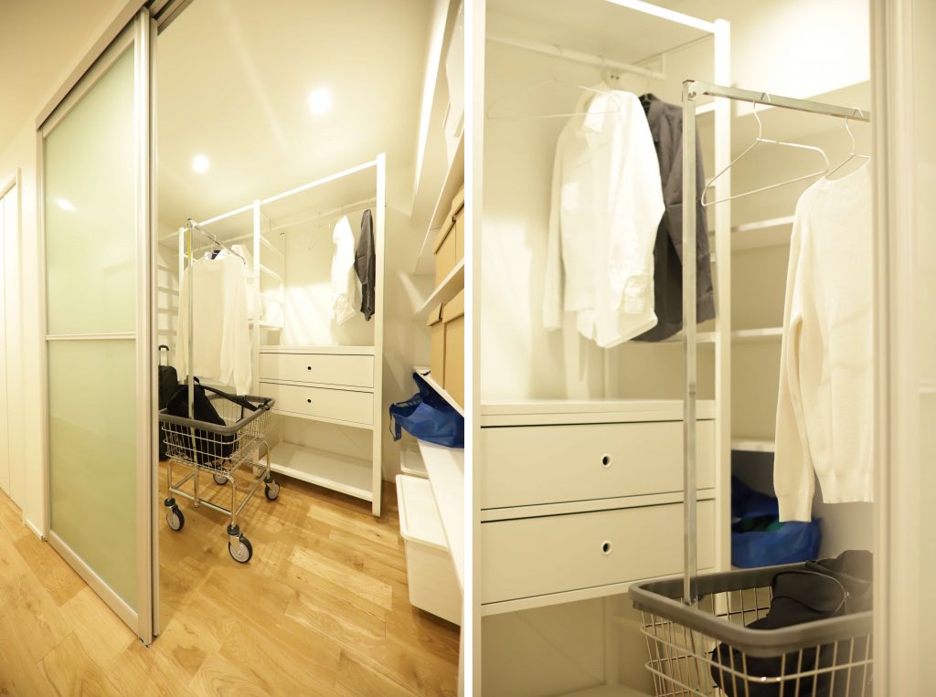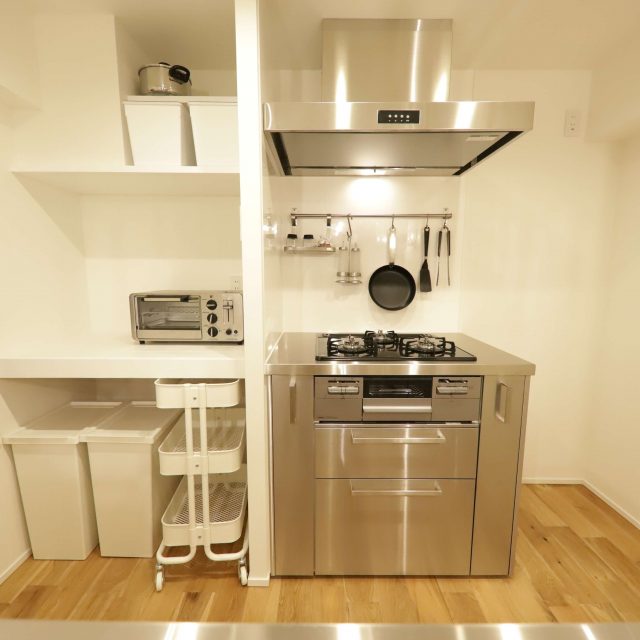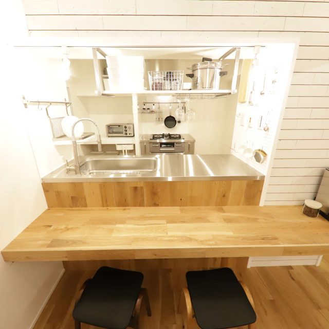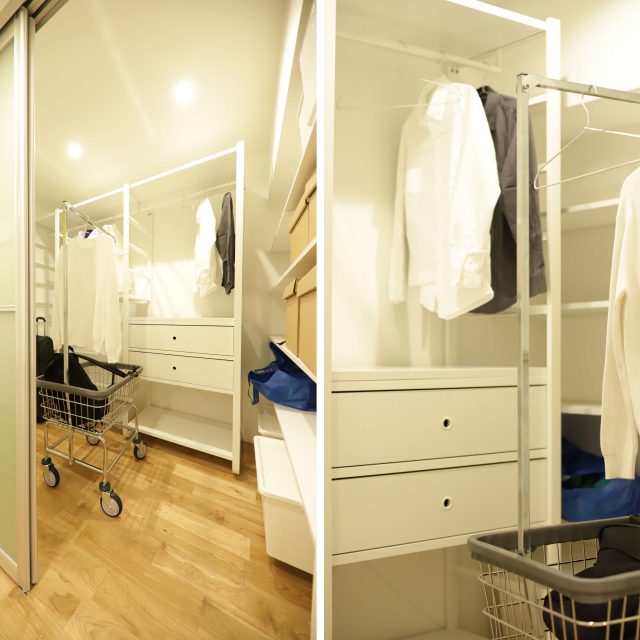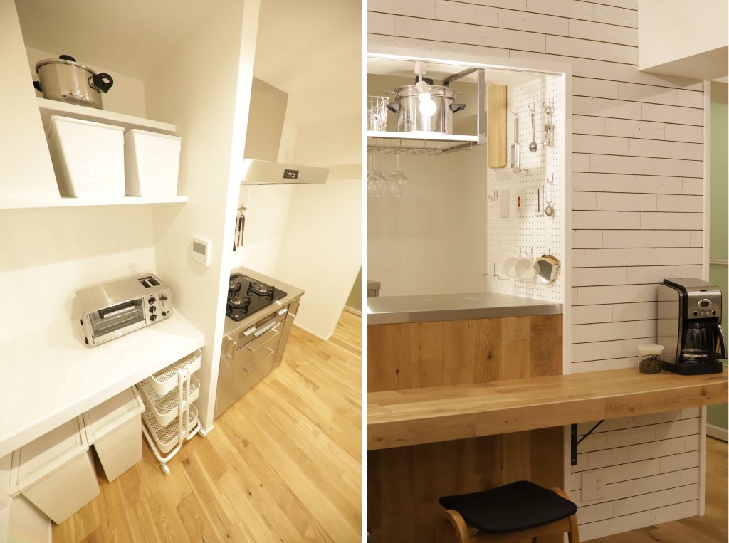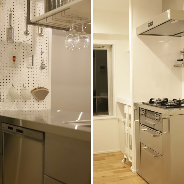 前のオーナーさんが新築時に2部屋購入して1部屋に設計変更、5LDKにお住まいの大家族でした。時が経ち、こどもたちは家を出てゆき、ご夫婦だけでは広すぎる部屋になってしまい、当社にお譲りいただきました。今回は、塞がれていた元玄関を42年ぶりに復旧させ、2SLDK(78㎡)1LDK(39㎡)の2部屋に分割できるプランにしました。2LDKで暮らし、1LDKはスモールオフィス、隣り合う親子の2世帯使用などがピッタリの使い方。また、1部屋を賃貸することで、その収入を返済に回せば差額のみでお住まいいただくことも可能です。