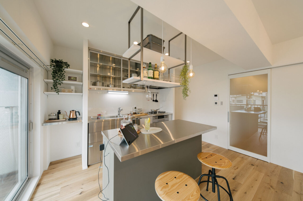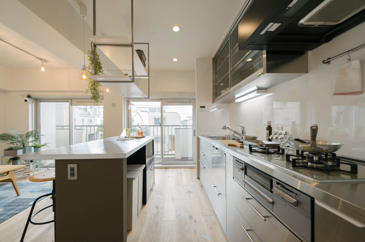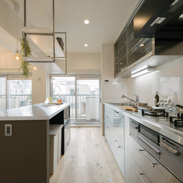 三茶と池尻の中間点、高感度な大人スポットの三宿は、隠れ家バーやカフェ、洗練されたレストランが点在、世田谷公園もほど近く、落ち着きと利便性が心地よく共存する環境です。建物は築50年が経過、玄関ドアやサッシも更新、大小適宜修繕が繰り返され、共益費は低めに抑えられ、積立金も2億弱保有、管理員もご夫婦の住込み管理ができるのは141戸のスケールメリットがなせる業。室内は、温かみのある木の床と開放的なステンレス製アイランドキッチンが特徴的な43㎡1LDKのリノベーションです。