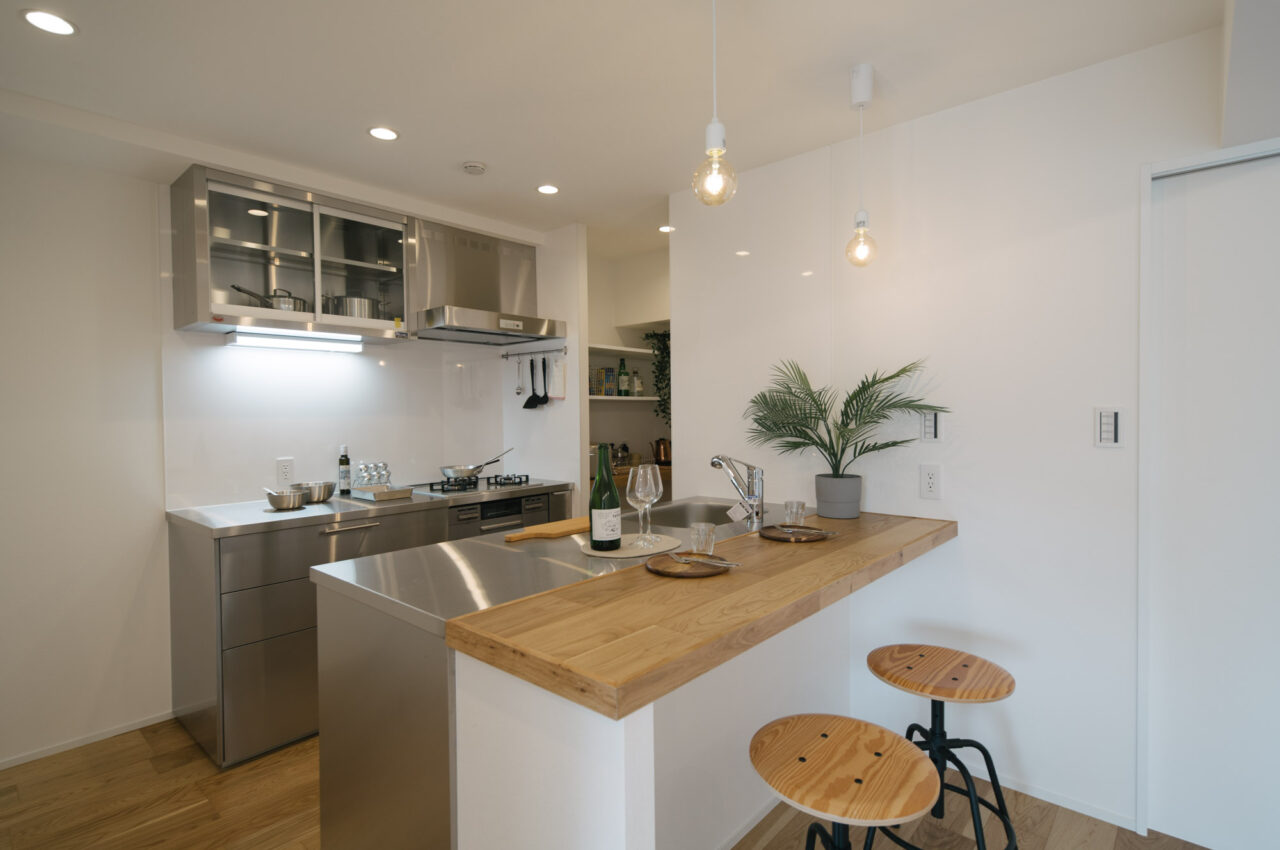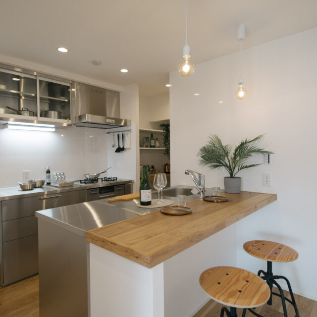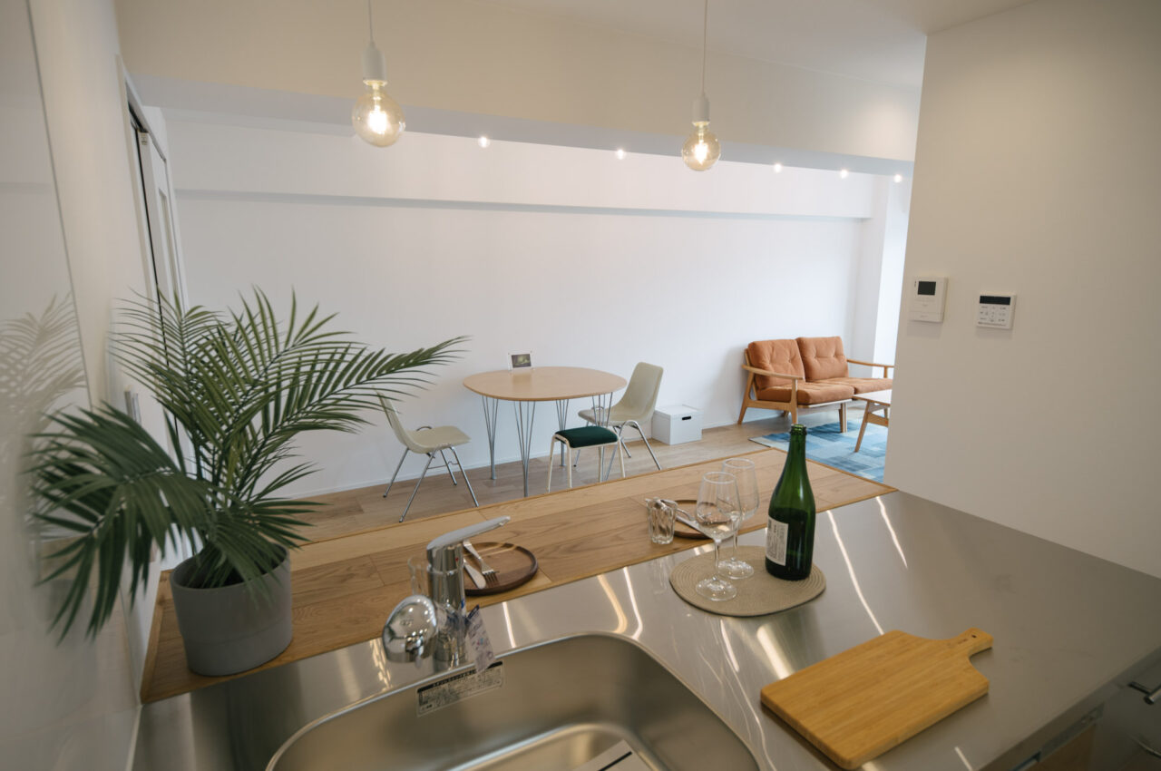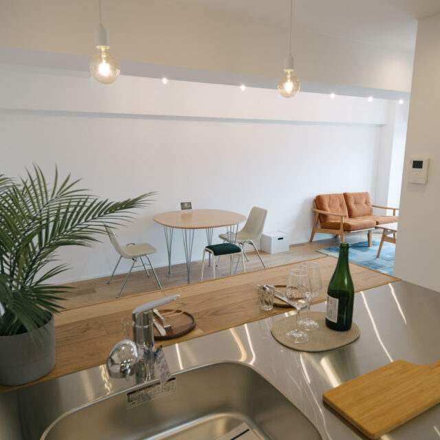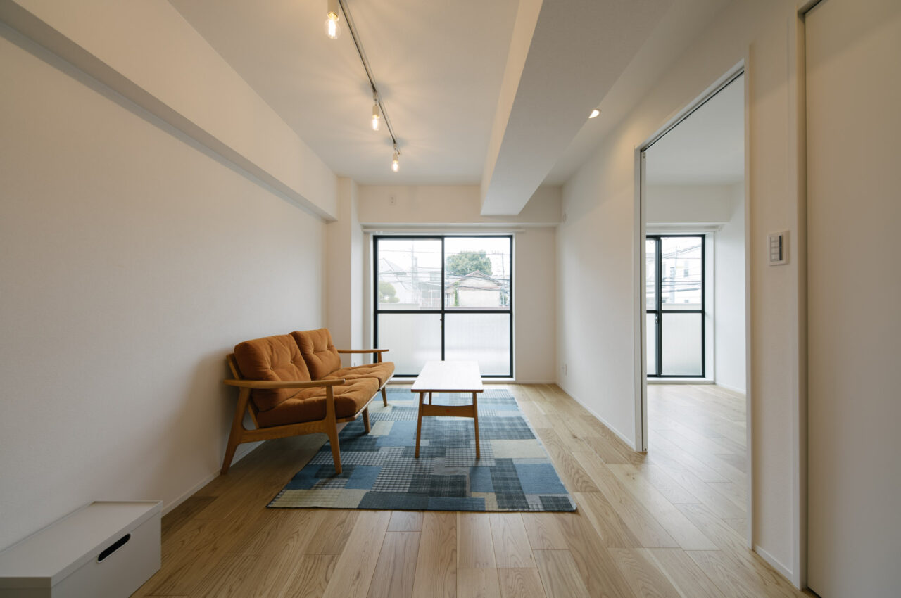 丸の内線新高円寺と方南町のちょうど中間点、個性的な飲食店や古着屋が建ち並ぶ高円寺がお散歩圏で、住宅価格が割安な立地です。建物はEVの無い4階建ての2階部分、寝室と水回りをミニマイズ、その分収納とLDKへ面積が割り振られたデッドスペースの少ない1LDKのリノベーションです。
