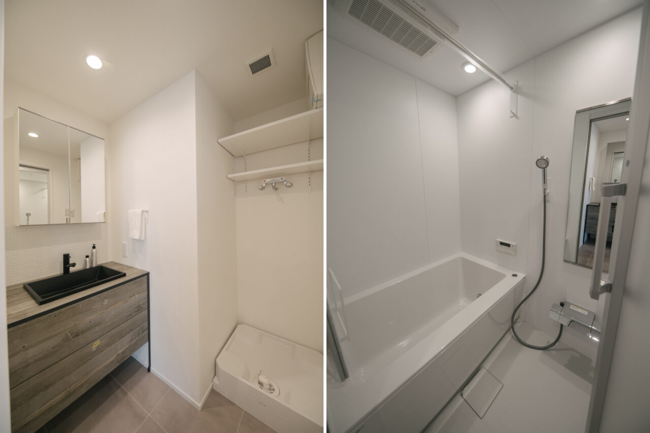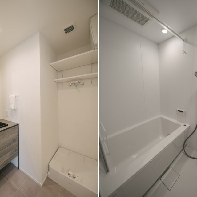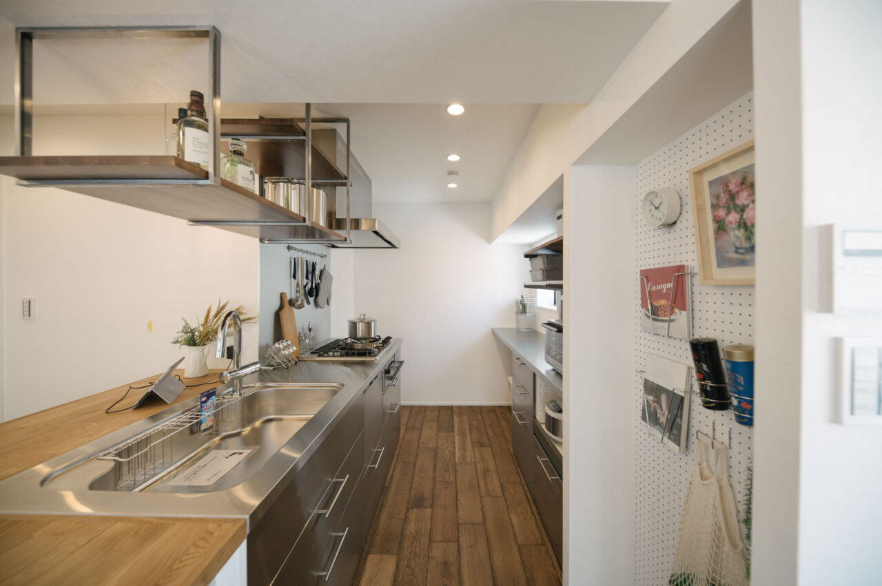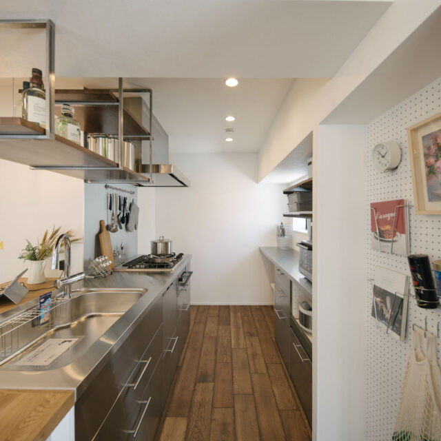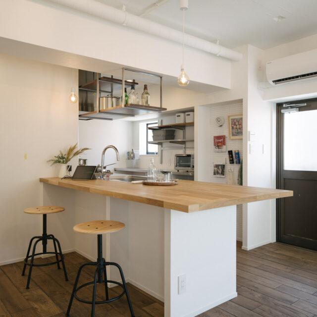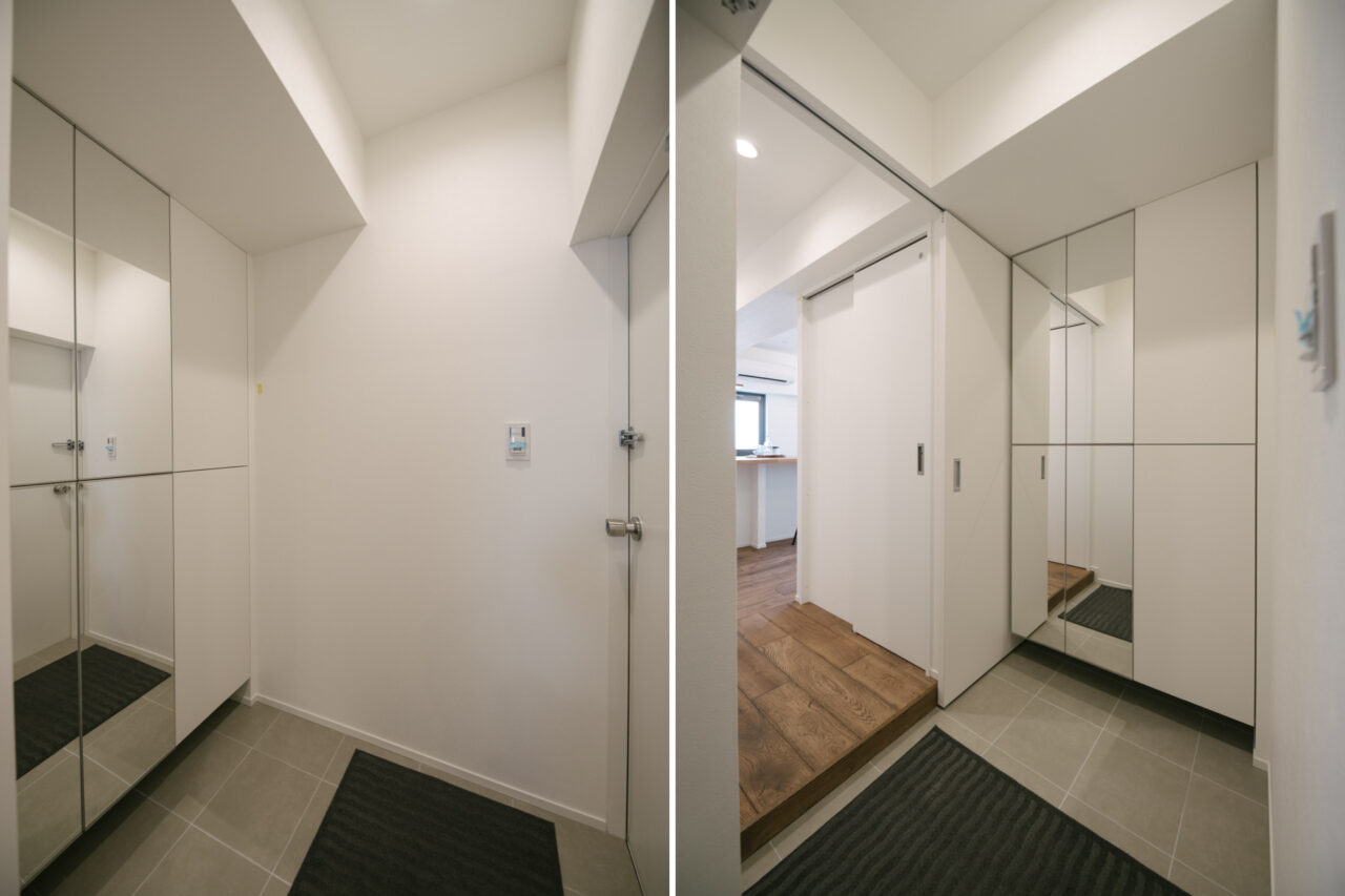 青山、六本木、広尾の中間地点の西麻布、交差点から根津美術館へ抜ける道沿いの立地です。建物はこじんまりとした14世帯、室内は2人でも暮らせる41㎡のお部屋です。寝室をダブルベッドがギリギリ置ける大きさにミニマイズ、面積の大部分をLDKに振り分けました。ダイニングカウンターをドッキングさせたシステムキッチンは人を呼んでホームパーティーしたくなる西麻布らしいクールな設えです。