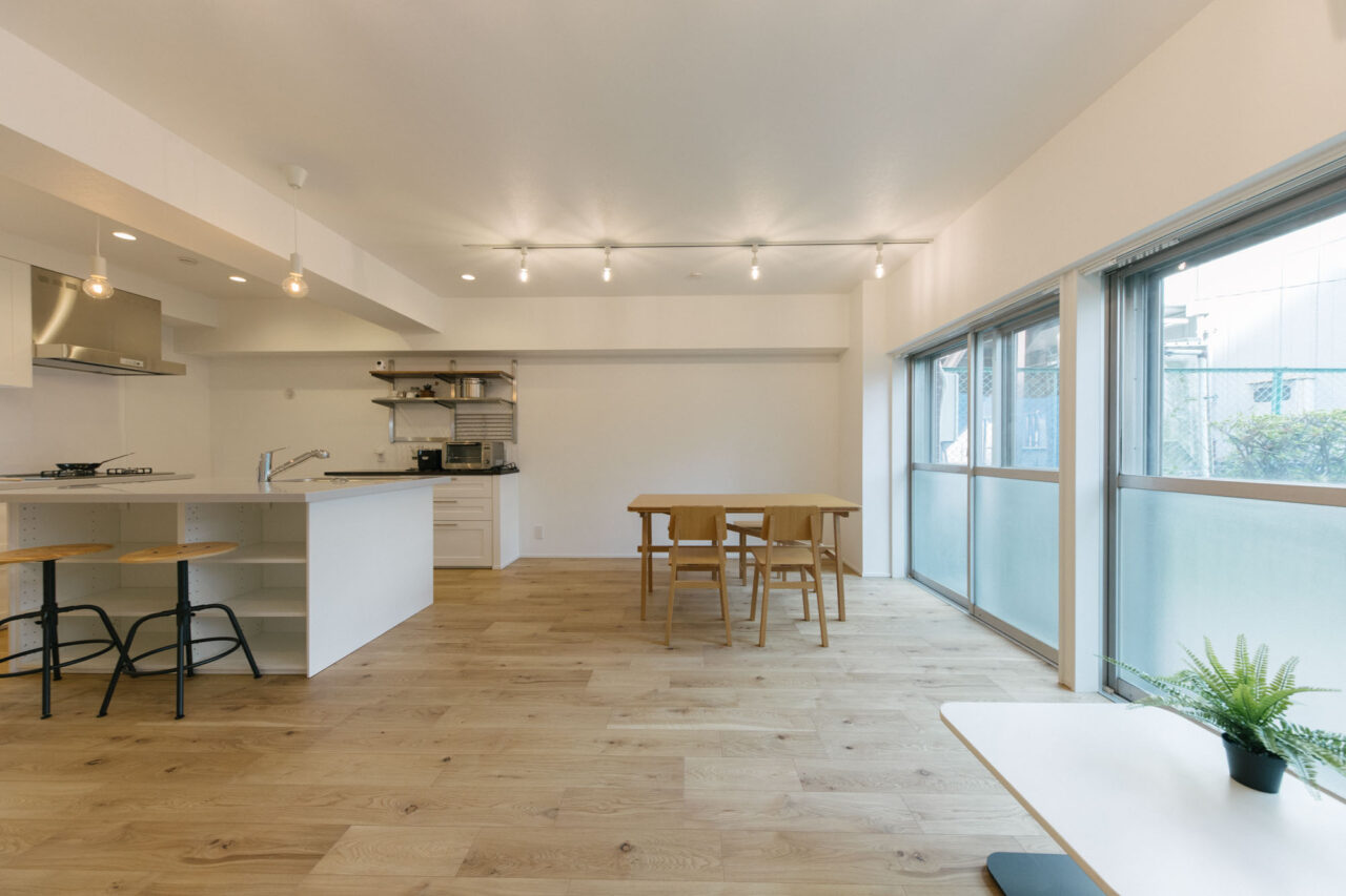 京王線で新宿から一駅のアクセス、活気ある十号通り商店街やスーパーなど、暮らしも便利な「笹塚」駅から徒歩3分の立地です。建物は竣工後42年の時を経て、共用部は排水管・給水管更新、EVセミリニューアル等、重要なメンテナンスが着実に実施されてきました。室内は76㎡の専用庭付ゆとりの2LDK、リビングを広めにとり、ワークスペースやSIC、デスクスペース等が設けられ、回遊性のあるⅡ型アイランドキッチンが特徴的なお部屋です。