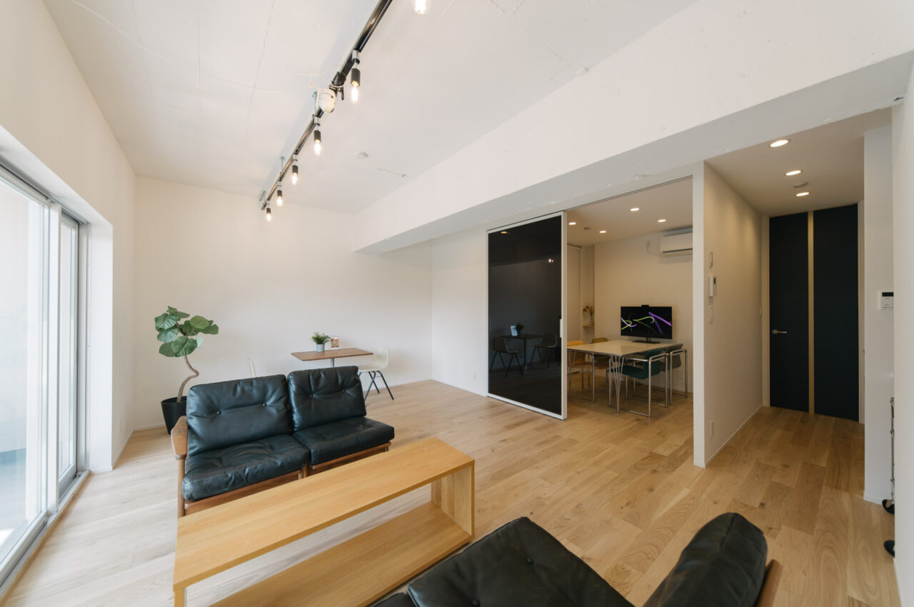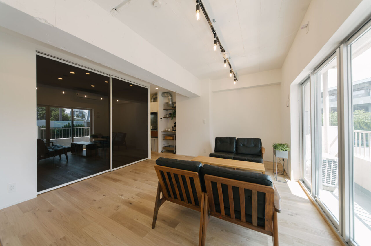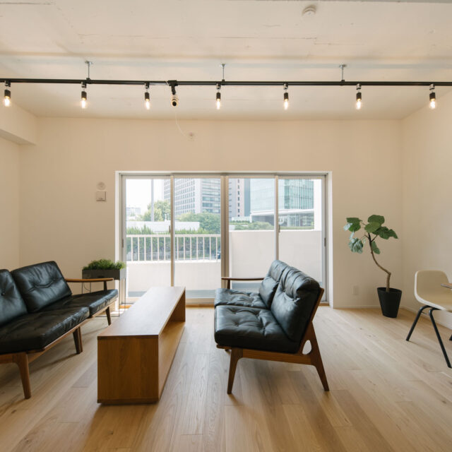 外苑前駅からスタジアム通りを徒歩3分、窓先は2036年完成予定の神宮外苑再開発施設を望む眺めの希少価値のある立地です。土地は地上権、建築後55年超、総戸数49戸の建物です。室内はスモールオフィス、アトリエ仕様にリノベーションしました。古くなったサッシを更新し、意匠性を重視した設備や建具、オーク材と天井と梁を現した空間をあなたの目で確かめてみてください!