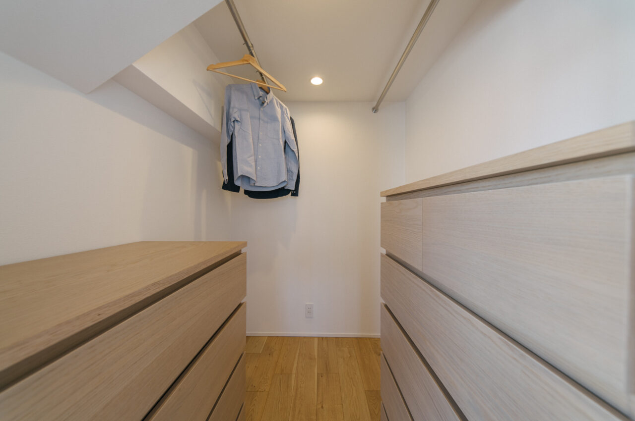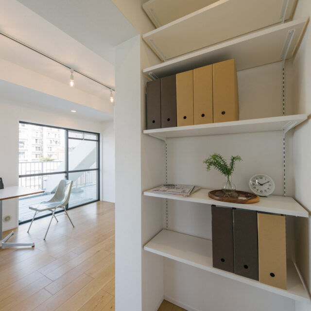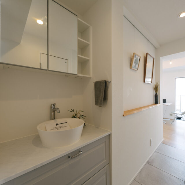 2019年4月に当社でリノベしたこのお部屋は、当時フルスケルトン、サッシ以外床壁天井、設備のすべて更新して、トイレ、脱衣所など水かかり箇所は滑りずらいタイルを張り、ちょっとした隙間にアートスペースを配置した遊び心あるプランです。約6年お住まいになられたオーナーから売却の依頼を受けた仲介物件になります。