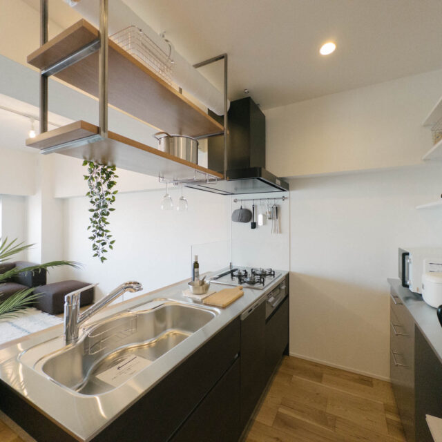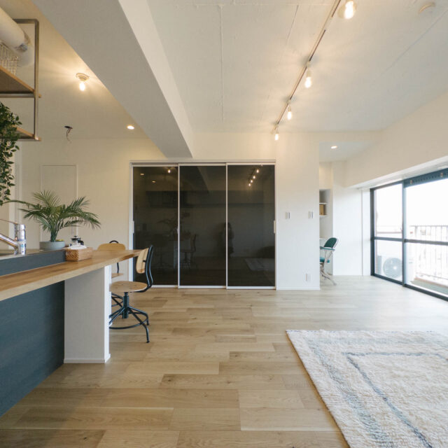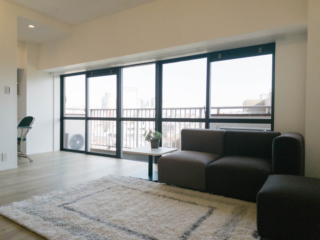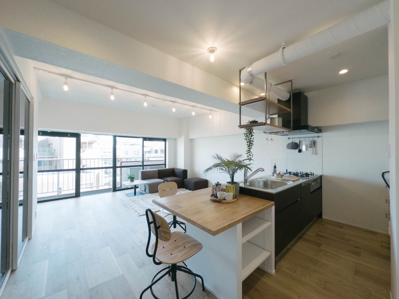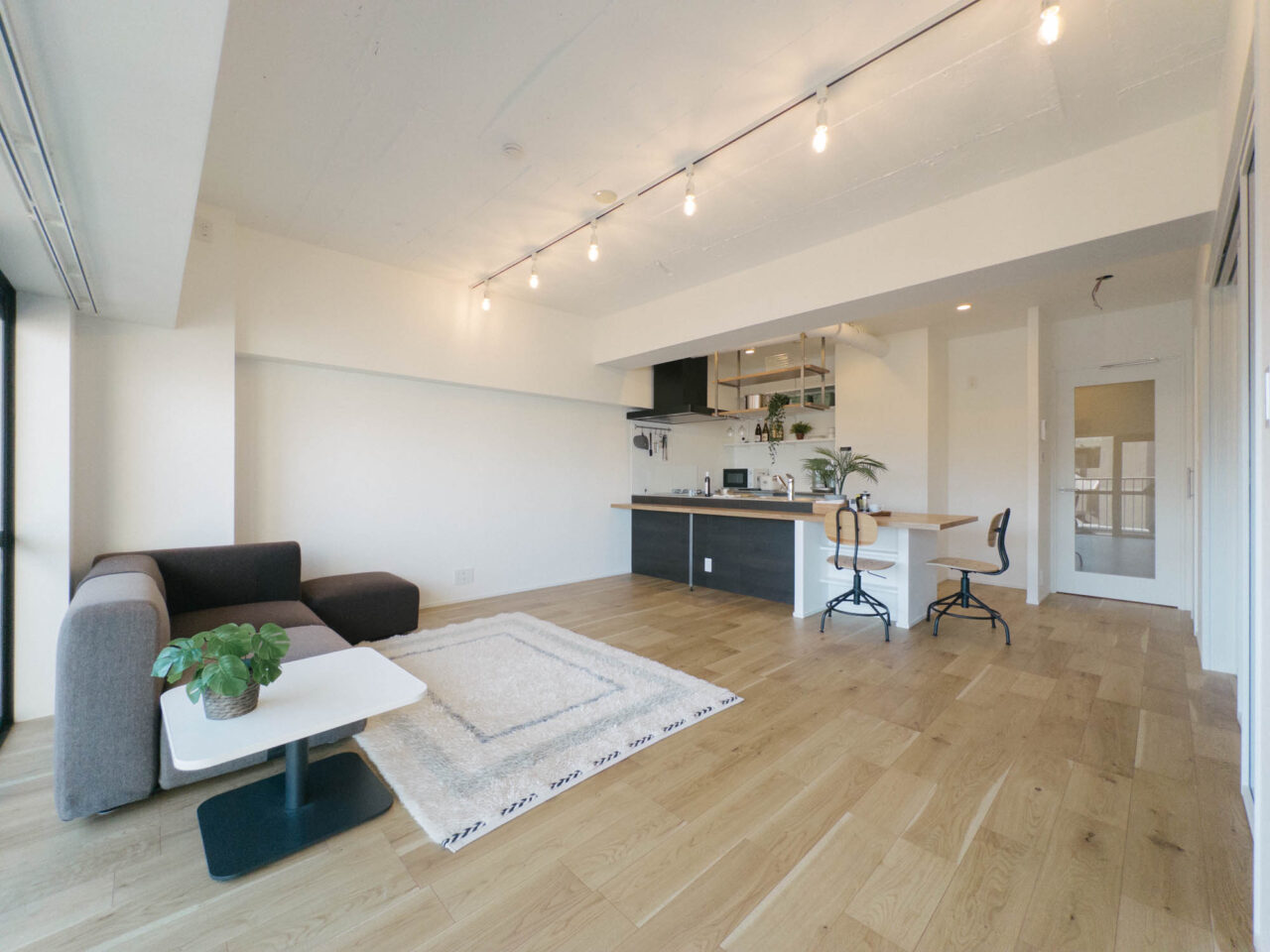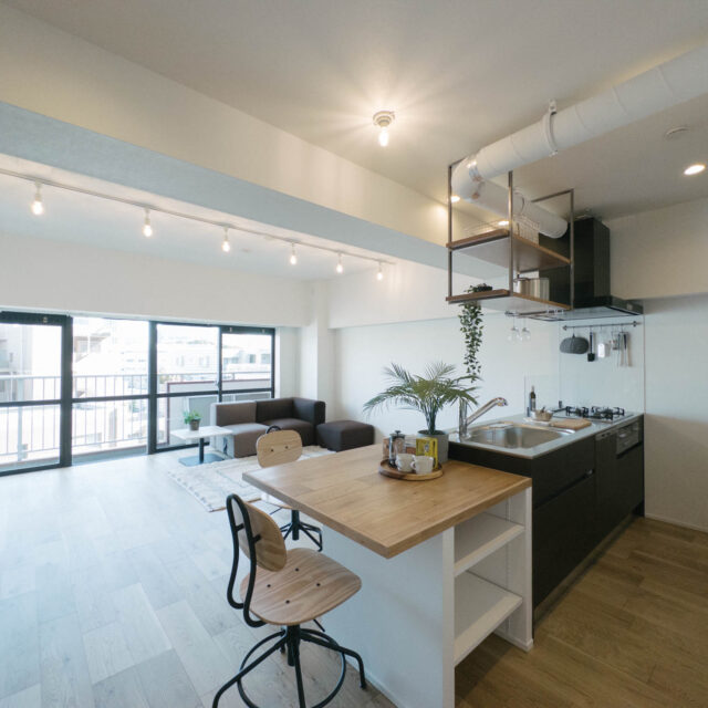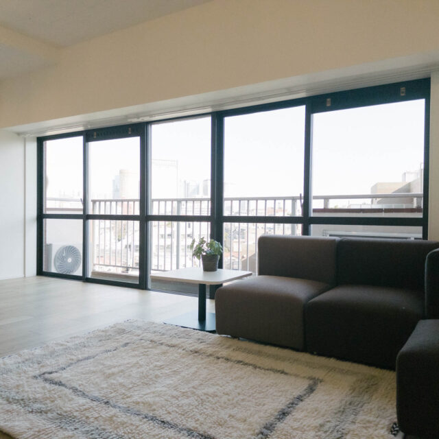 歴史深い邸宅地「島津山」の東五反田一丁目アドレスは、JR五反田駅徒歩7分、品川駅へも15分程度で歩けるフットワークの良い立地です。建物は、定期的な大規模修繕、給排水管・EV更新など必要な修繕が適宜繰り返され、清潔に保たれた共用部や広々としたエントランスホールから住民の建物に対する愛着を感じさせてくれます。室内は、寝室をクイーンサイズベッドがぎりぎり入る大きさにミニマイズし、その分スペースを豊富な収納、ワークスペース、ダイニングテーブル一体型キッチンのあるLDKに割り当てた個性的なフロアプランと抜け感のある眺望が魅力です。