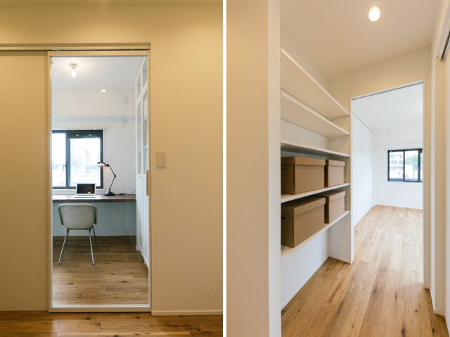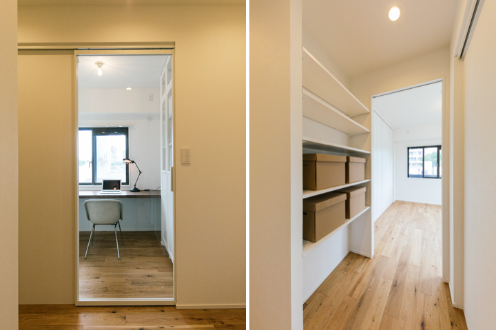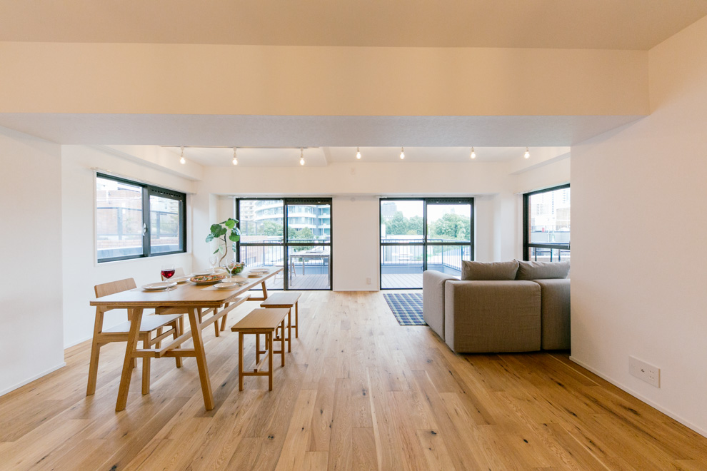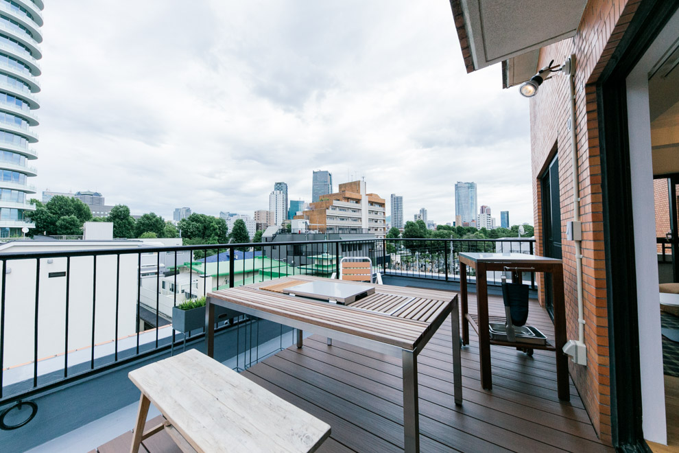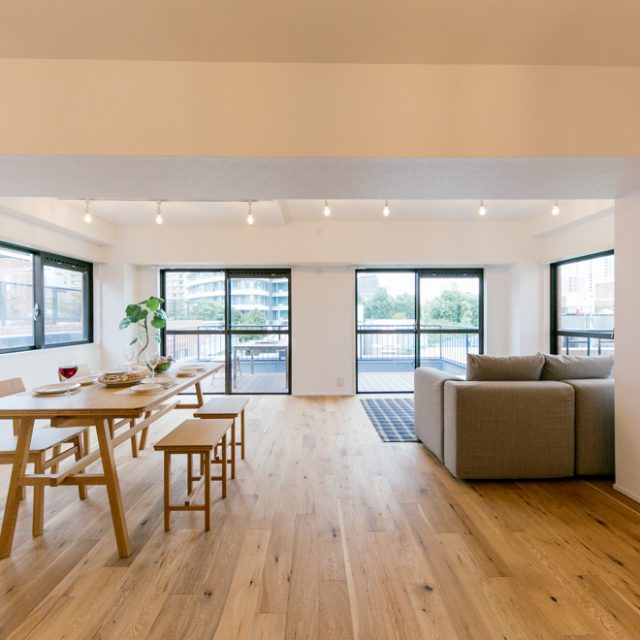 最先端ファッションの街、神宮外苑の豊かな緑が生活圏の南青山2丁目の雰囲気に似合うリノベーションプランです。約15㎡のルーフバルコニーとつながる27JのLDKは広々として気持ちがよく、2つのベッドルームの間に設けたスモールオフィススペースでは、自宅で仕事される方、学習スペースなど用途はいろいろ。キッチン脇のバルコニーにはオリジナルプランターを造作し、家庭菜園で朝とれたハーブや野菜をそのまま料理するちょっと贅沢な食生活をお楽しみください。