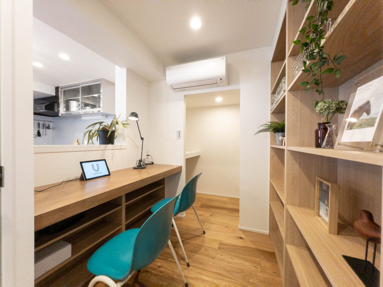 駒沢オリンピック公園にほど近く自由が丘や二子玉川も生活圏の深沢5丁目、閑静な住宅地に建つマンションです。昭和54年竣工、126世帯の建物は、リーズナブルな共益費なのに潤沢な修繕積立金があるから適時修繕が重ねられ、これからのメンテナンス計画にも抜かりはありません。抜け感のある眺めが気持ちのいい南東向き6階部分の住戸です。ワークスペースは、ダイニングにいる家族ともゆるやかにつながることができる半個室風の設計で、毎日出社するわけじゃないから、駅からは遠いのはへっちゃら!そんなDINKsたちの暮らしが似合うお部屋です。