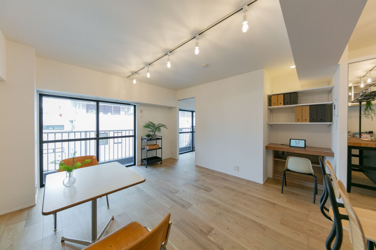 羽田へはシャトルバスや京急の直通運転でほど近く、徒歩2分のJRで品川まで3駅とフットワークのよい蒲田駅。手芸好きの聖地「ユザワヤ」本店に隣接、妖しさと活気、利便性が魅力の駅前立地です。建物は183戸の大規模で、駐車場の収入が修繕費用に充当され、リーズナブルな共益費なのに自律的に計画が回る、管理組合経営のお手本のようなレア物件です。1階テナントは様々な飲食店が軒を連ねるマンションの4階、事務所でも使いやすいようにコンパクトな水回り設備を壁際に寄せ、居室スぺースが広く設計されています。