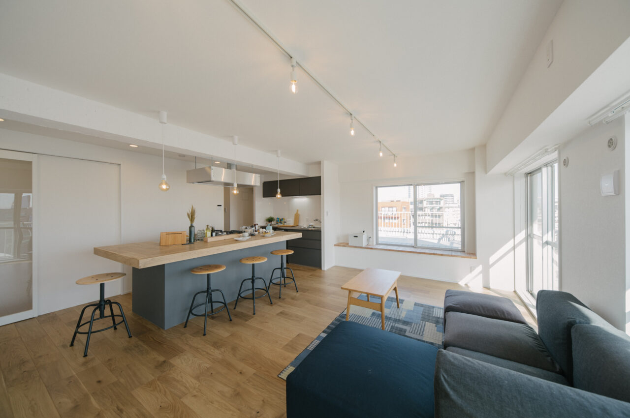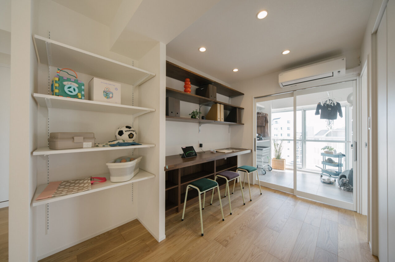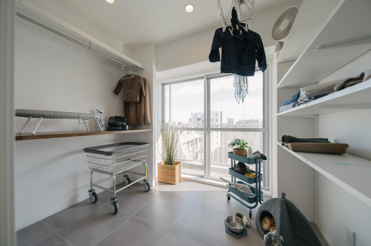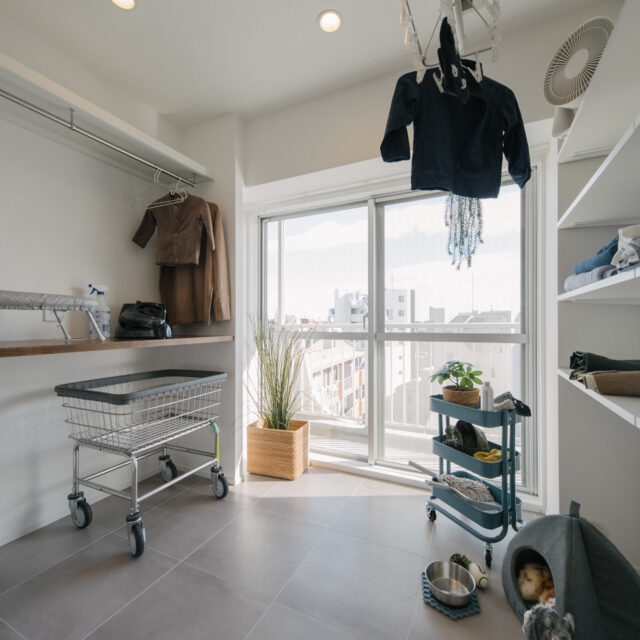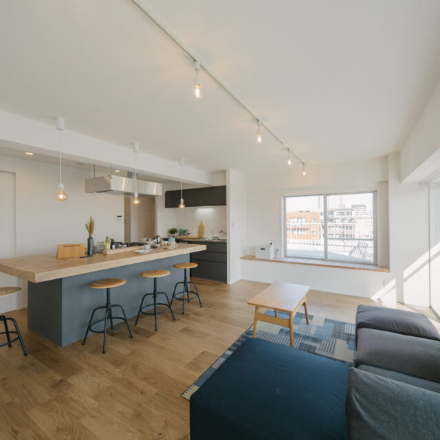 多摩川の自然や緑に恵まれた人気のエリア、用賀駅から二子玉川方面に徒歩6分、建築後47年経過してますが、新耐震基準を満たしたマンションです。室内は3LDK、3つの寝室を少しずつ狭くし、その面積で家事室、ライブラリースペースを設けました。ペット2匹と暮らせる最上階、東南北角部屋で他の住戸と視線が合わないプライベート感あふれるルーフバルコニー(34.55㎡)がある希少性の高いお部屋です。