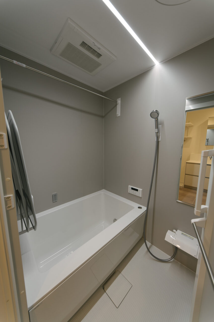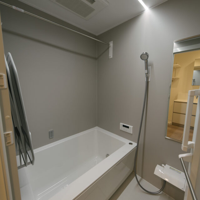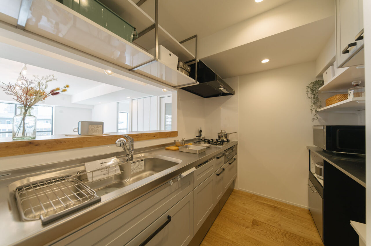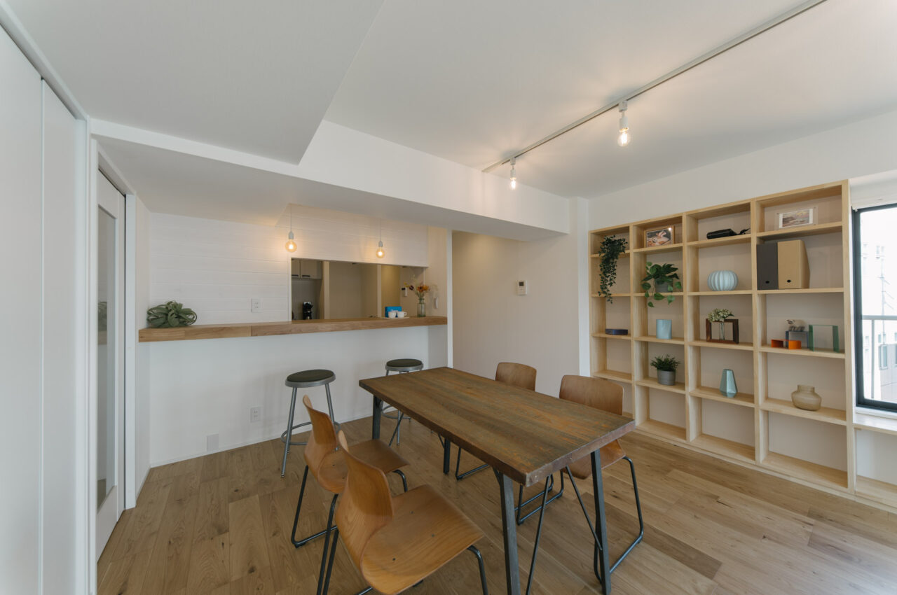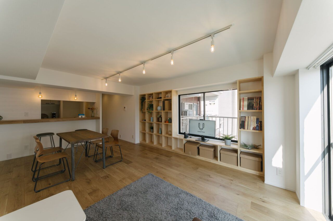 大崎駅から徒歩5分、立正大学キャンパスに隣接するお城のような出立のこの大規模マンションは、建築後54年が経過、これまでも大小各種修繕を持続的に実施できたのはスケールメリットによる潤沢な修繕積立金がなせる業、R7には全体の排水管を全面更新し、R9には2.5億規模の大修繕の予定で、建物の健康寿命に対しては惜しみなく投資することと思われます。室内は約66㎡の2LDK、セミオープンのダイニングカウンター付キッチン、壁一面のシェルフが特徴的なお部屋です。