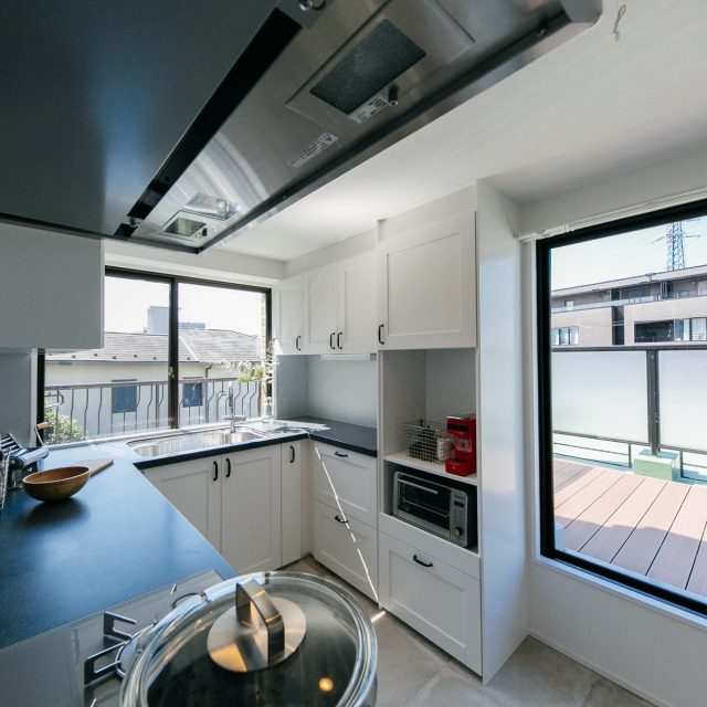 人気の街「自由が丘」の喧騒から少し離れた落ち着いた住宅地に、緑豊かな風格のあるヴィンテージマンションです。室内はふたりの書斎、納戸、家事カウンター兼洗面台、30J超のLDKなど116㎡の広さがあるからこそできるプランニングです。キッチンに隣接した23.49㎡のルーフバルコニーで家庭菜園を行えば、採れたての野菜で料理ができるあなただけのキッチン空間に生まれ変わりました。