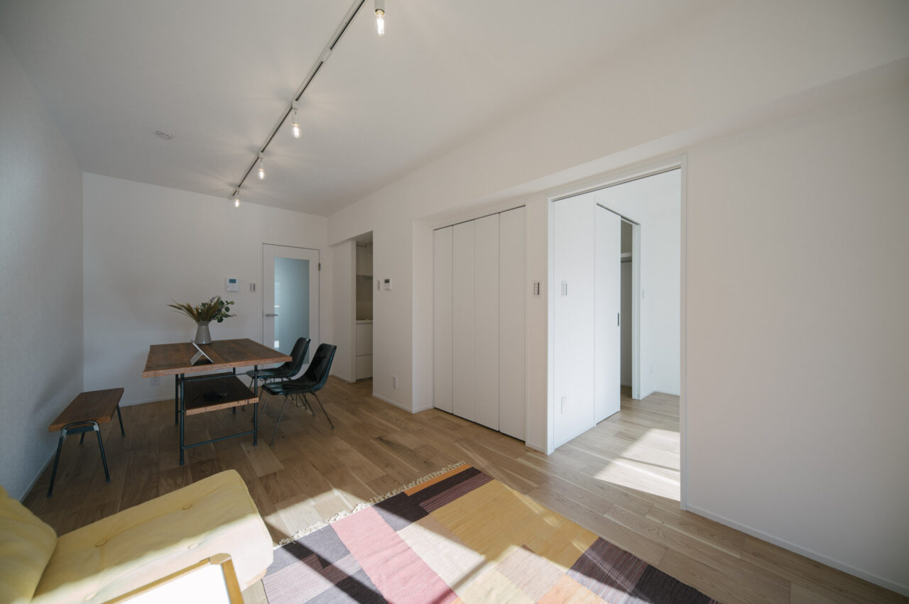 急行停車駅の経堂、南口から伸びる「農大通り商店街」を抜け、城山通りのスーパーライフの裏手にある閑静な住宅街の物件です。今回このレンガタイル貼り、8世帯の小規模マンションの203号室(81.82㎡)と202号室(57.38㎡)を同時に買取り、それぞれリノベーションし順次販売致します。