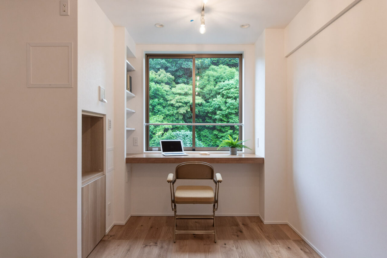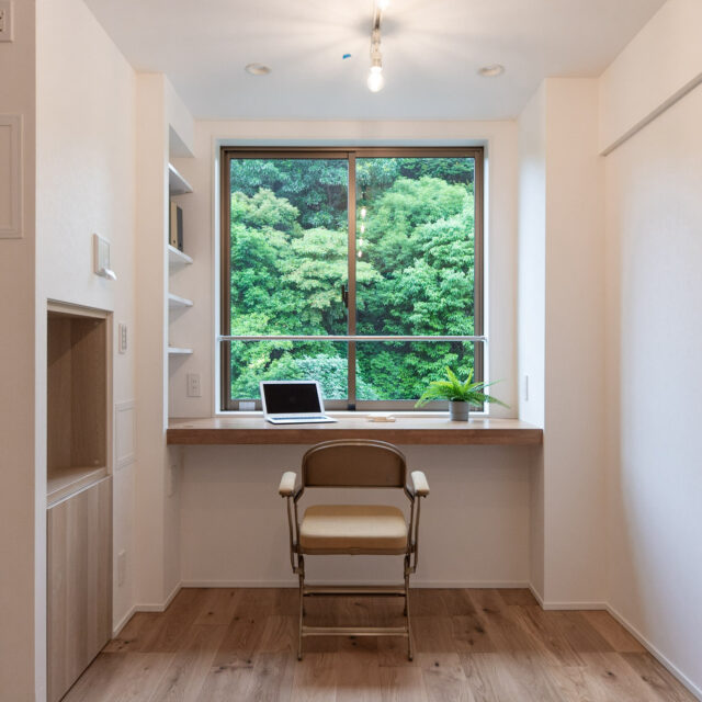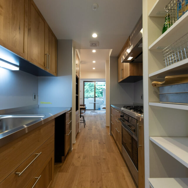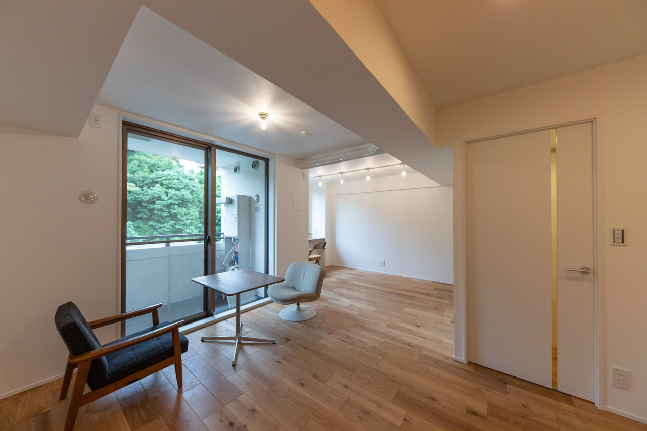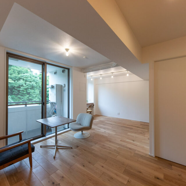 恵比寿、目黒どちらも約徒歩10分の目黒区三田一丁目。繰り返し通いたくなるような飲食店、ショップ、美術館などが生活圏の立地です。広い玄関収納につながるダイニングカウンター付キッチン、恵比寿ガーデンプレイスの緑を望む窓際の特等席にはワークデスクを設けました。バリバリ働き、遊ぶ、恵比寿フリークの暮らしが似合うお部屋です。