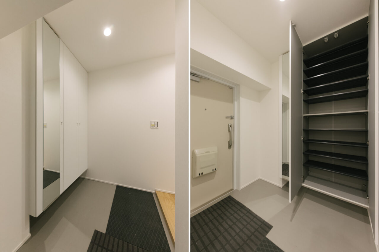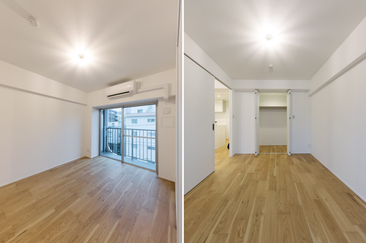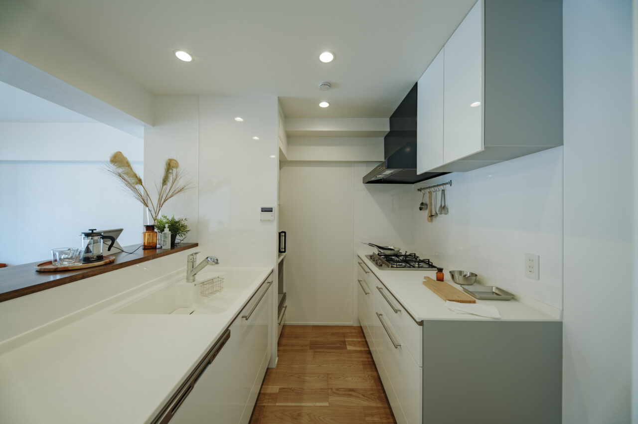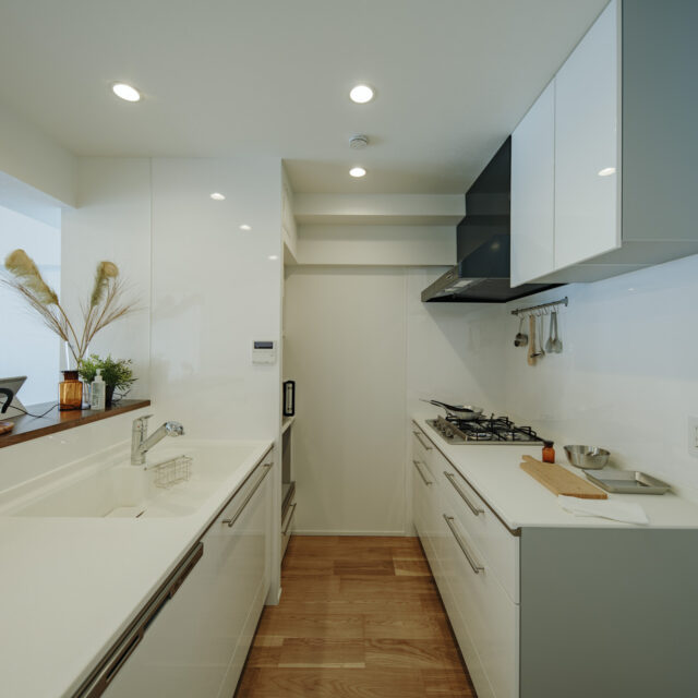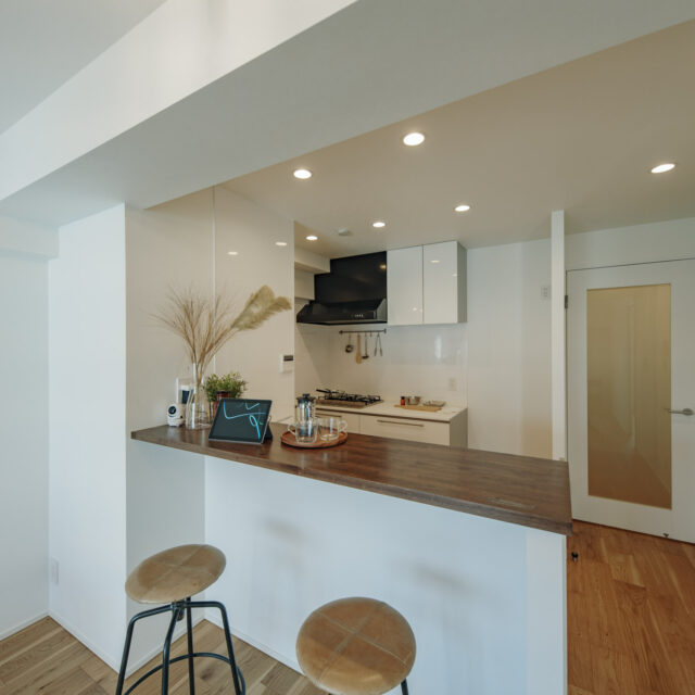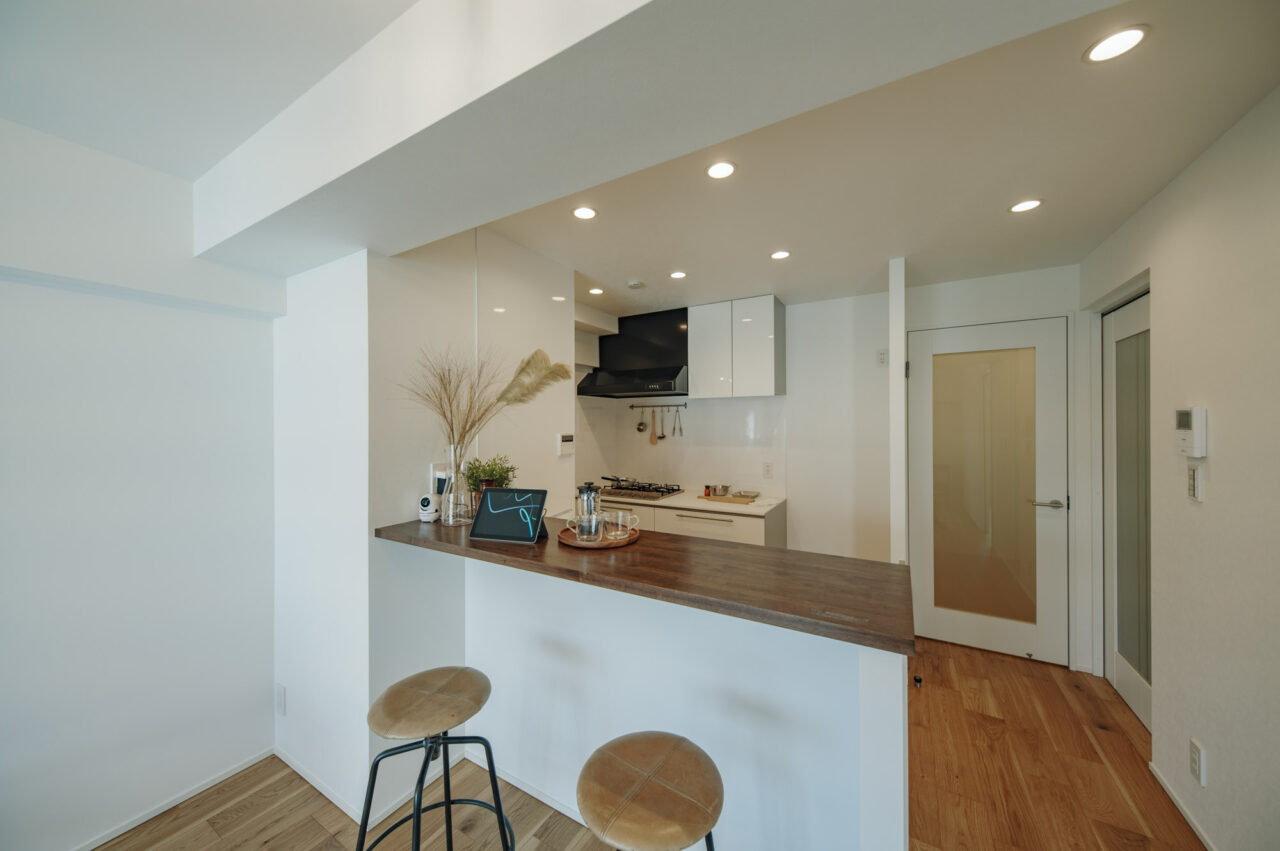 西新宿までわずか2駅、中野坂上まで歩けば大江戸線も利用できる利便性と暮らしやすさを兼ね備えた中野新橋は、下町の空気が感じられるエリアです。40年超経過した建物は、玄関ドア・EV更新、給水方式の変更や2年前に完了した大規模修繕などメンテナンスに抜かりはありません。室内は広めの浴室、対面Ⅱ型オープンキッチンに広めの収納を確保、3人家族にちょうどいい2LDKのリノベーションプランです。
