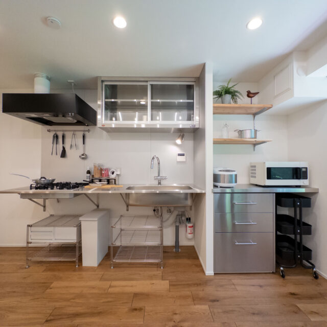 天現寺ICから仙台坂上方向、薬園坂を上る途中の大使館や深い緑が屋敷町としての風格を感じさせてくれる立地です。建物は3年前には大規模修繕を完了、周辺の樹々と程よく調和が取れたレンガタイル貼りの外観、室内はヴィンテージ無垢フローリングの床、武骨なオールステンレスキッチン、無垢材のバーカウンター、セミダブルの入るミニマイズベッドスペース、腰高窓が庭の樹々を絵画のように切り取った静かで落ち着いた暮らしができるお部屋です。