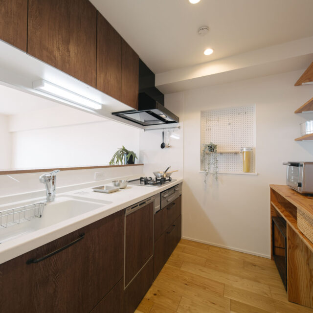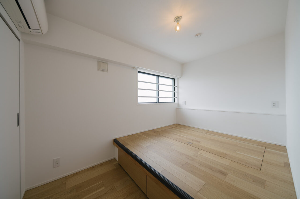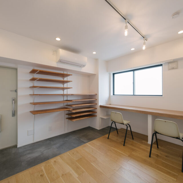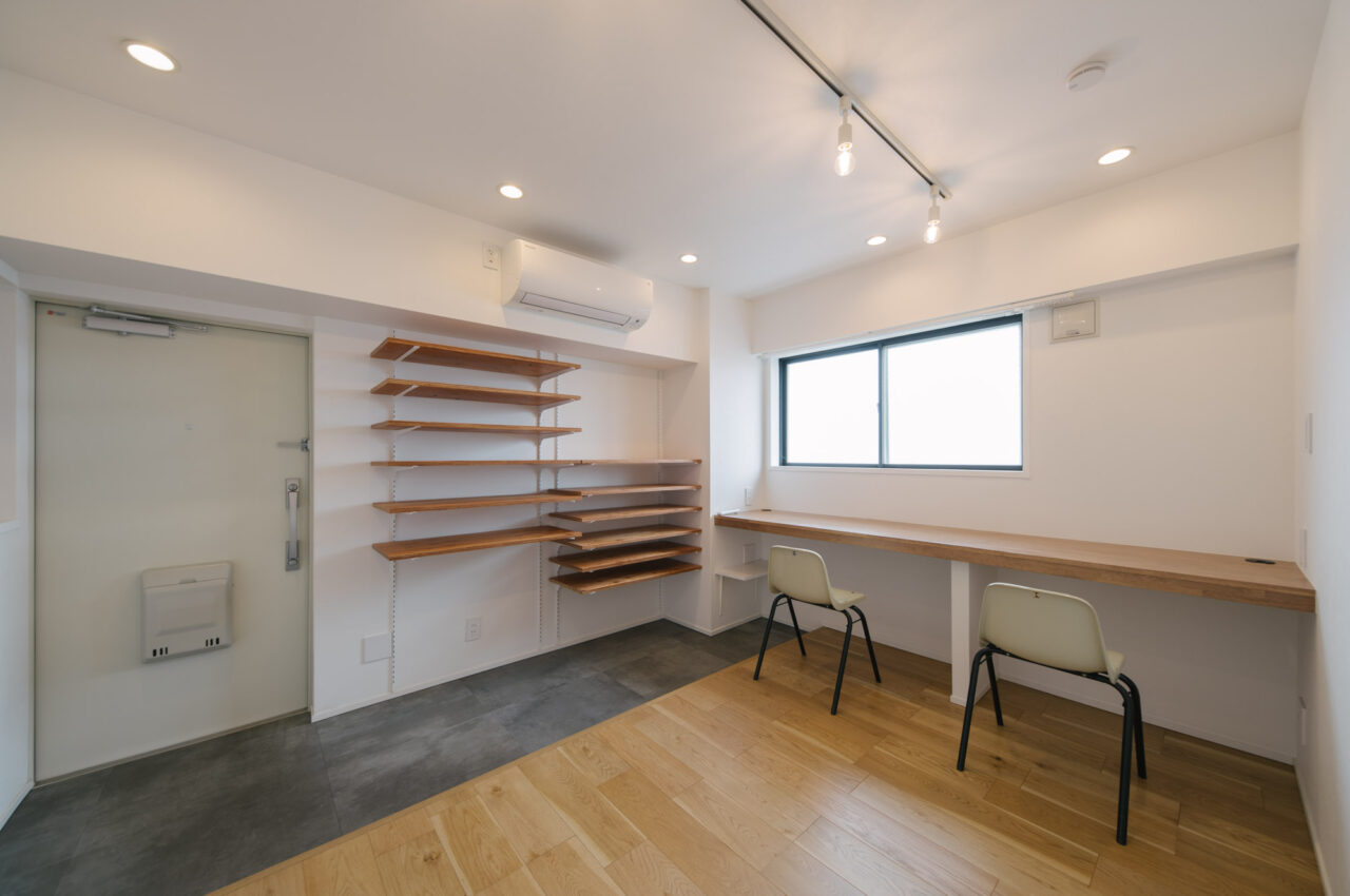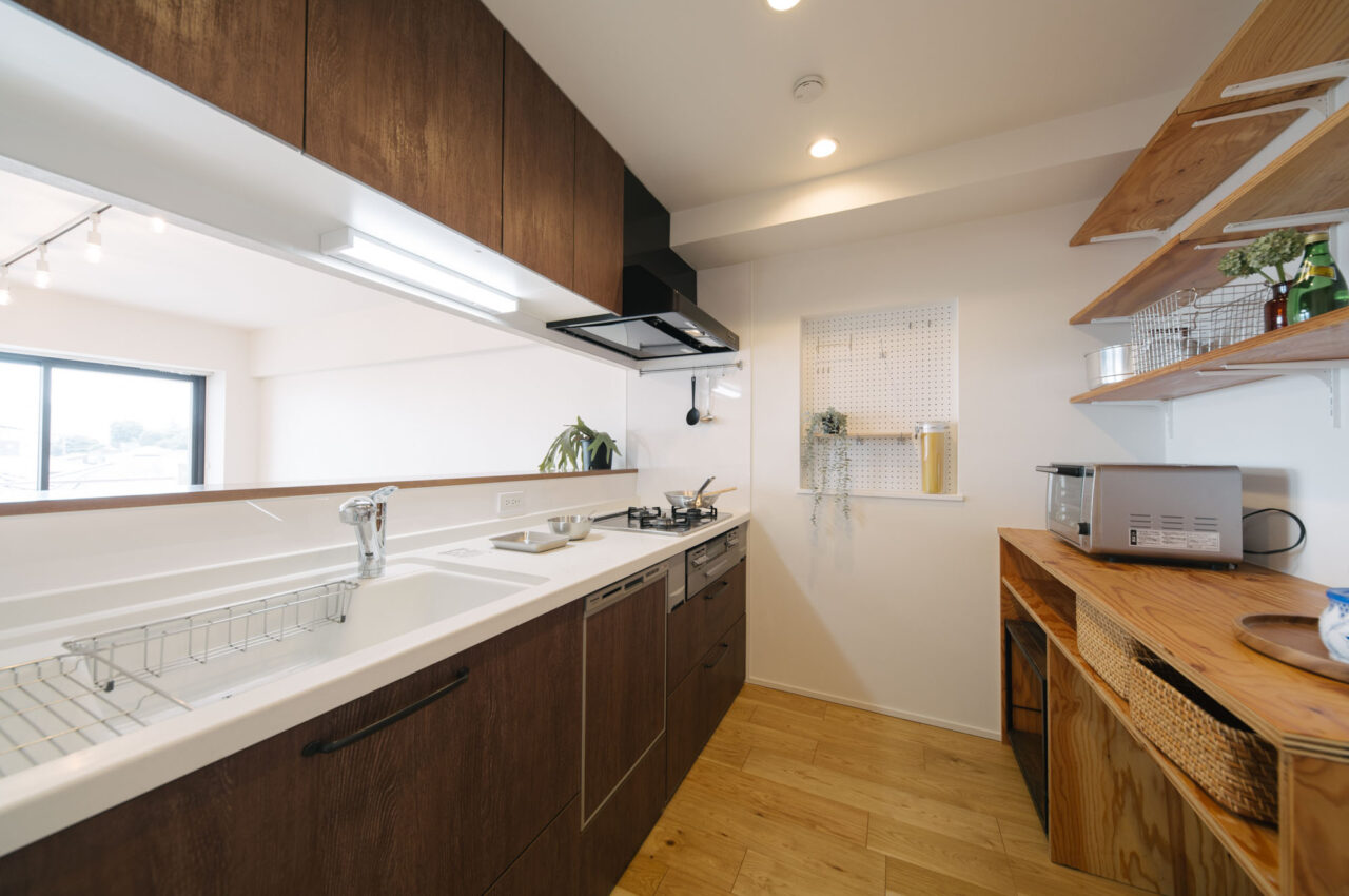 緑豊かな小金井公園まで徒歩数分、エントランス前の「小金井橋」バス停からは武蔵小金井駅までのバス便も豊富な好立地です。16年に耐震補強工事を実施、新耐震基準適合マンションです。室内は前面道路とは反対側の奥まった部屋位置で静か、2021年8月に当社でフルリノベーションをしました。玄関脇のワークスペースは在宅ワークや子供の勉強場所等、用途は住む人次第。寝室は小上がりスペースがあり、豊富な床下収納や壁のニッチスペースには便利なコンセント付、リビング脇のWIC,廊下やキッチン脇の有効ボード、玄関脇の可動棚など大小豊富な収納もあるお部屋です(追加工事により3LDKへの間取り変更も当社で施工可能です)。