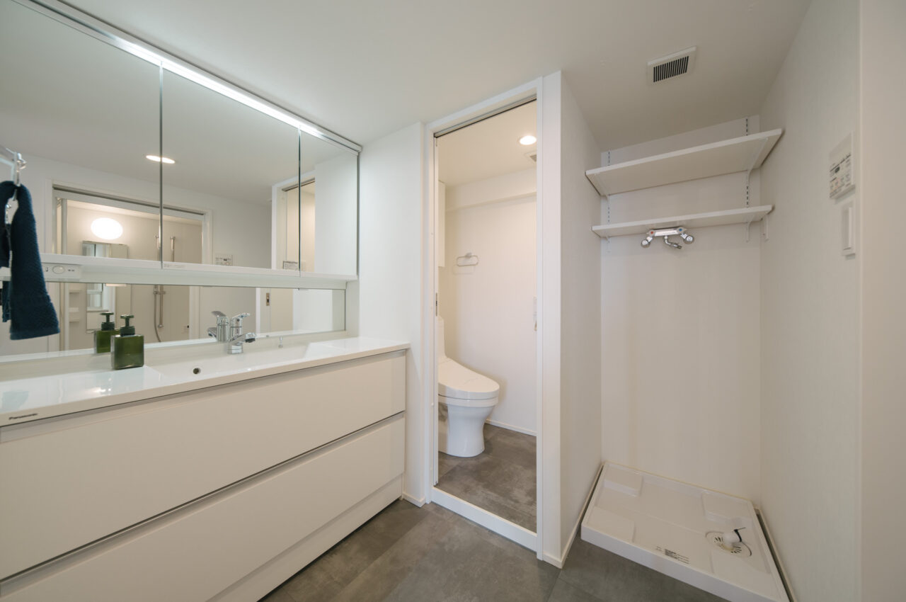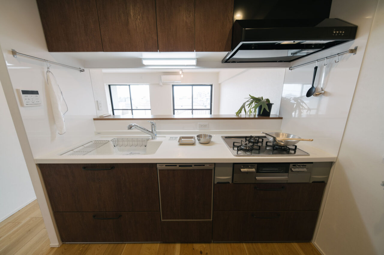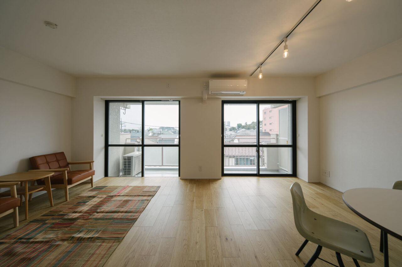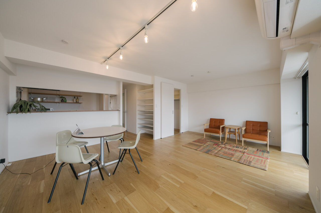 緑豊かな小金井公園まで徒歩数分、エントランス前の「小金井橋」バス停からは武蔵小金井駅までのバス便も豊富な好立地です。16年に耐震補強工事を実施、新耐震基準適合マンションです。室内は前面道路とは反対側の奥まった部屋位置で静か、2021年8月に当社でフルリノベーションをしました。玄関脇のワークスペースは在宅ワークや子供の勉強場所等、用途は住む人次第。寝室は小上がりスペースがあり、豊富な床下収納や壁のニッチスペースには便利なコンセント付、リビング脇のWIC,廊下やキッチン脇の有効ボード、玄関脇の可動棚など大小豊富な収納もあるお部屋です(追加工事により3LDKへの間取り変更も当社で施工可能です)。