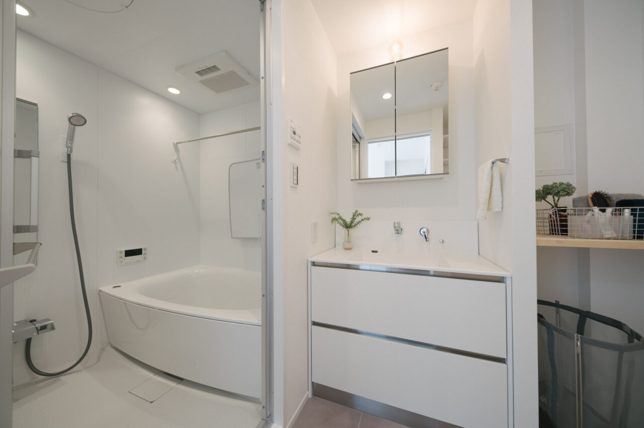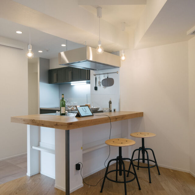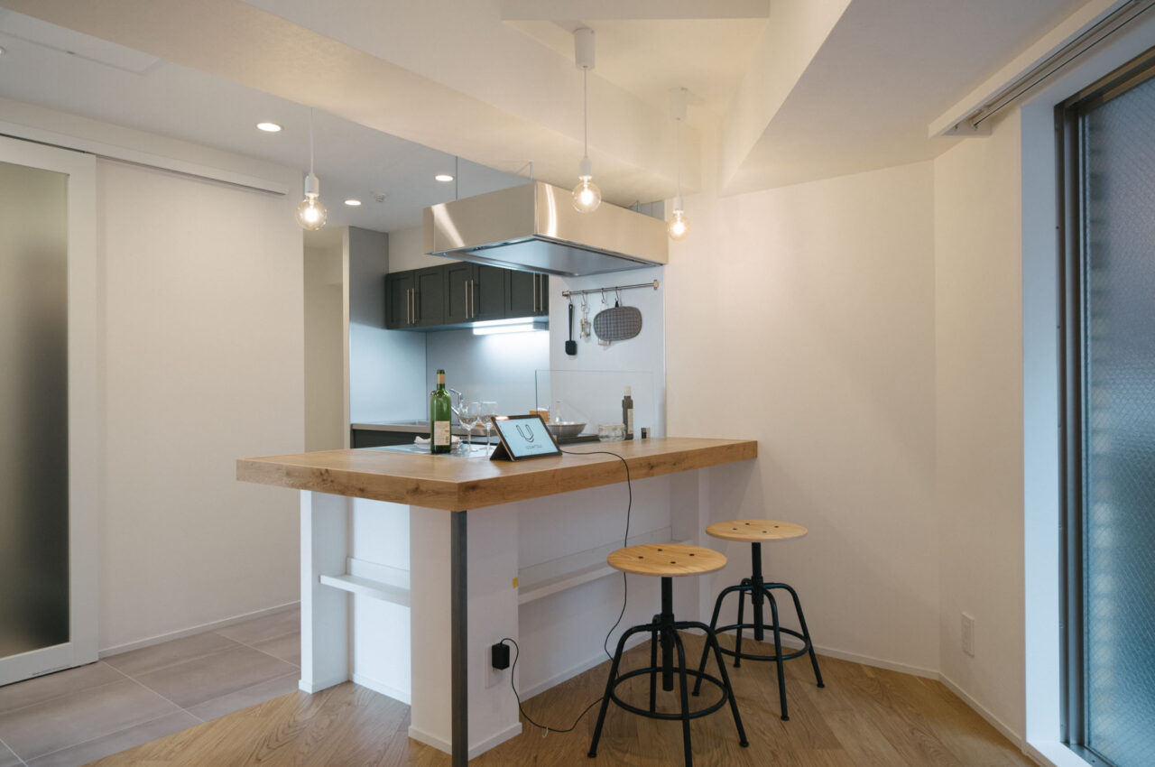 ・L字型ダイニングカウンター一体型のシステムキッチン