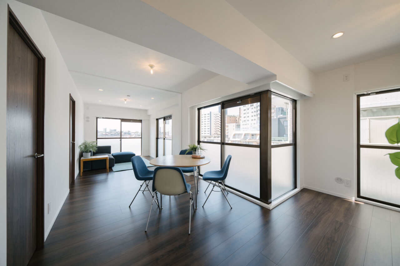 渋谷からのアクセスも良く、活気ある商店街と個性的な飲食店群などが人気の三軒茶屋から徒歩3分の立地です。商店街沿いの1,2Fにテナントが入るこの物件は5階の南西角部屋、ぐるっと窓に囲まれた明るいLDK、抜け感のある眺望が気持ちのいいお部屋です。